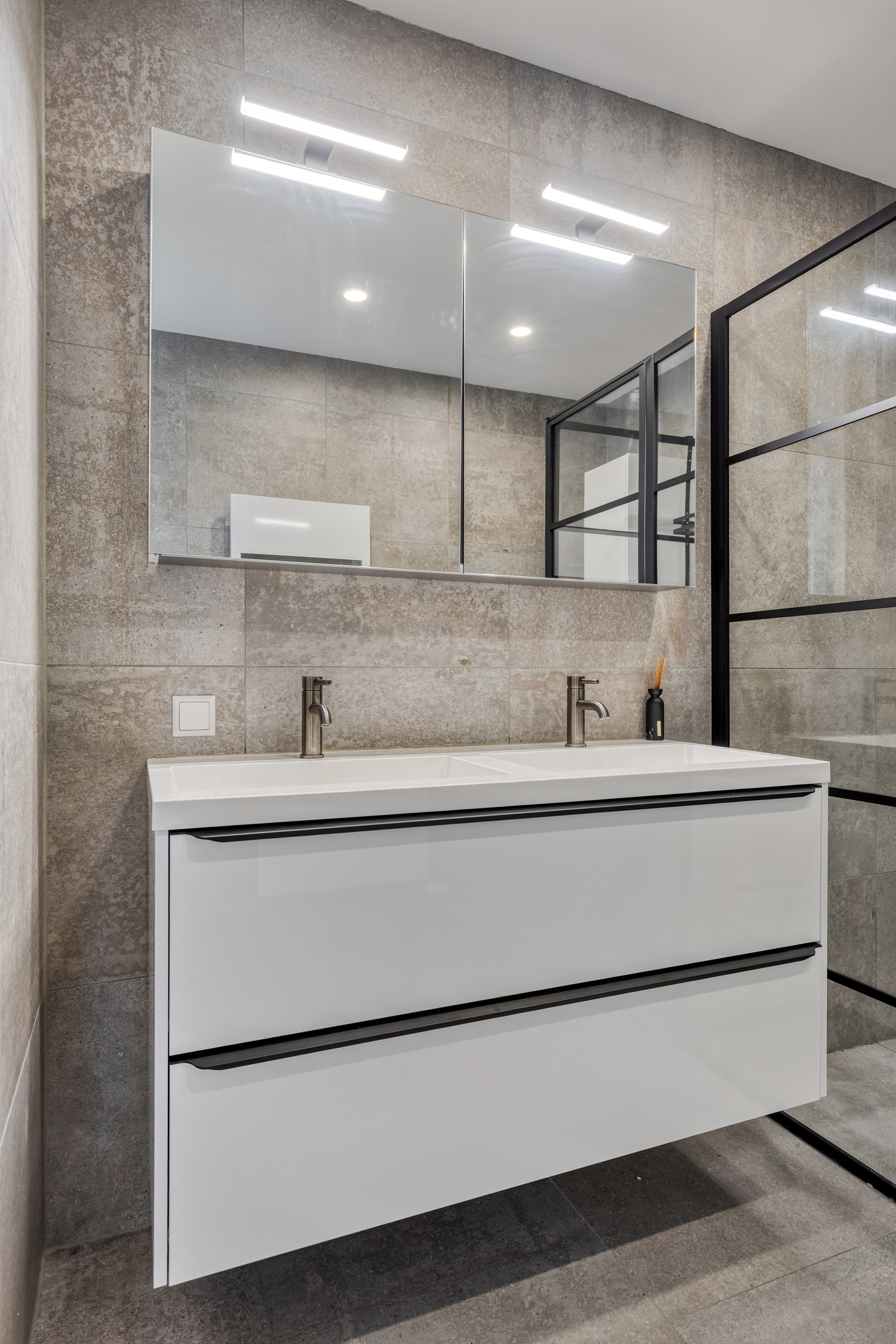 - Badkamervoorzieningen Dubbele wastafel, wastafelmeubel