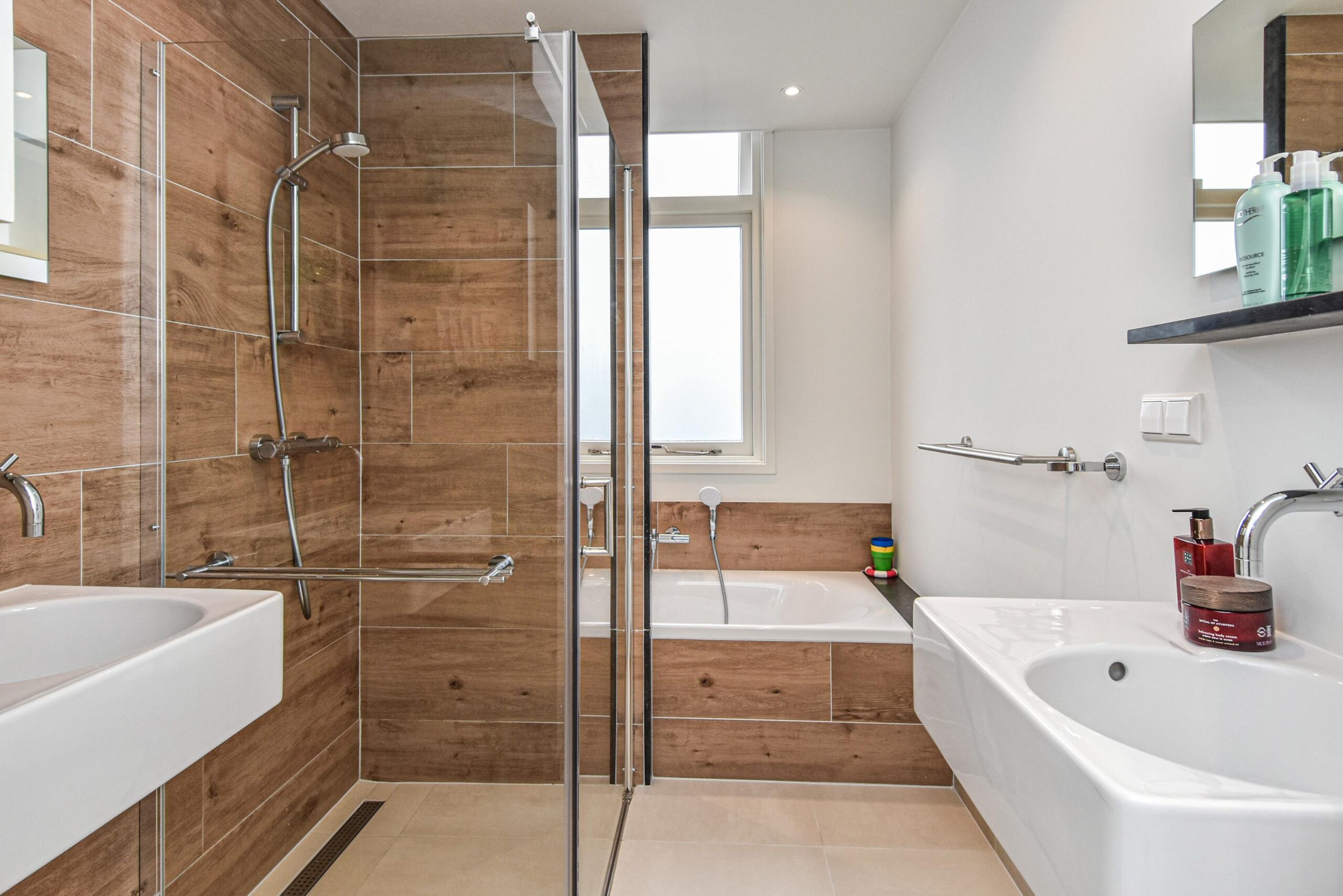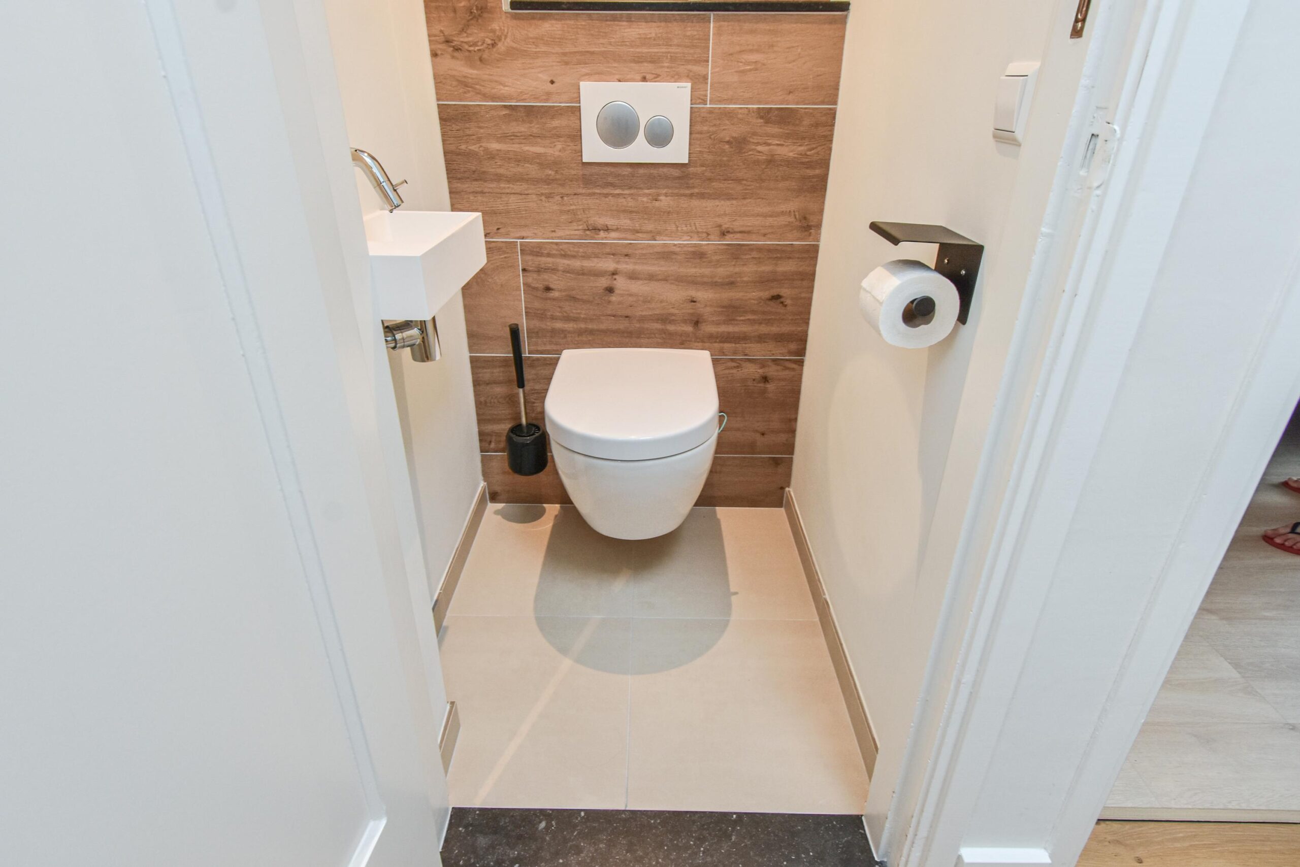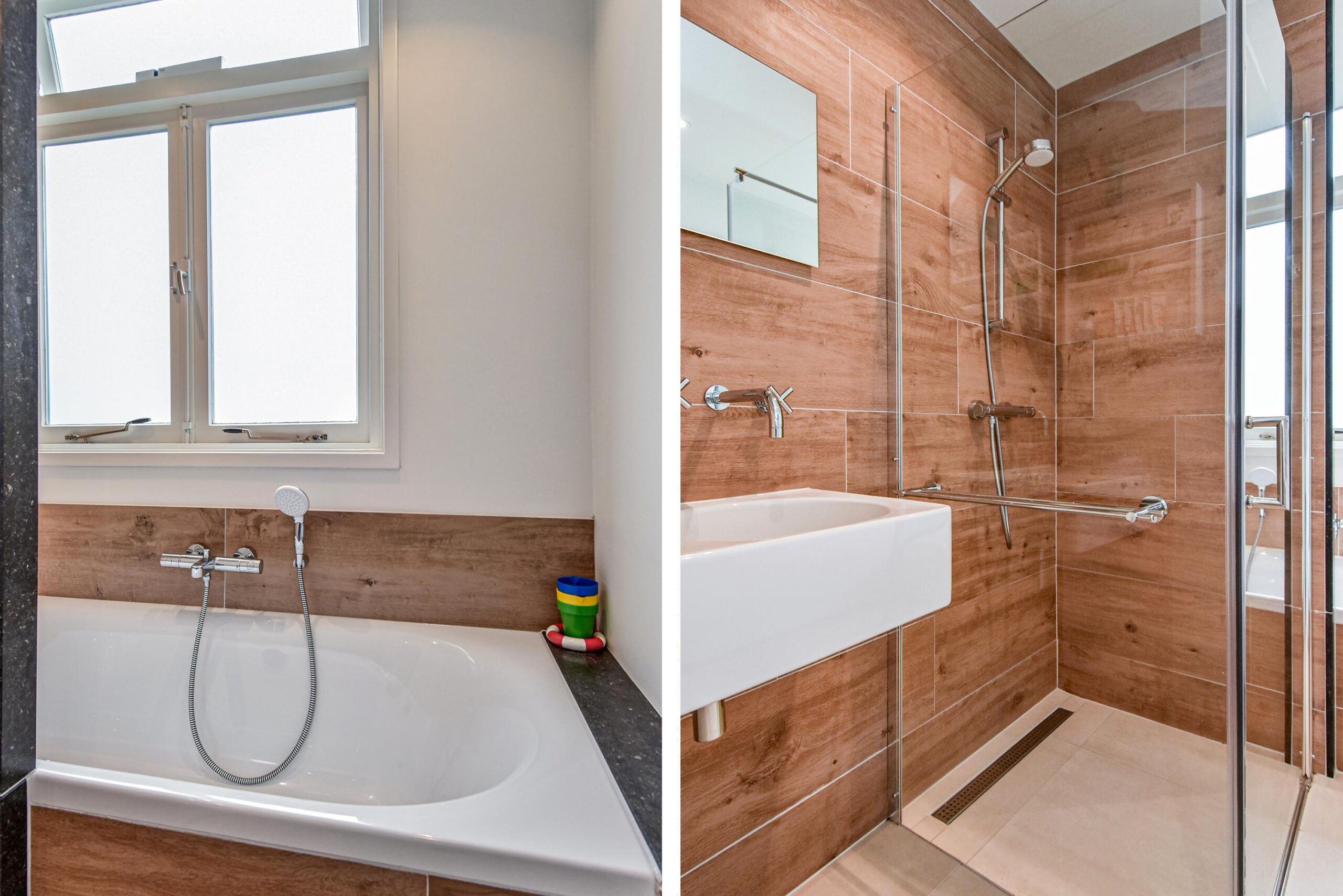 Er is een nieuwe en zeer complete badkamer gemaakt (2022). Deze is uitgevoerd met een houtlook tegel en bied u een ligbad, inloopdouche en twee wastafels. Door het raam is het prettig met natuurlijke ventilatie en daglicht in de badkamer. Het toilet is apart van de badkamer en in dezelfde stijl vernieuwd.