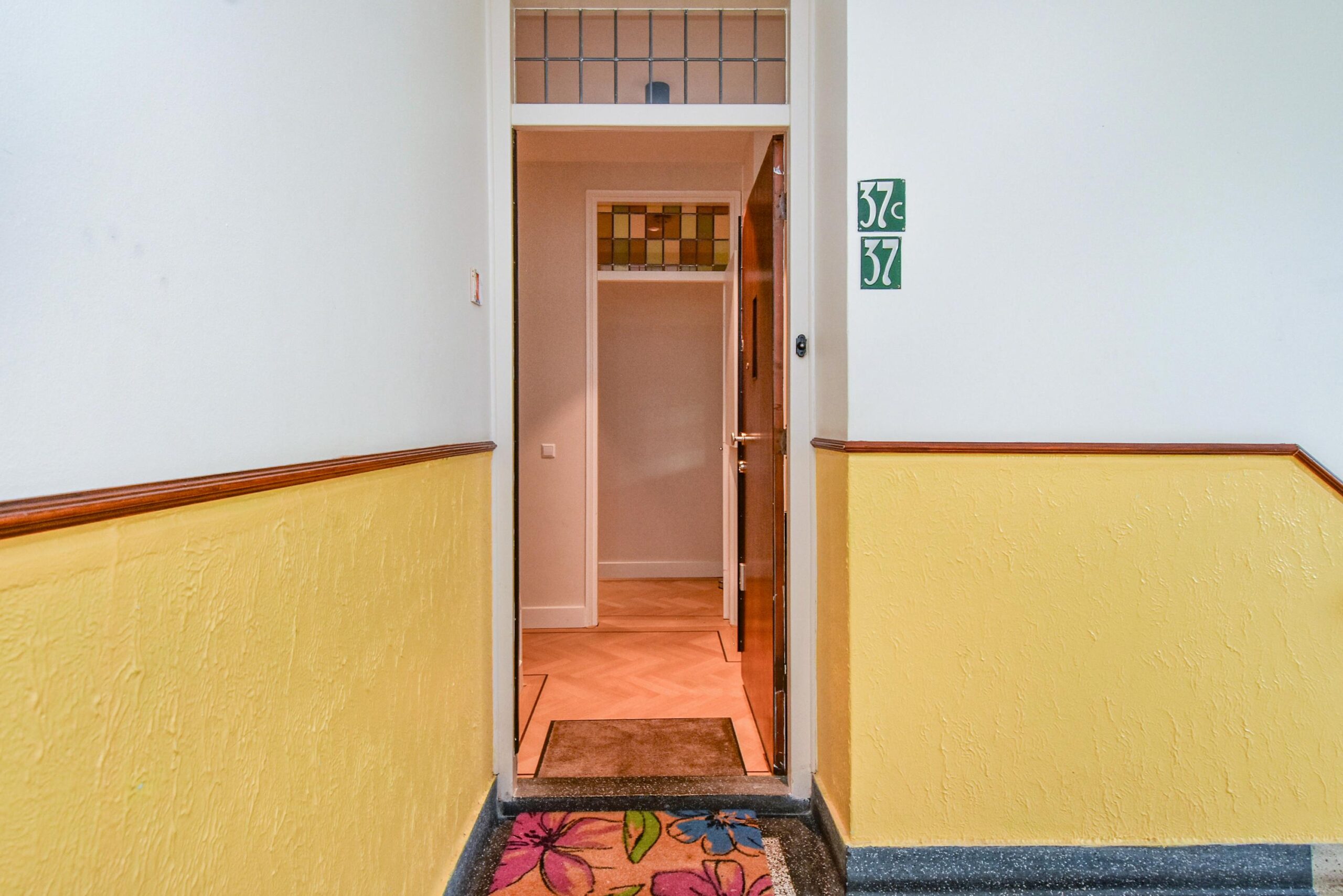 Vanuit het gesloten portiek komt u met de trap op de 2e verdieping.