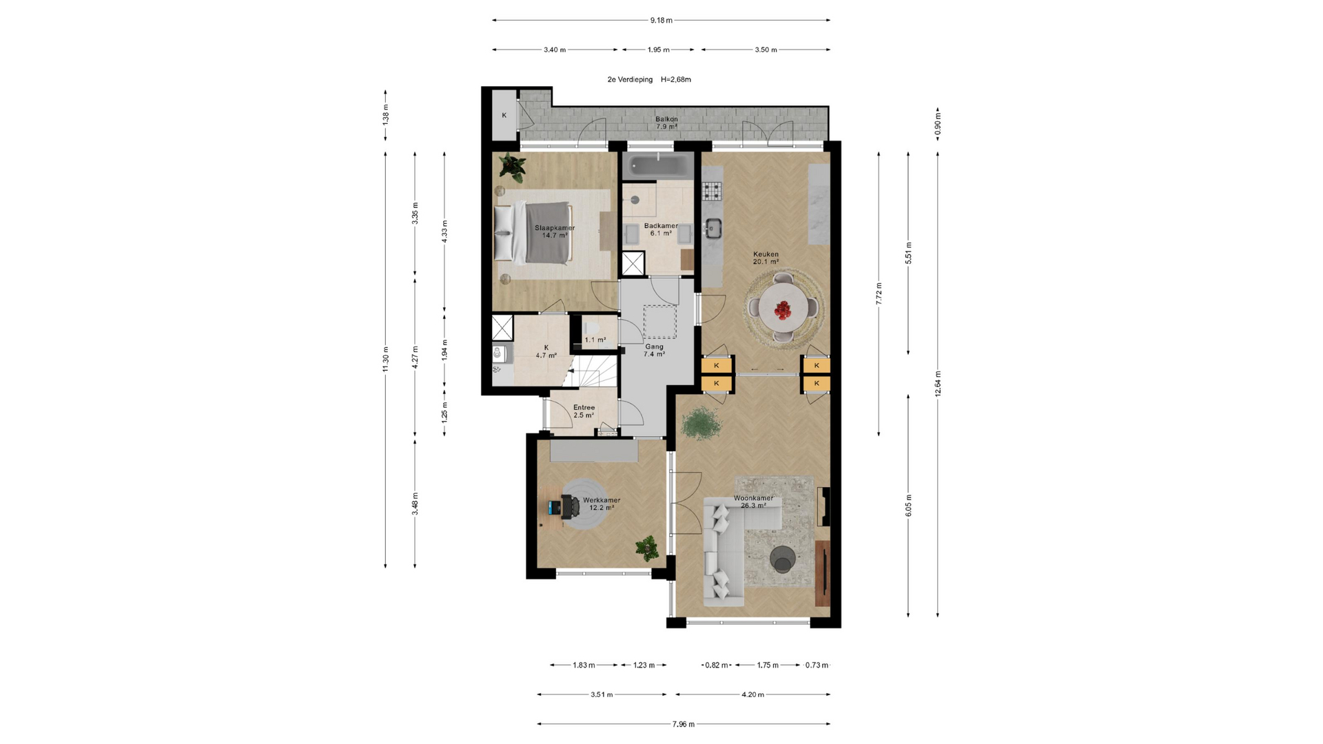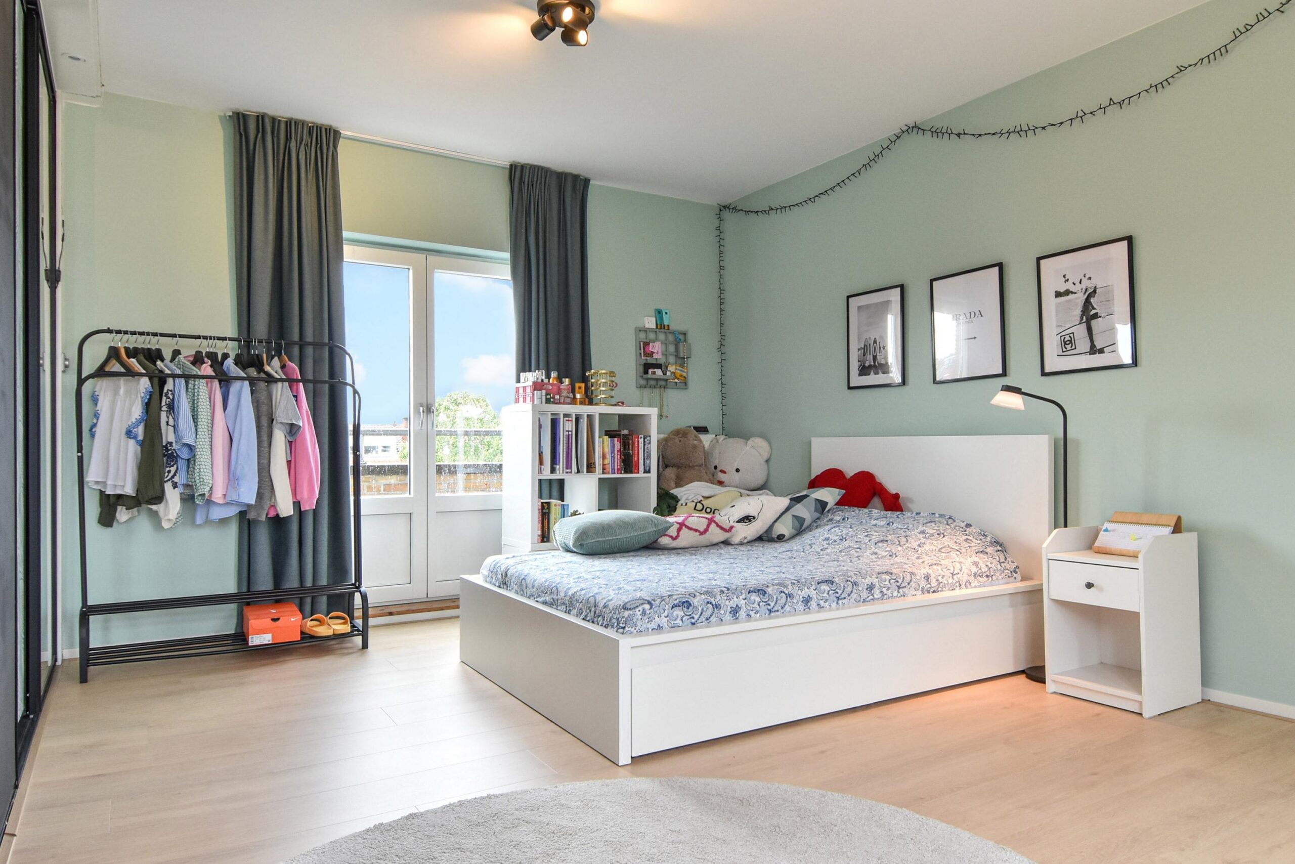 Aan de achterzijde is er een ruime slaapkamer met een ruime berging met de cv-combiketel en de wasmachine aansluiting. Het balkon aan de achterzijde is te bereiken vanuit zowel de woonkeuken als de slaapkamer. Via het balkon heb je toegang tot een balkonkast en een houtopslag voor de open haard.
