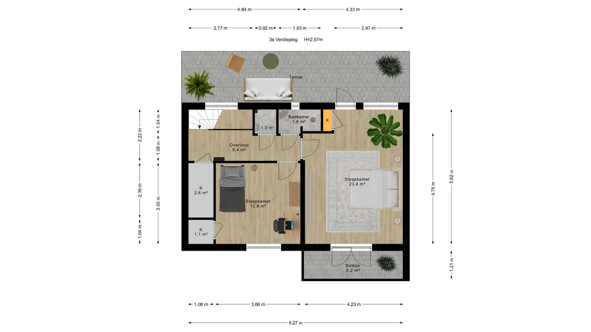 En ook weer een ruime bergkast. Er zijn twee ruime slaapkamers waarbij de grootste kamer een eigen balkon heeft aan zowel de voorkant als de achtzijde. Beide kamers hebben vaste (inbouw)kasten.