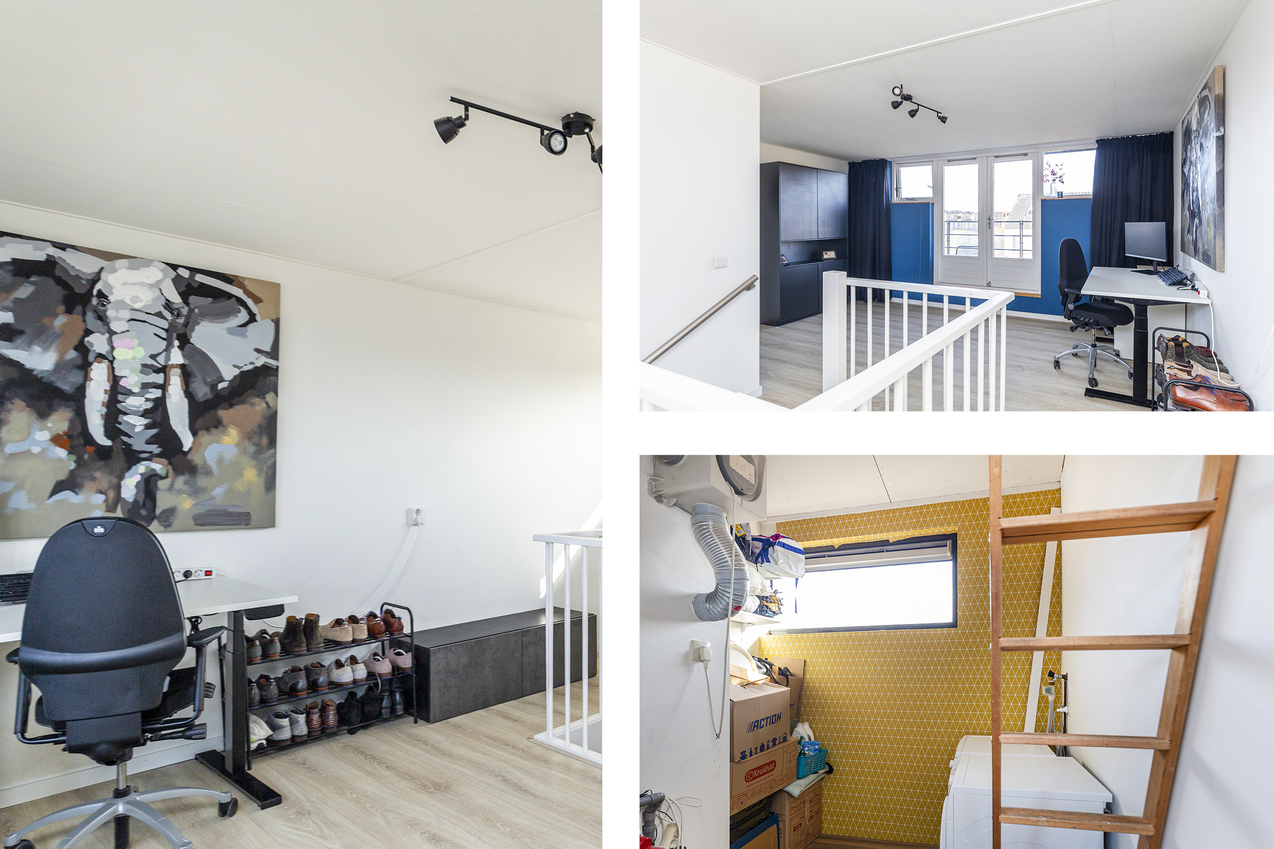 Op de eerste verdieping bevinden zich drie volwaardige slaapkamers. De woning beschikt daarnaast over een ruime zolderverdieping, die uitstekend geschikt is als werkkamer, hobbyruimte of extra slaapkamer. Ook is er een zeer ruime vliering aanwezig voor extra opslag.