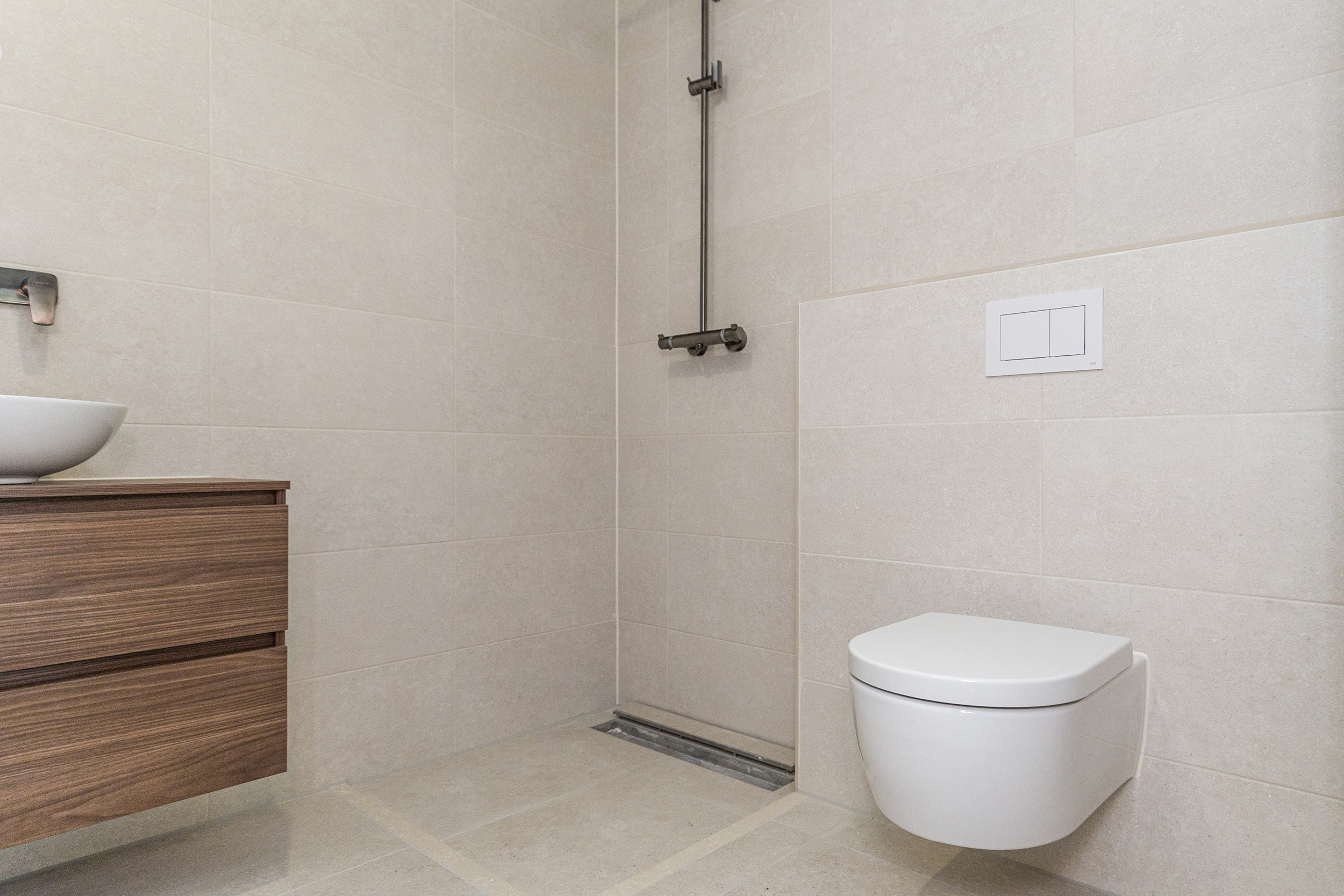 - Bathroom and toilet with luxury tiles and plumbing