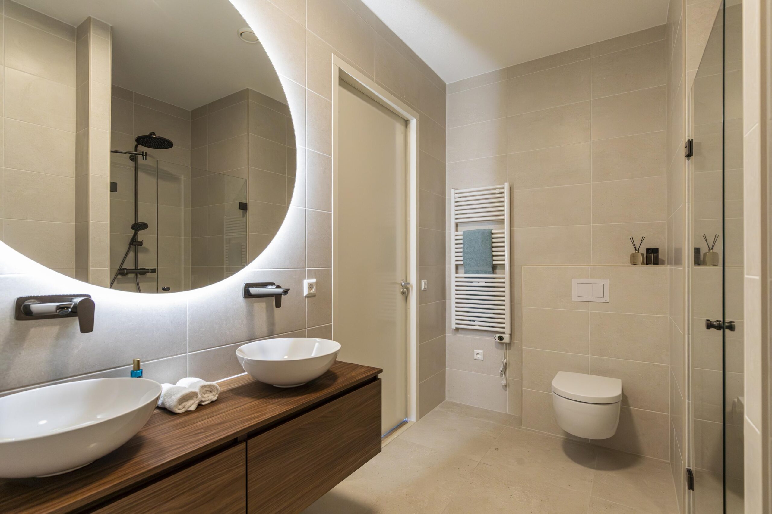 - Badkamers en toilet voorzien van luxe tegelwerk en sanitair;