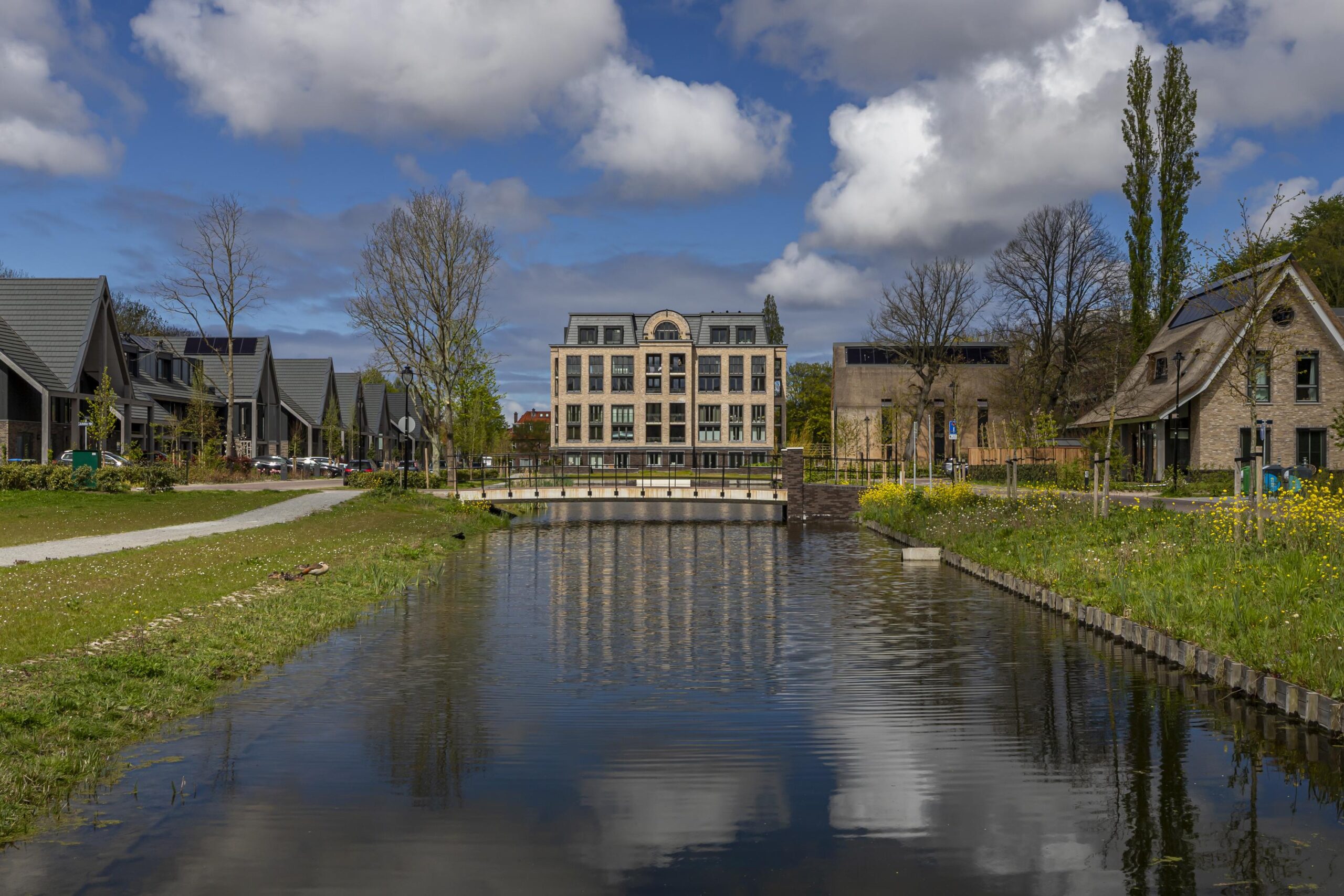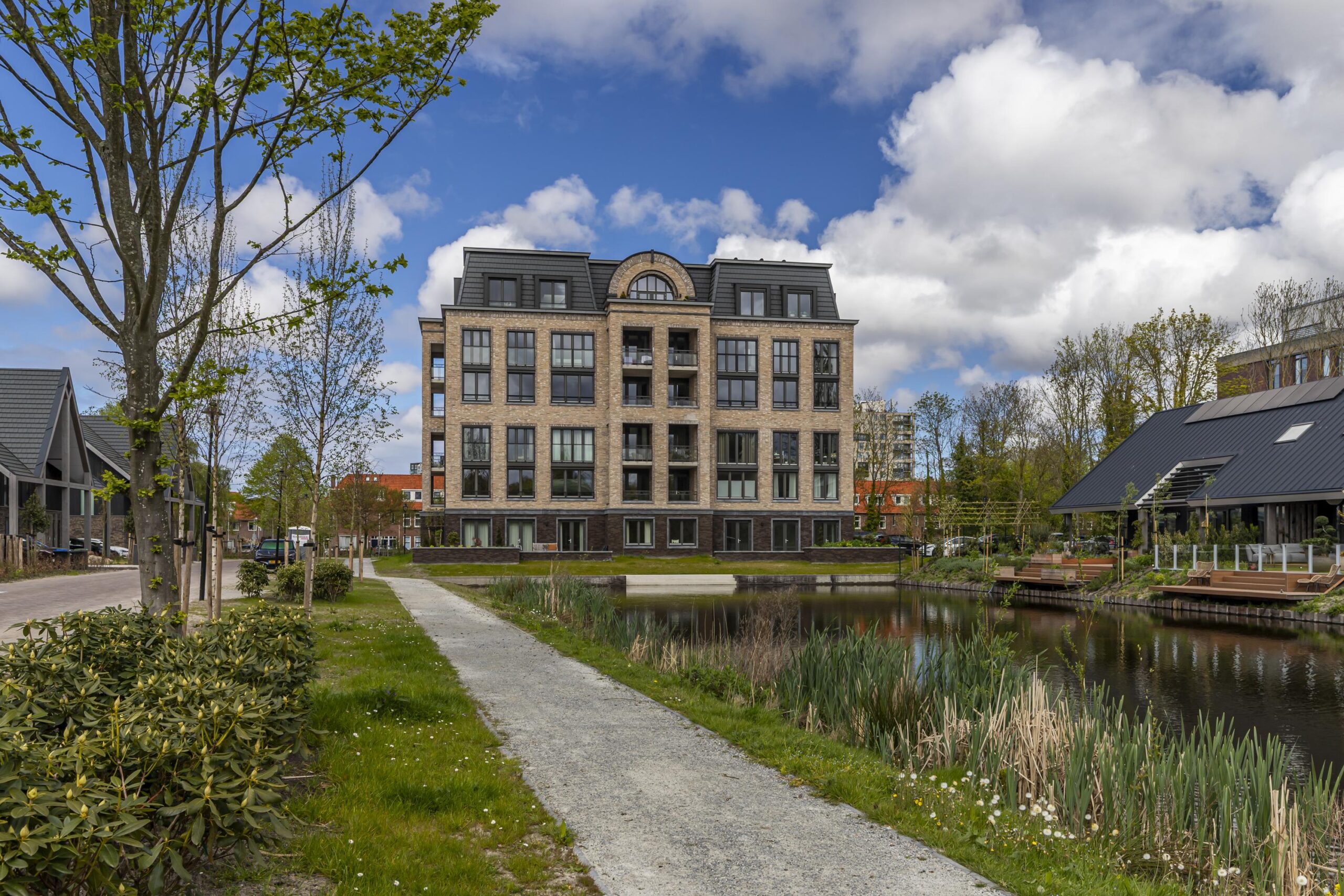 Een droom die uitkomt… Buitenplaats Hofstede in Rijswijk is gerealiseerd en wat is het mooi geworden! Het landgoed is ontworpen rond het nieuwe Landhuis, gelegen aan de waterpartij in het hart van het landgoed met een toegangsroute die daar slingerend naartoe leidt. Het markante gebouw bevat 16 luxe appartementen en penthouses met ruime, lichte interieurs en grote ramen die uitzicht bieden op het groen.
