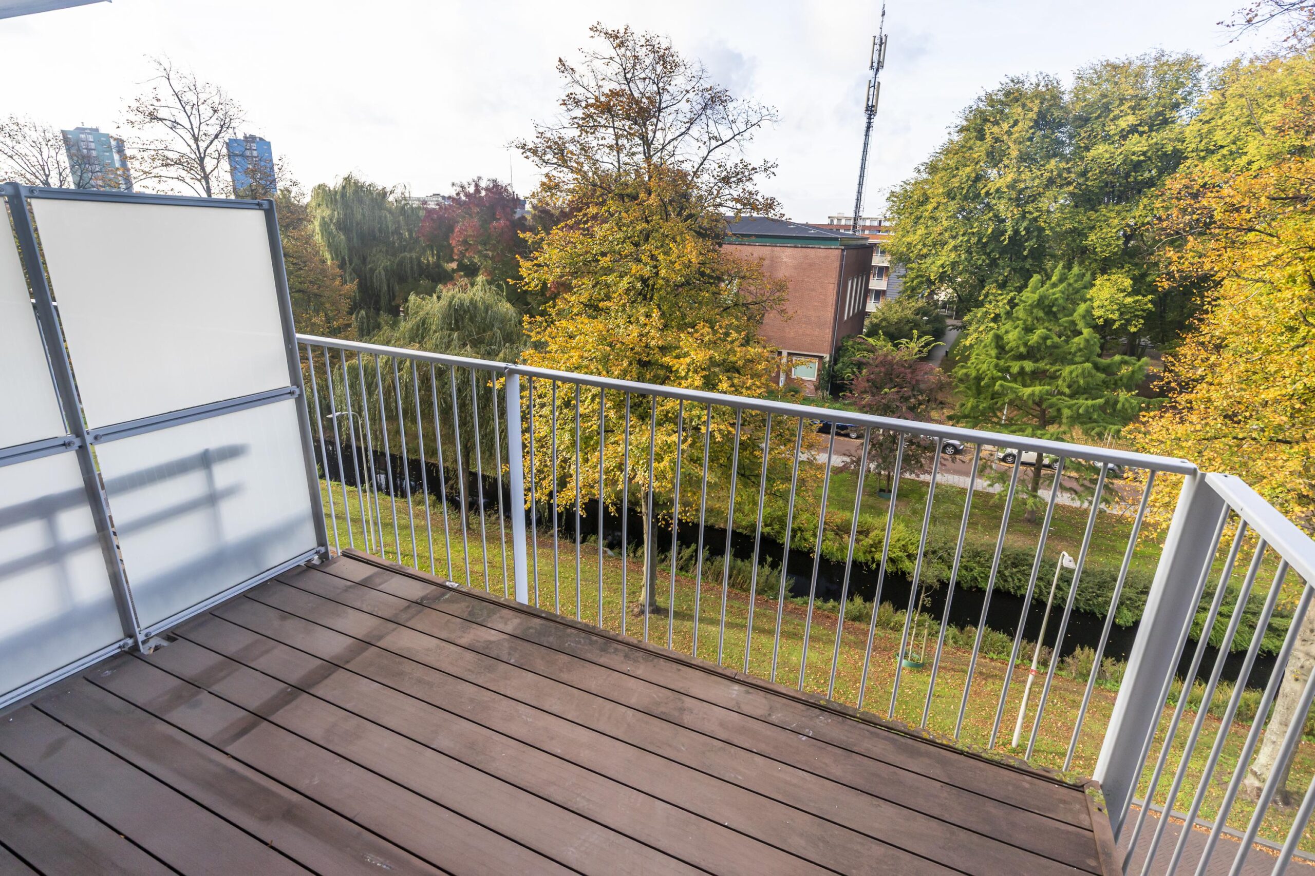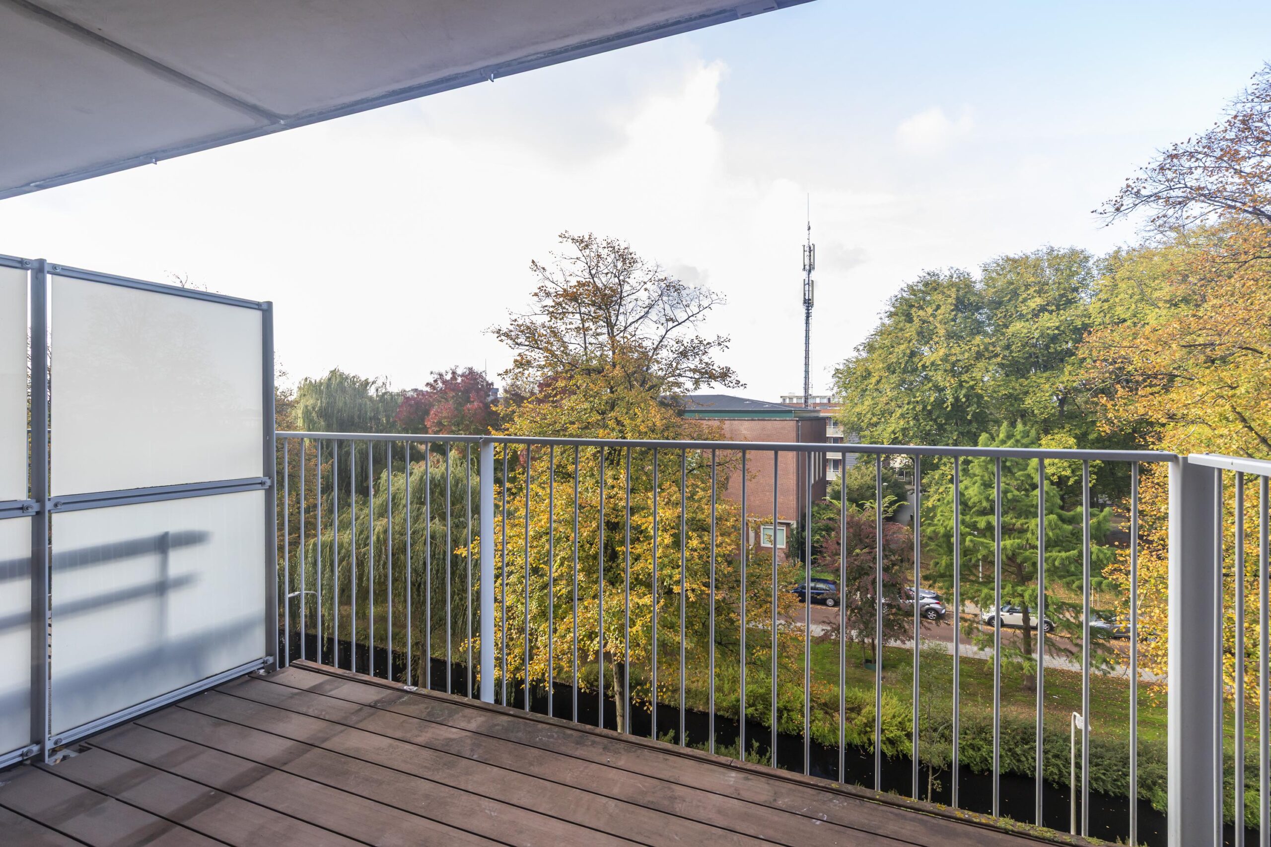 Via de woonkamer is er toegang tot het ruime, zonnige balkon op het zuiden. Dit balkon biedt voldoende ruimte voor een zitje met een tafel en stoelen en heeft een fraai uitzicht op het omliggende groen en water.