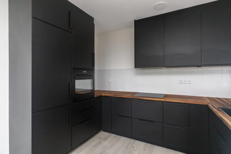 De moderne open keuken is van alle gemakken voorzien, waaronder een inbouw combimagnetron en oven, inductiekookplaat, geïntegreerde afzuigkap, koelkast en vaatwasser.