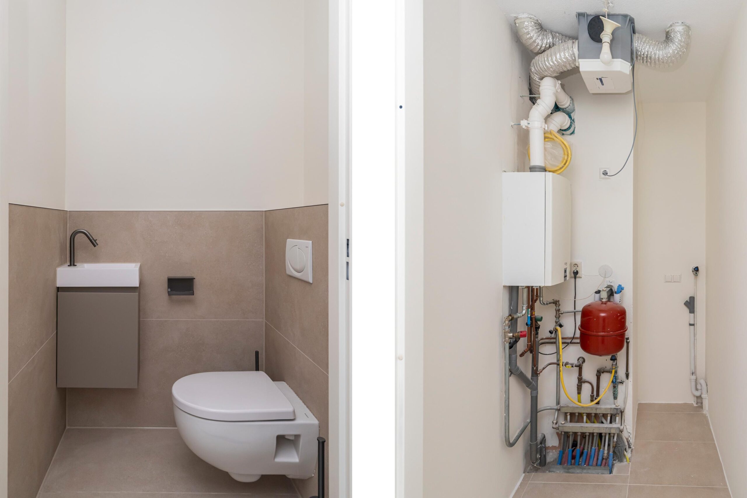 Naast het toilet bevindt zich een praktische berging met de CV-installatie, verwarming en mechanische ventilatie.