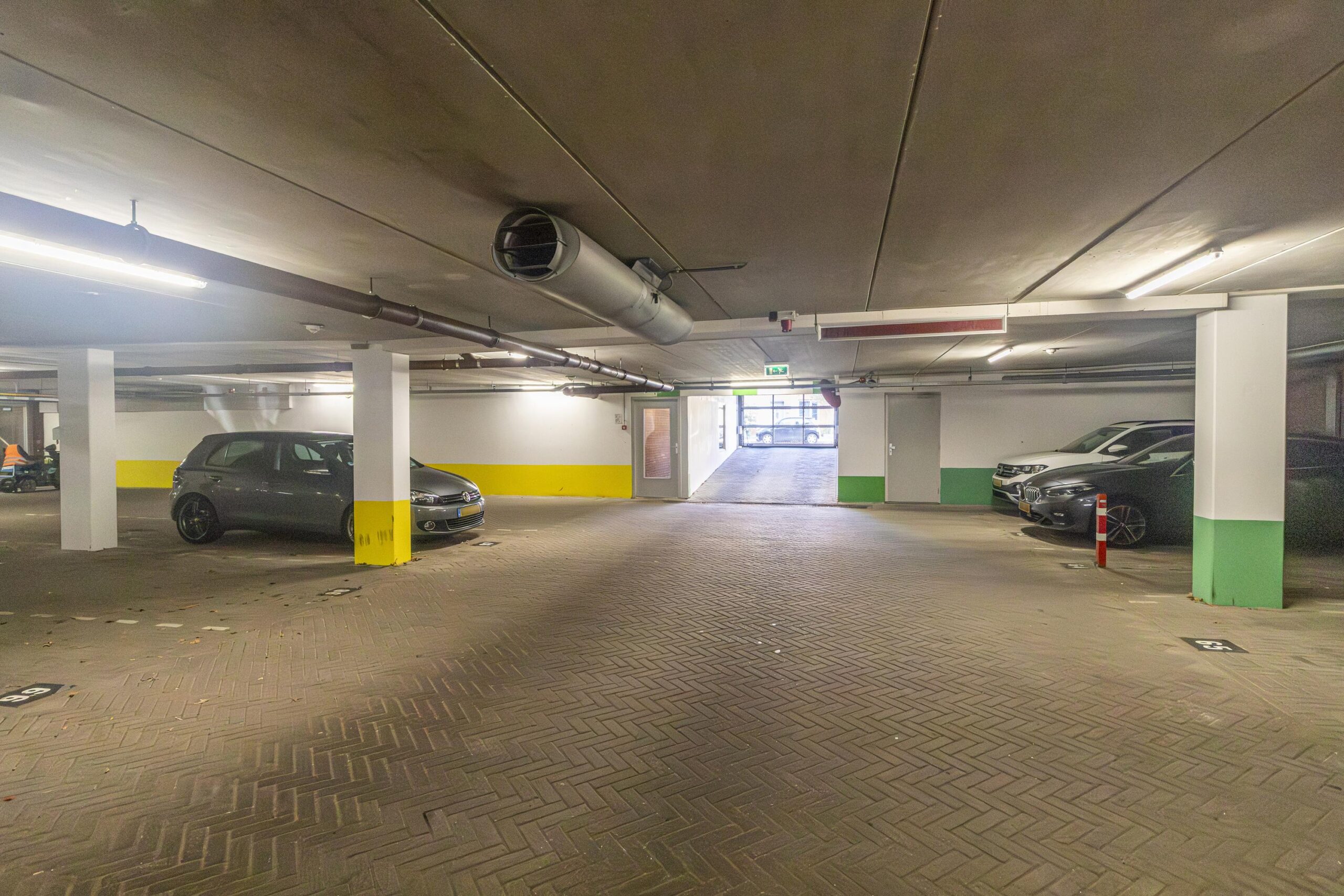 De woning beschikt zich over een eigen parkeerplek in de privé parkeergarage, bereikbaar via de achterzijde van het appartementencomplex. Daarnaast is er een aparte (privé) berging aanwezig in het complex.