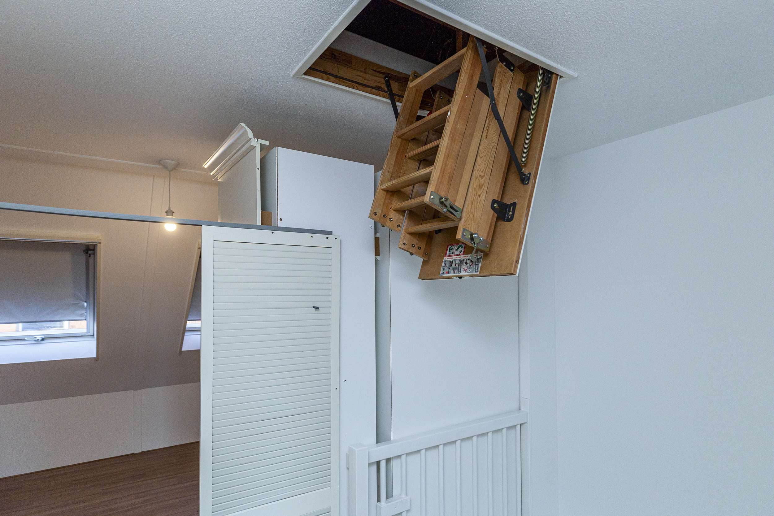 Vlizotrap naar de vliering met opstelplaats Cv-ketel en mechanische ventilatie, alwaar de mogelijkheid bestaat voor het creëren van een 4e slaapkamer middels het plaatsen van een vaste trap en een dakraam of baskapel.