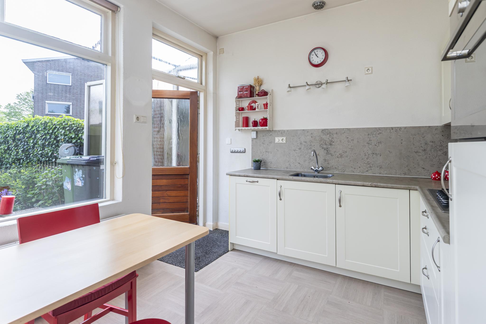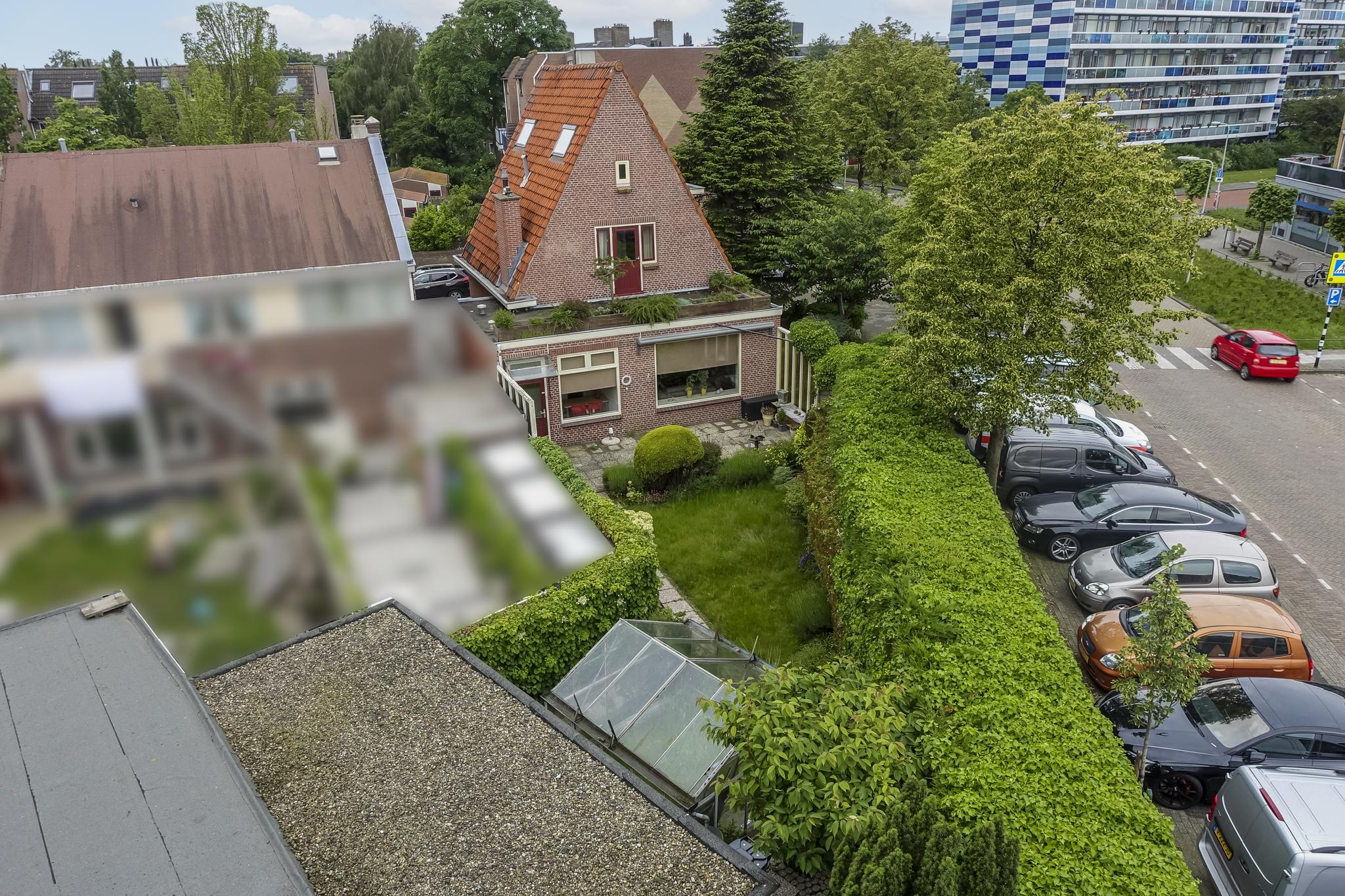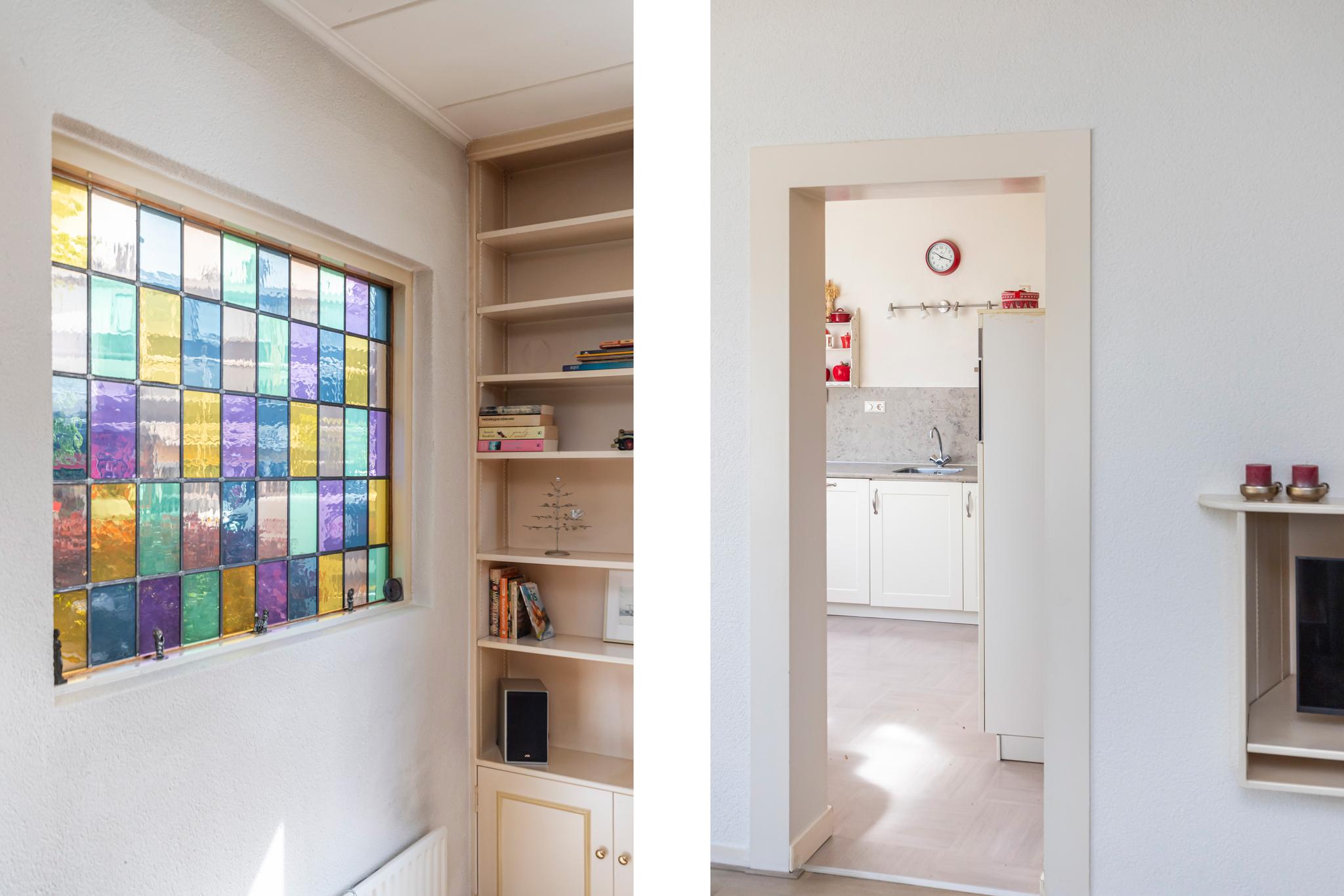 De achtertuin heeft een speelse indeling en is gelegen op het noordoosten; ideaal voor een zonnig ontbijt of een kopje koffie in de ochtendzon. De wens om zelf groente of fruit te verbouwen? Dat kan in het glazen kasje! En zoeken naar een parkeerplek behoort tot het verleden, want er is parkeergelegenheid op eigen terrein en in de garage.