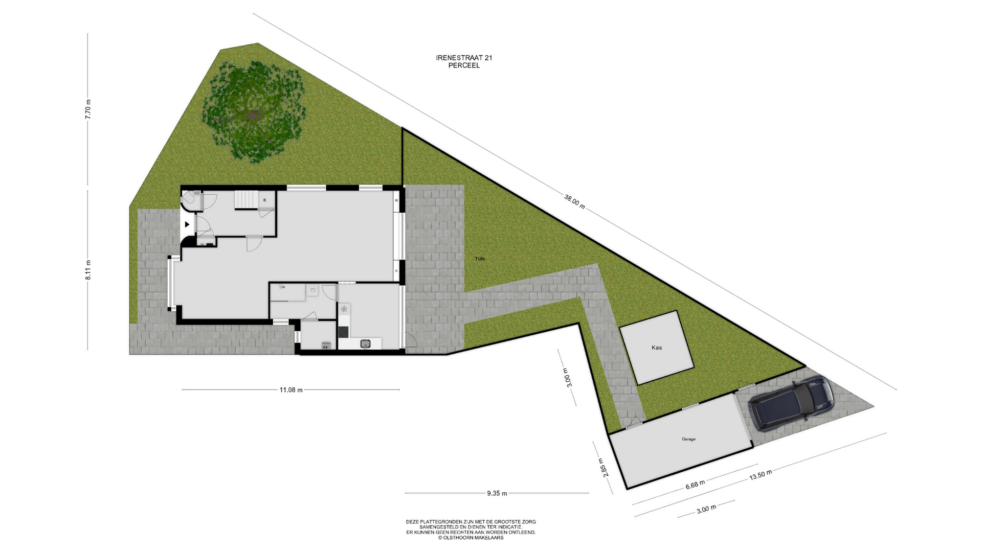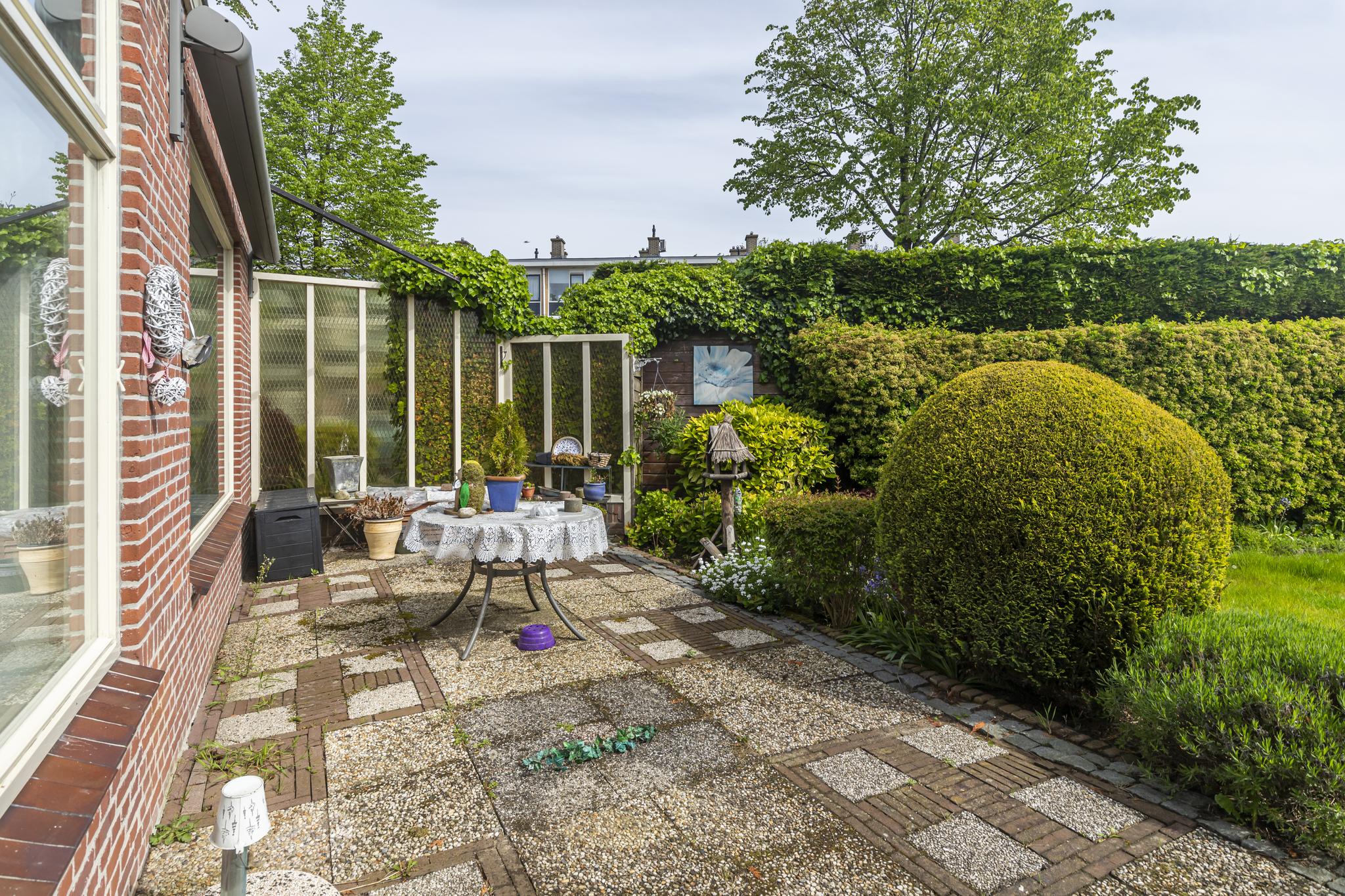 - Tuin op het noordoosten met glazen kasje