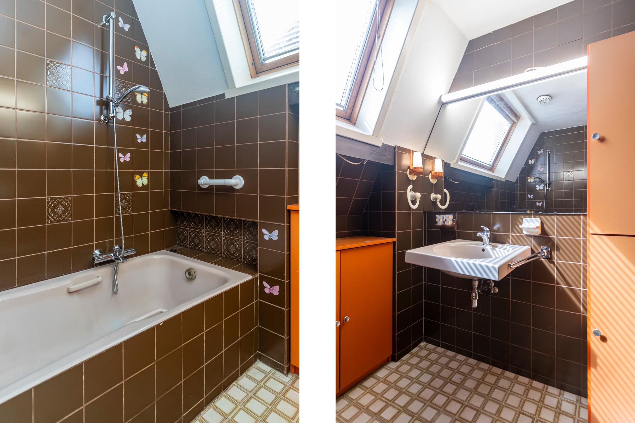 - Badkamervoorzieningen Douche, wasmachineaansluiting, ligbad, wastafel