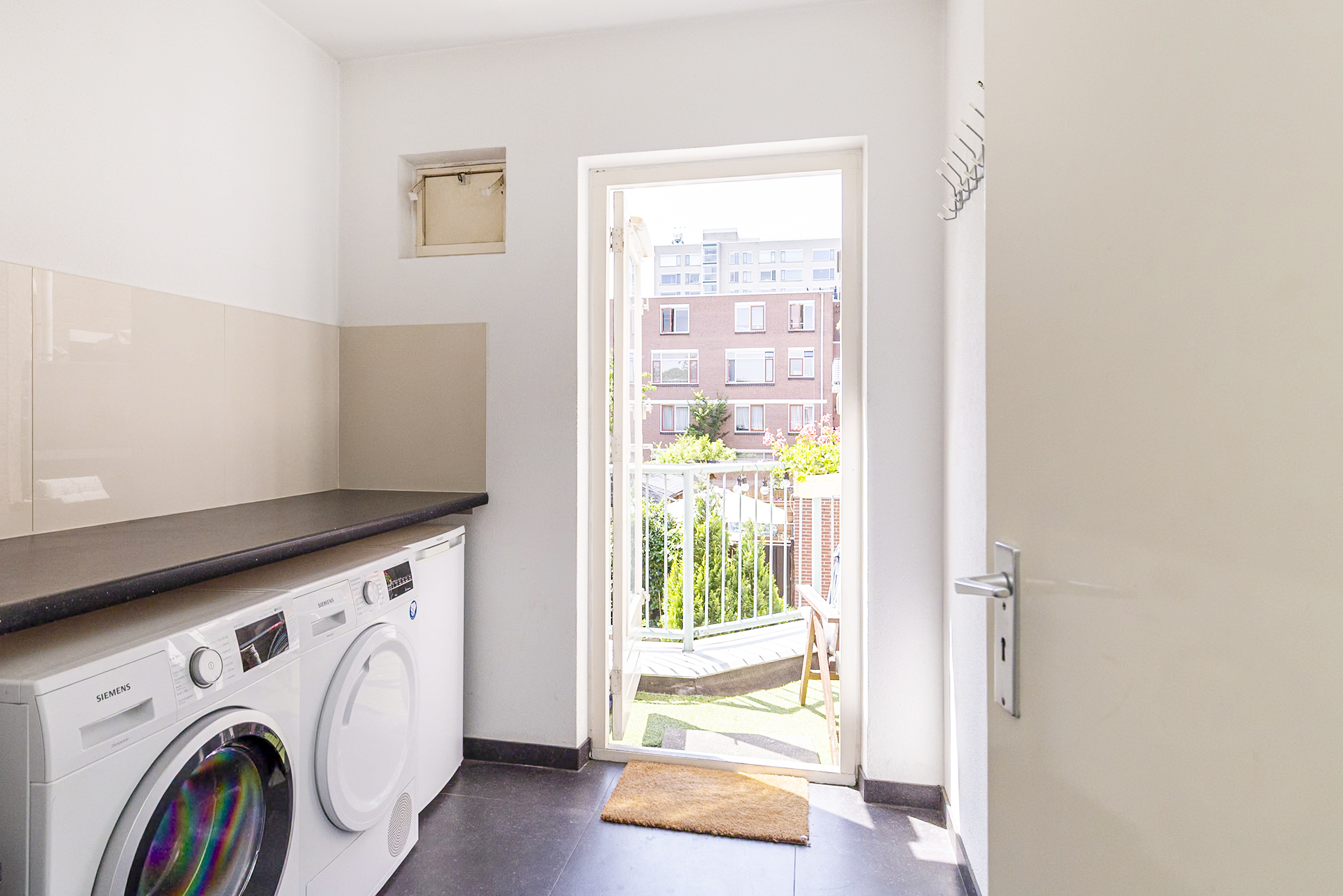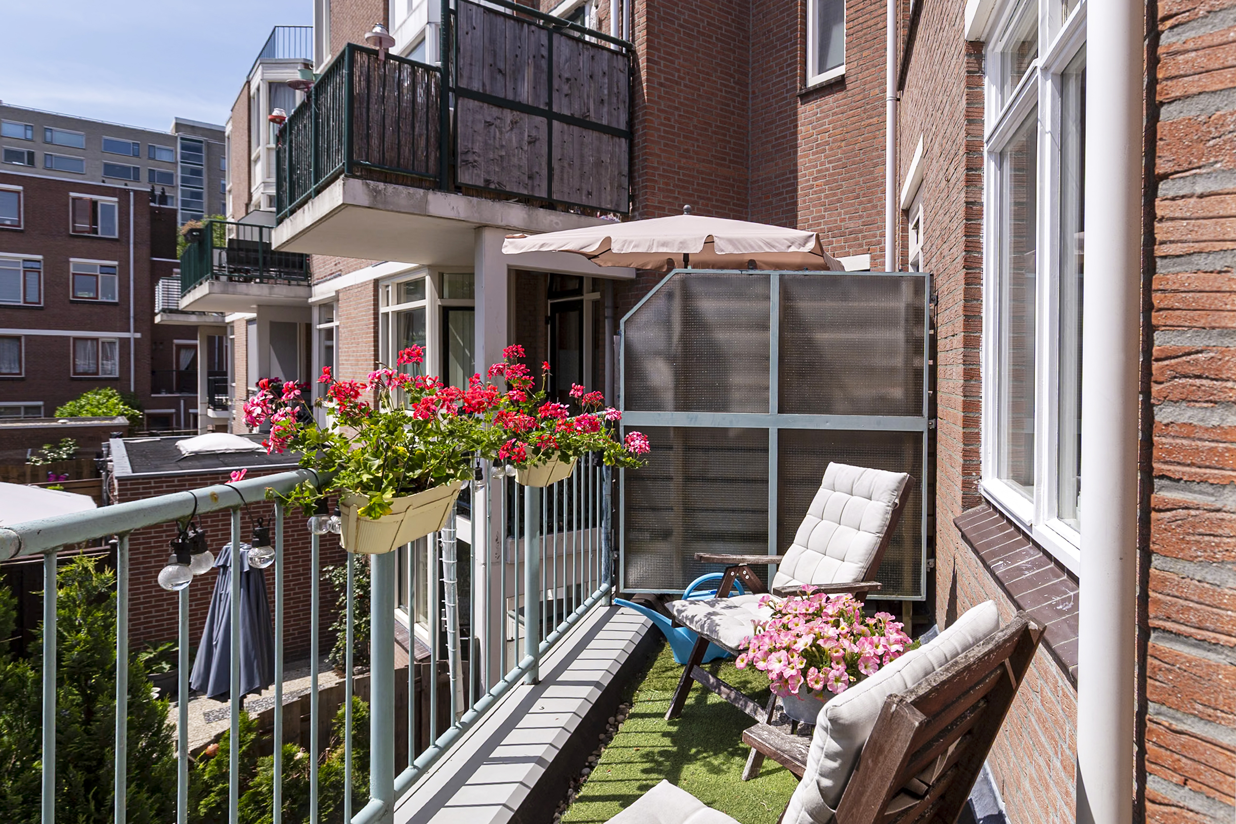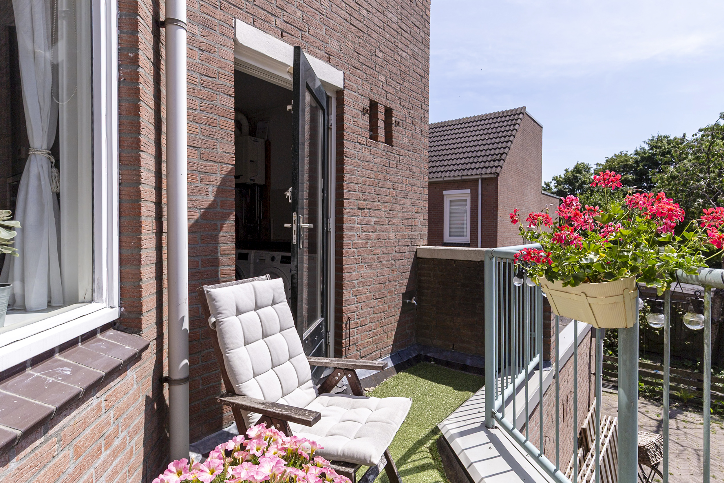 Via de multifunctionele ruimte bereik je het royale balkon op het zuiden. Hier geniet je volop van de zon, van ongeveer twaalf tot acht uur. Daarnaast bestaat er de mogelijkheid om dit balkon uit te bouwen tot een dakterras op het naastgelegen dak, uiteraard onder voorbehoud van toestemming en vergunningen.