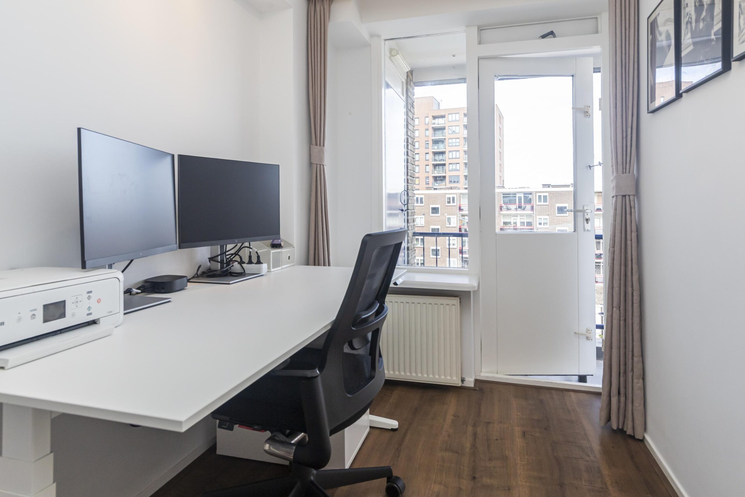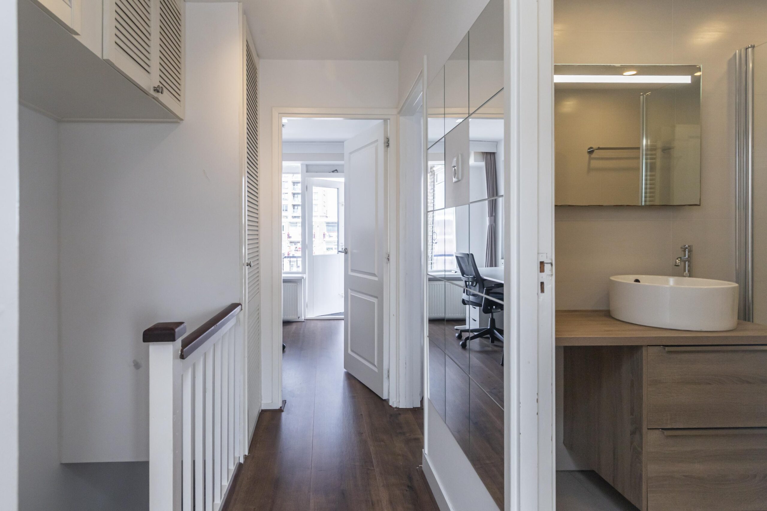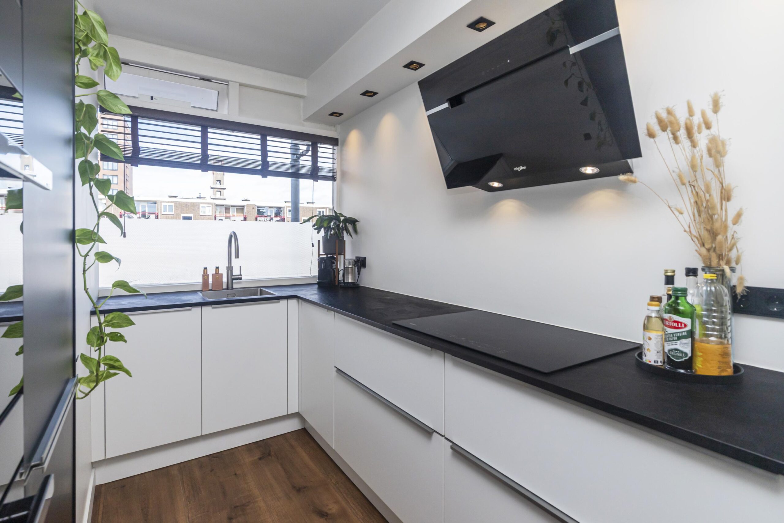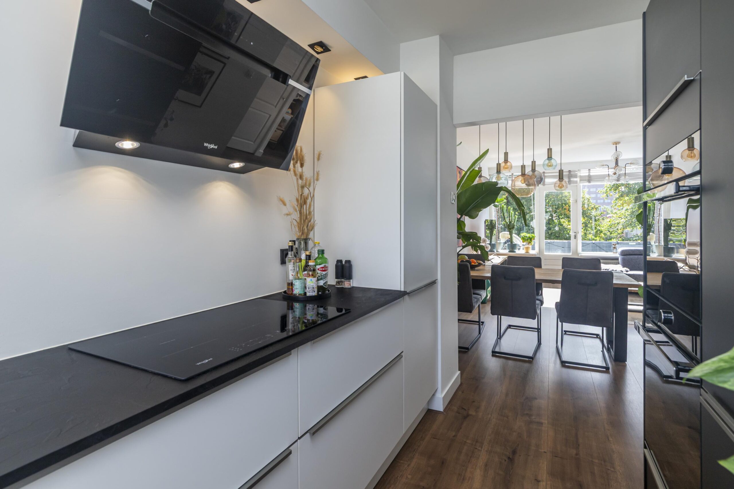 U komt binnen in de vestibule met modern toilet. Ook bevindt zich hier de ingebouwde garderobekast. Vanuit de hal heeft u toegang tot de woonkamer en de trap naar boven. De woonkamer is heerlijk licht en grenst aan het eerste balkon op het zuidoosten. Hier geniet u in de zomerdagen volop van de zon. De halfopen moderne keuken (2020) is gelegen aan de voorzijde van de woning. De keuken beschikt over diverse inbouwapparatuur, te weten: een 4-pits inductiekookplaat, een combi-ovenmagnetron, oven, koel-/vriescombinatie, vaatwasser en een Quooker. De thermostaat bevindt zich in de woonkamer en is eventueel ook via een mobiele app te bedienen.