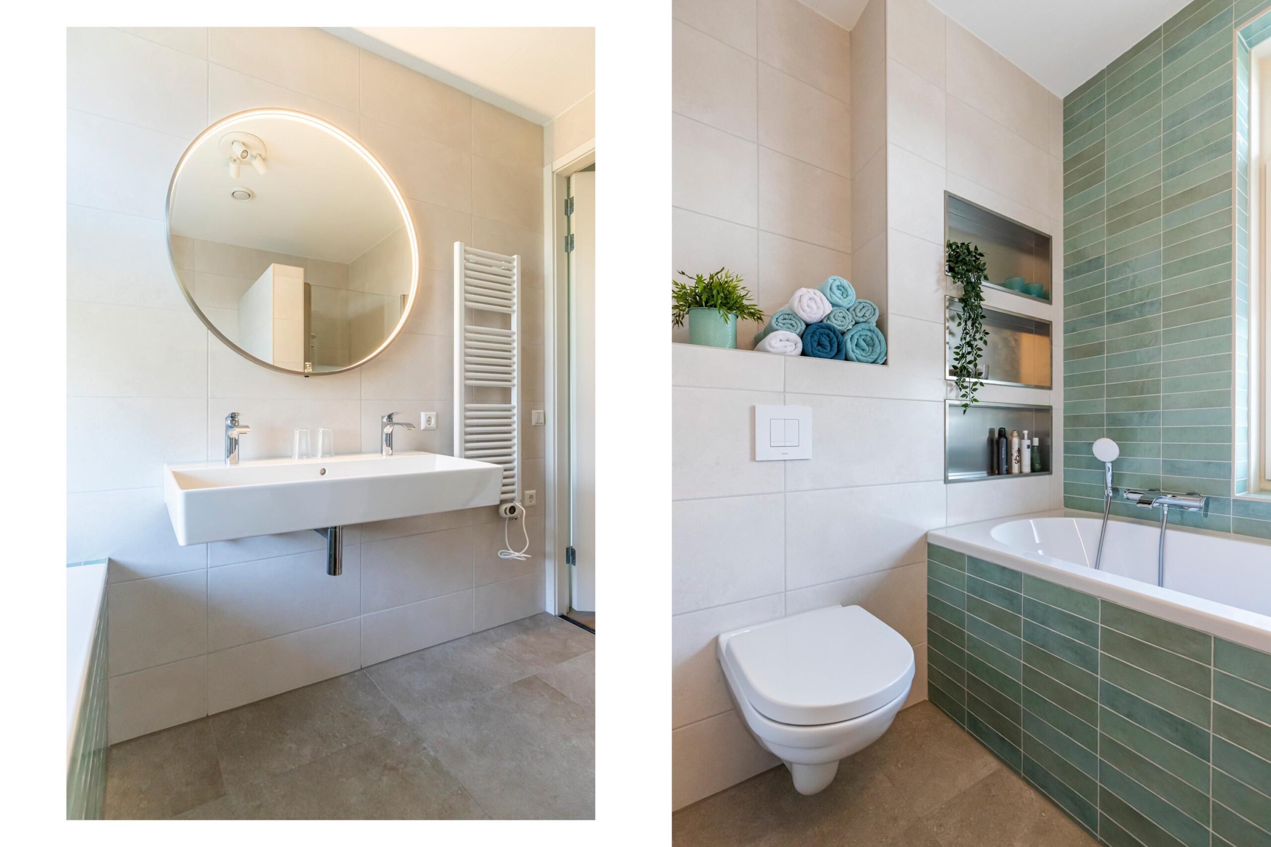 - Badkamervoorzieningen Ligbad, toilet, douche, dubbele wastafel