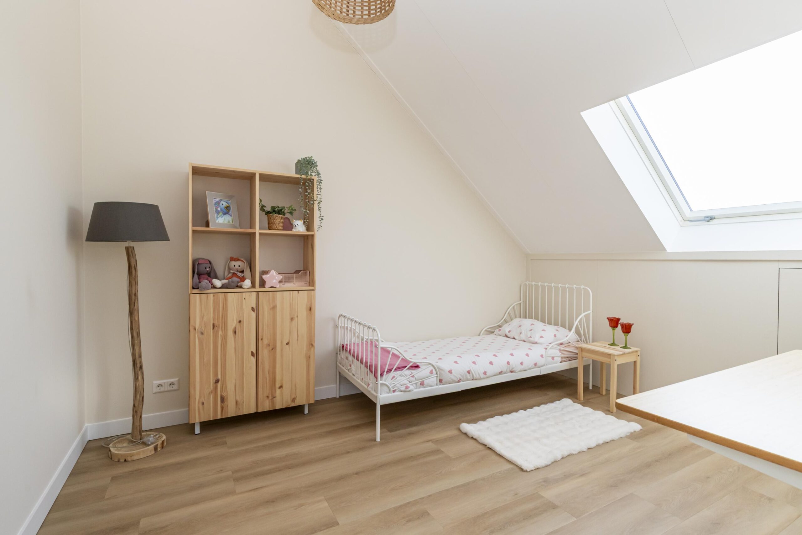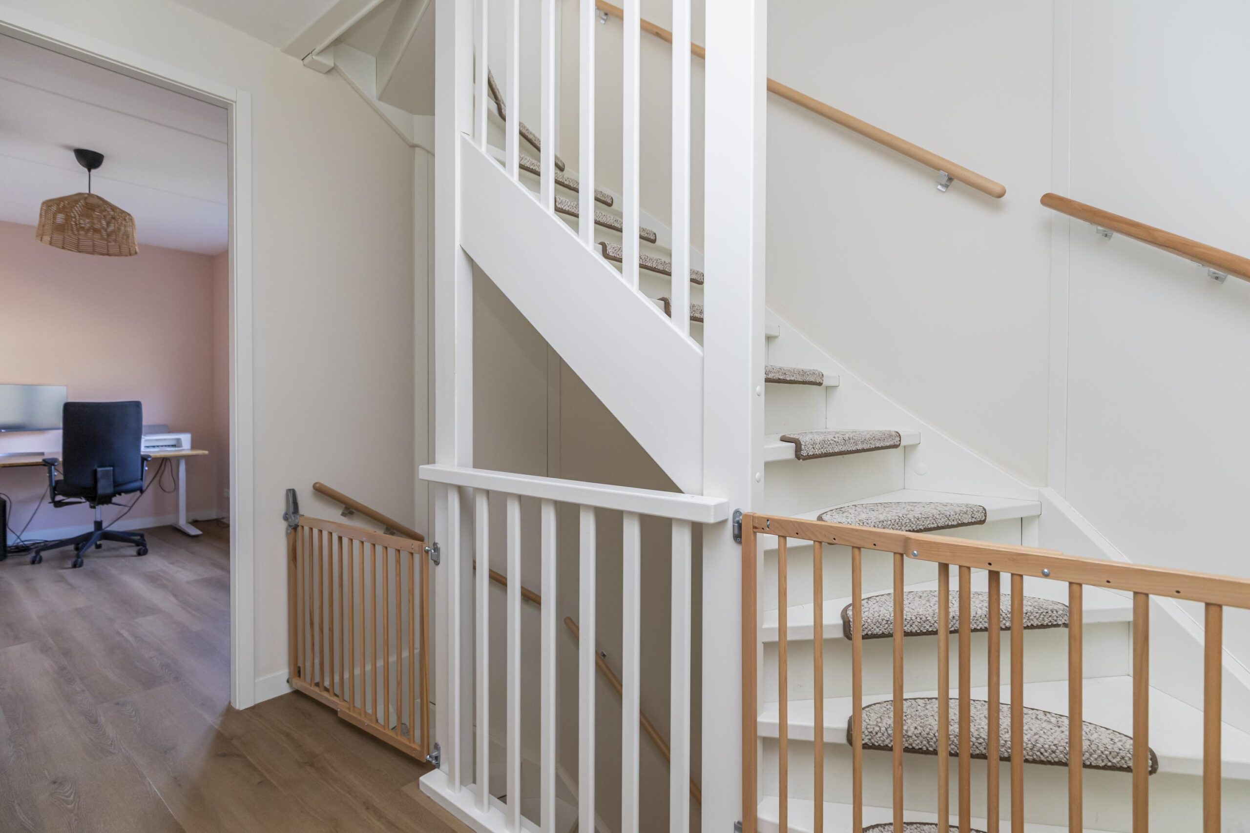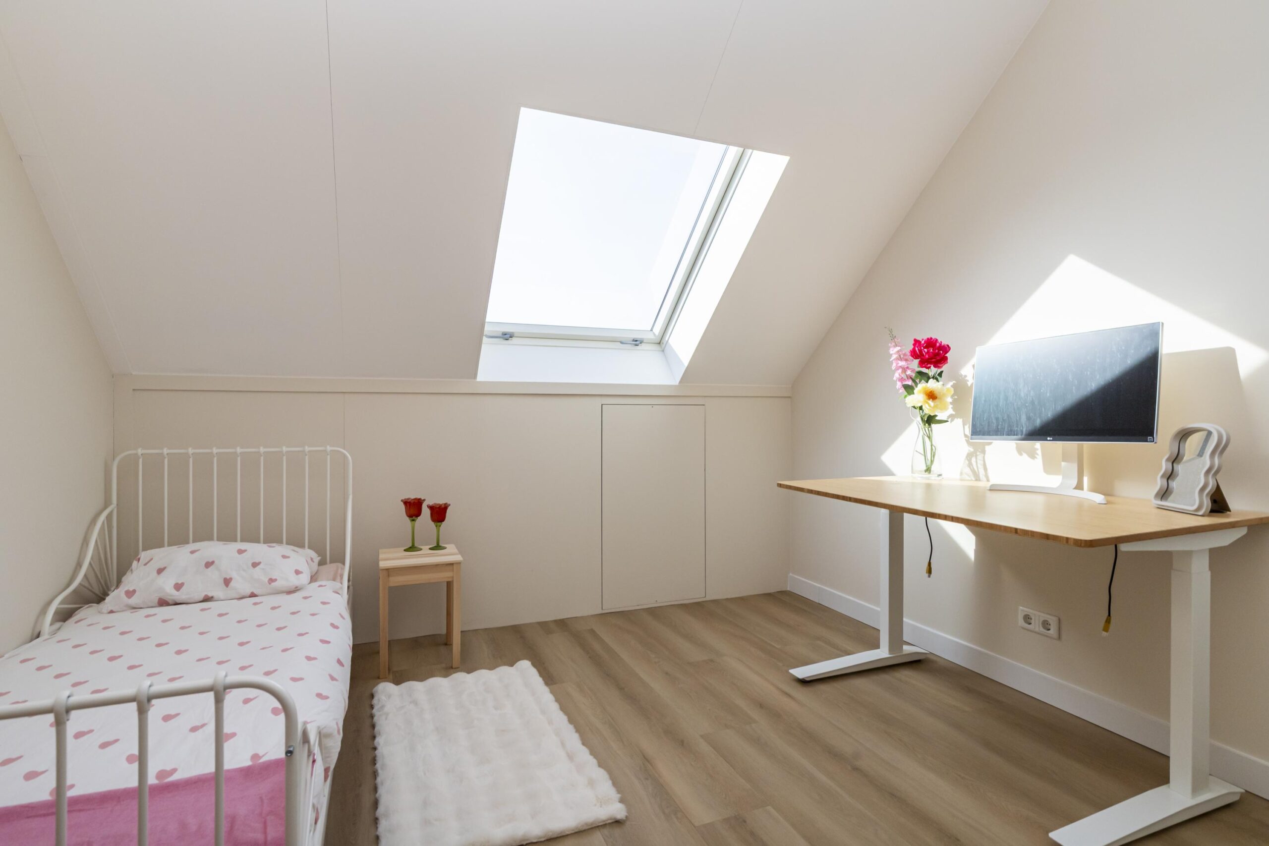 De tweede verdieping is verrassend ruim en praktisch ingedeeld. Op de overloop is plaats voor de wasmachine en droger, met daarnaast extra bergruimte. Vanaf hier bereik je drie kamers: een fijne ruimte aan de achterzijde die uitstekend geschikt is als werk kamer of als tweede badkamer, een ruime slaapkamer aan de voorzijde en nog een ruime kamer aan de achterzijde. Dankzij de slimme indeling en de bergruimte achter de knieschotten is deze verdieping optimaal benut en biedt zij volop mogelijkheden.