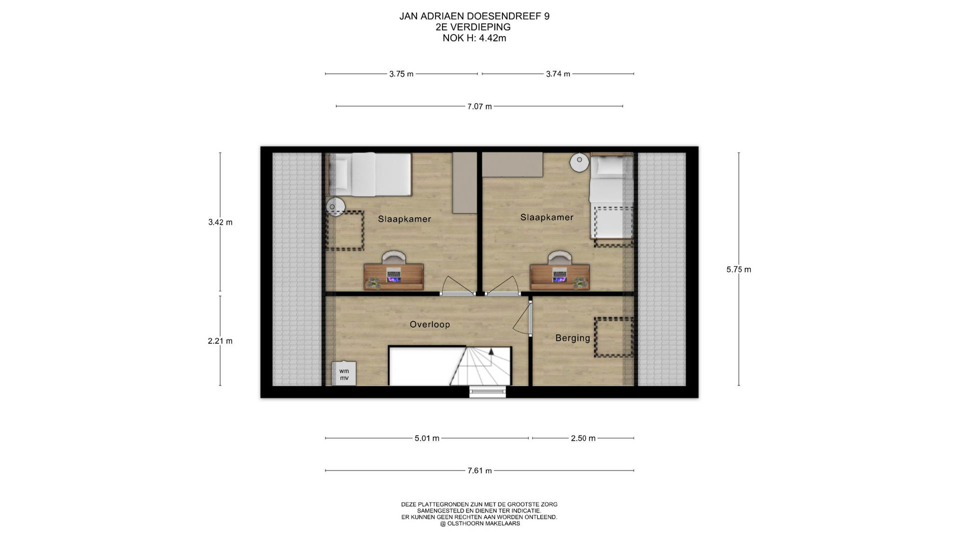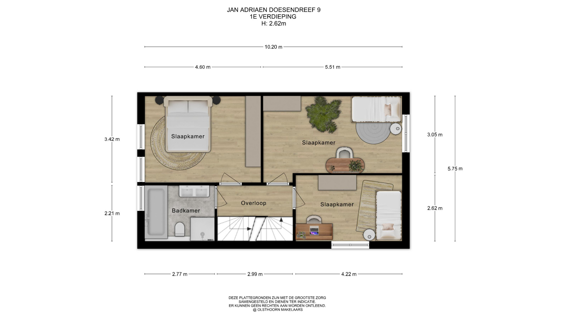 Op deze verdieping bevinden zich drie ruime slaapkamers. Aan de achterzijde liggen twee kamers, waarvan één een hoekkamer is met extra zijraam. Aan de voorzijde bevindt zich de derde ruime slaapkamer.