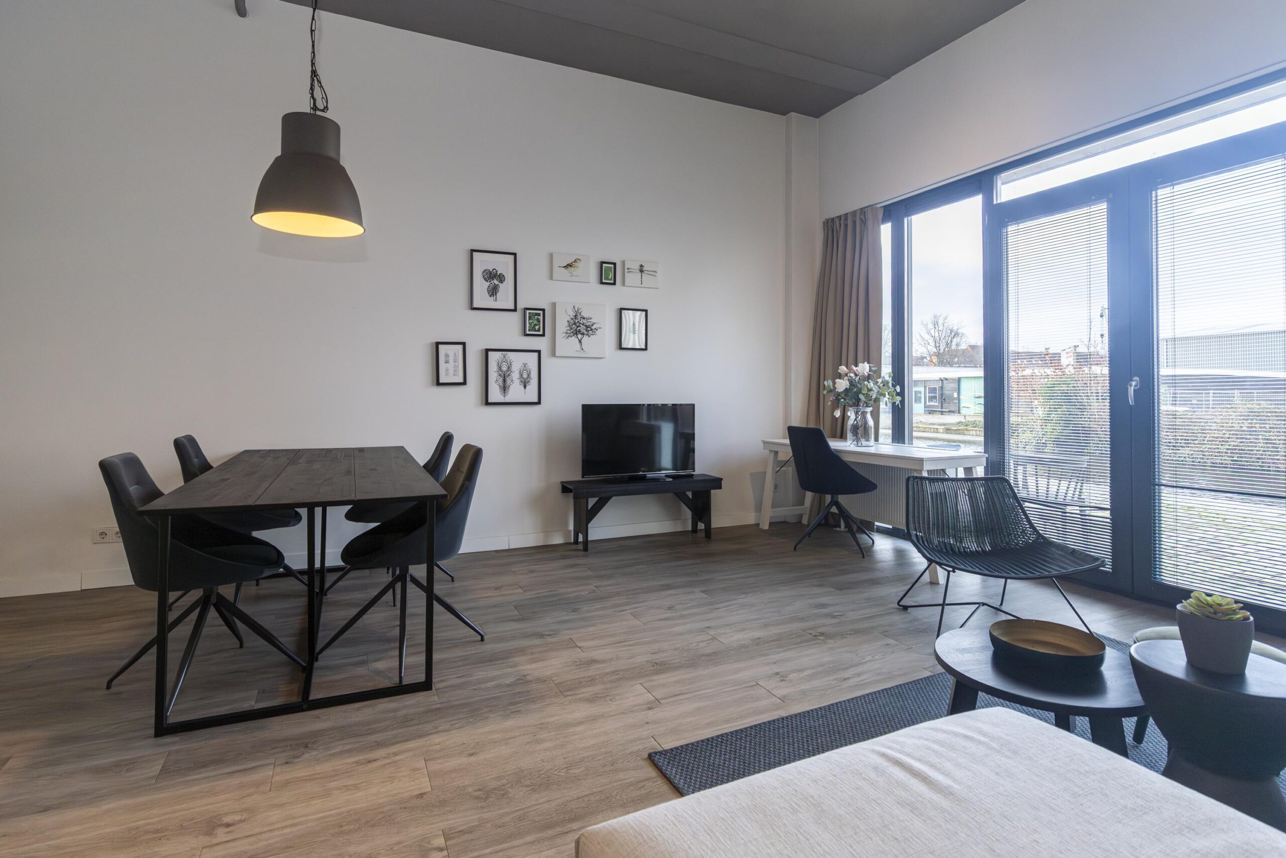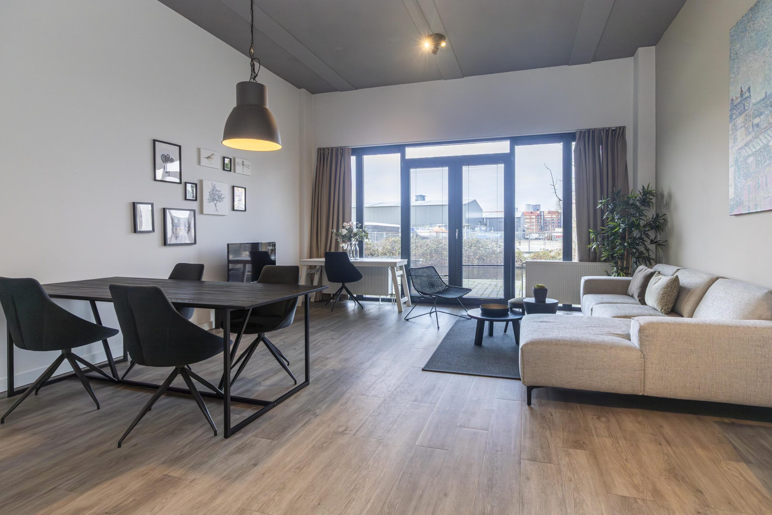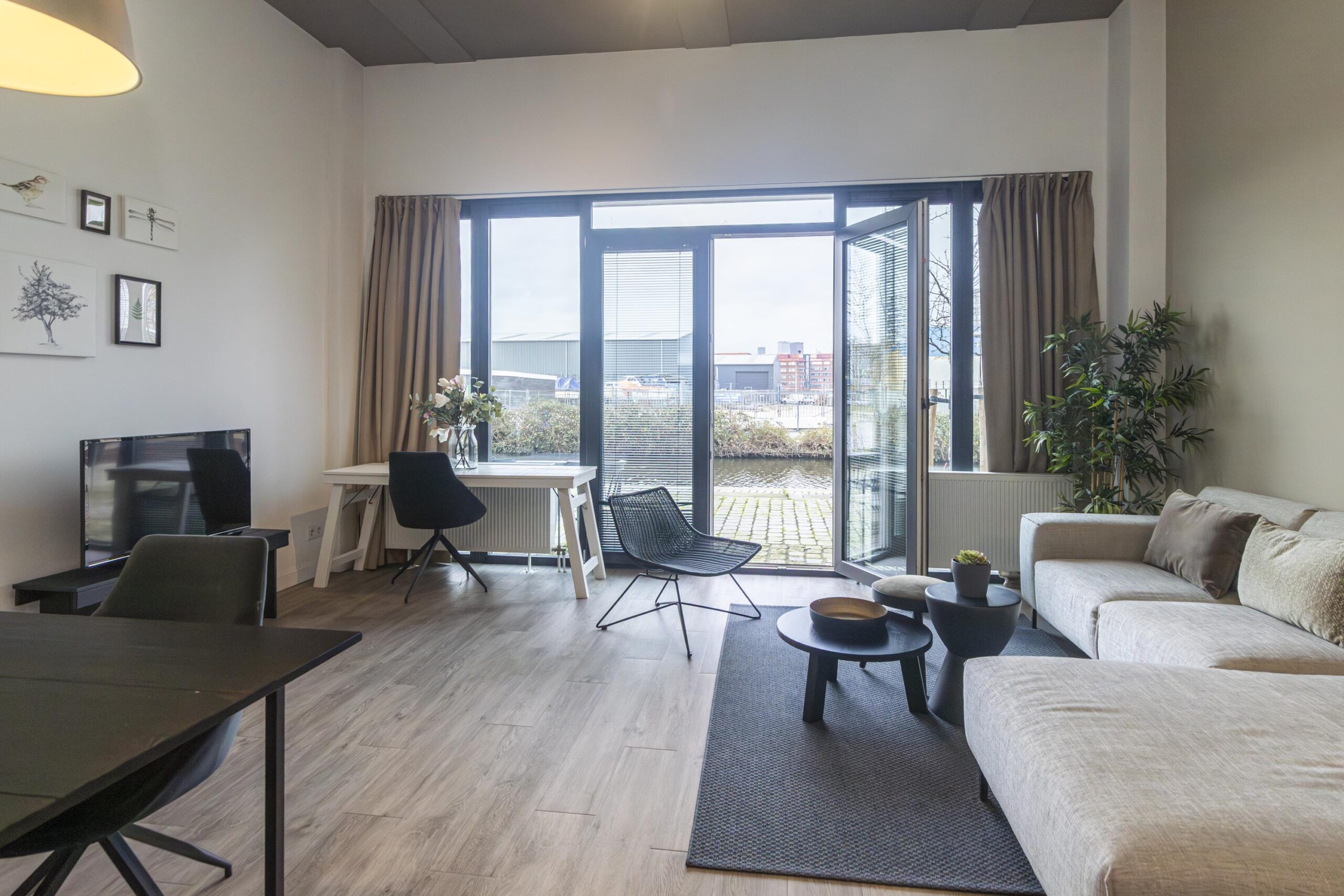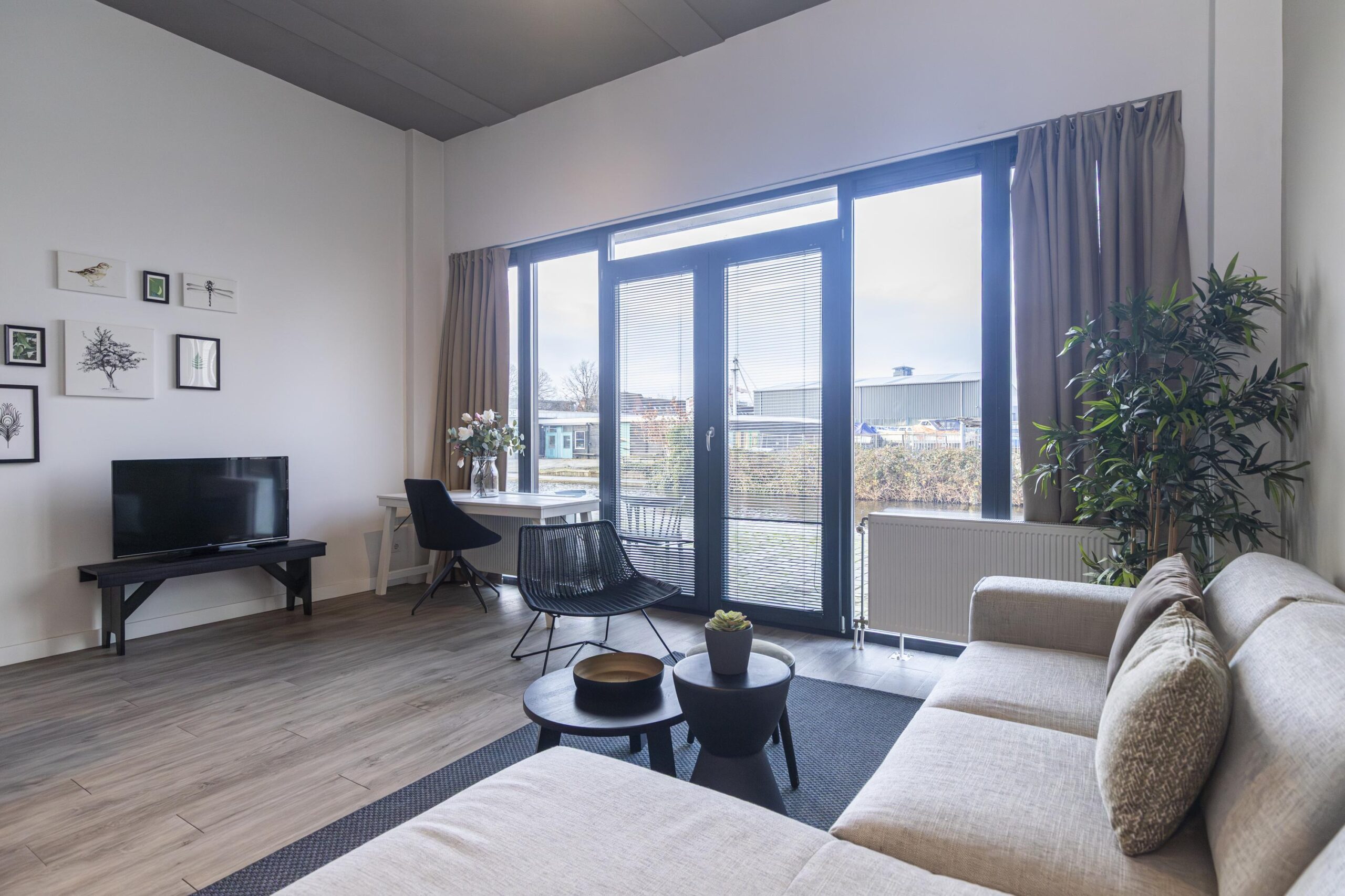 - Lichte woonkamer met grote raampartijen en uitzicht over de Trekvliet