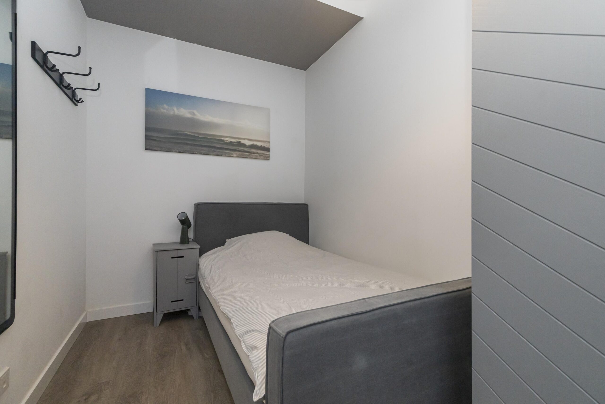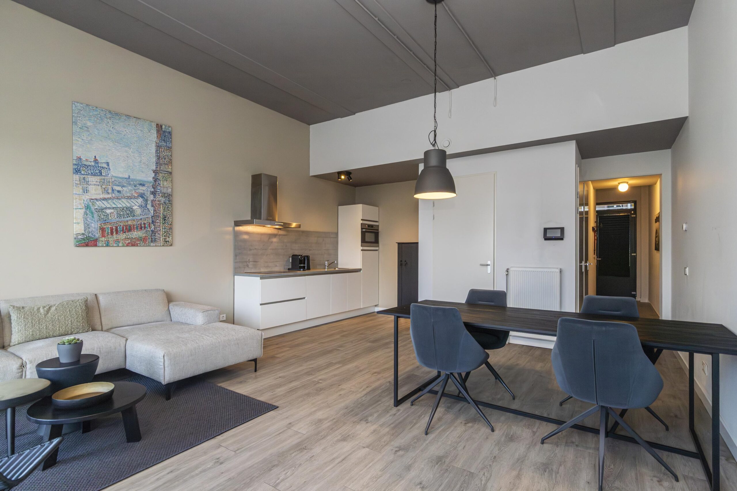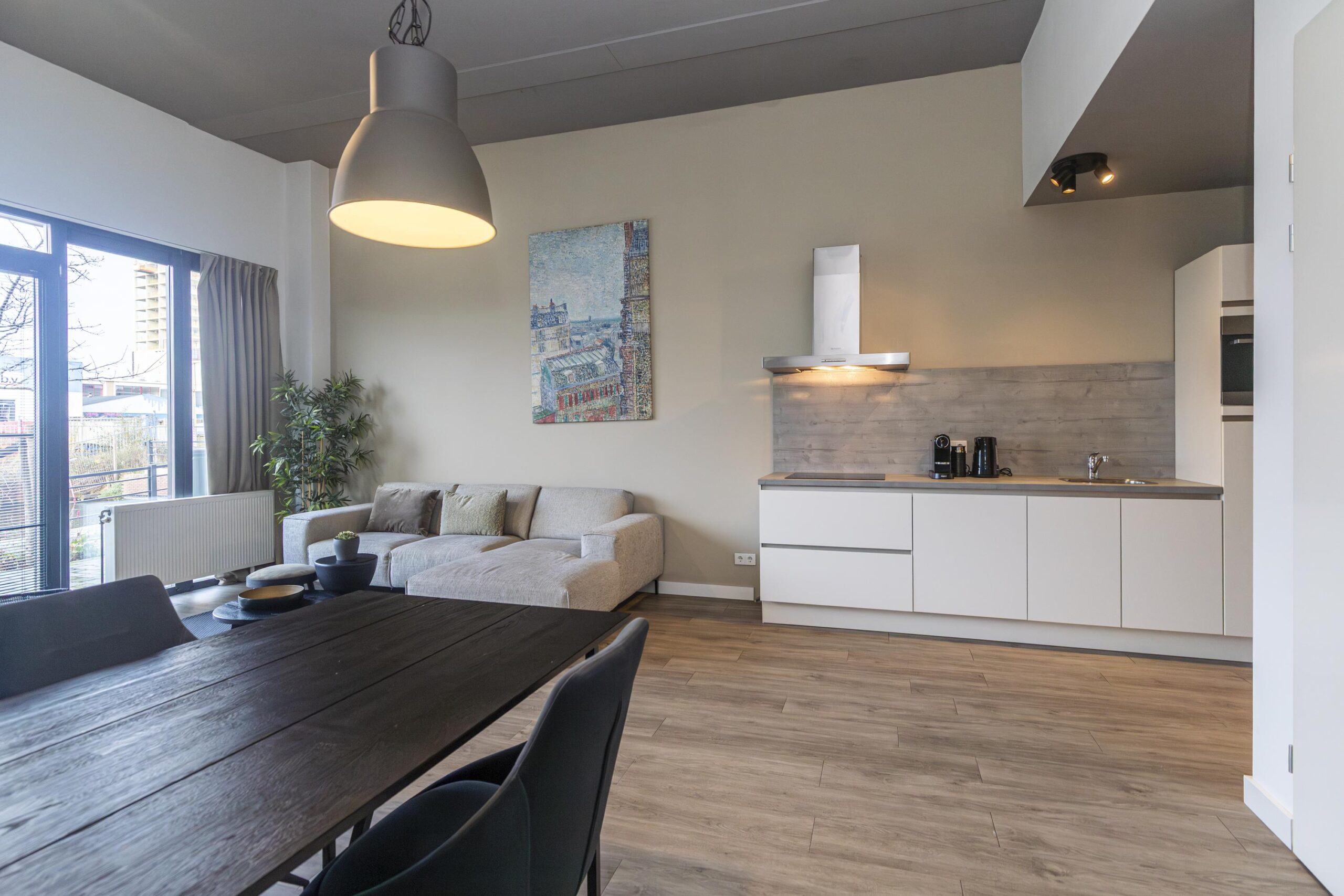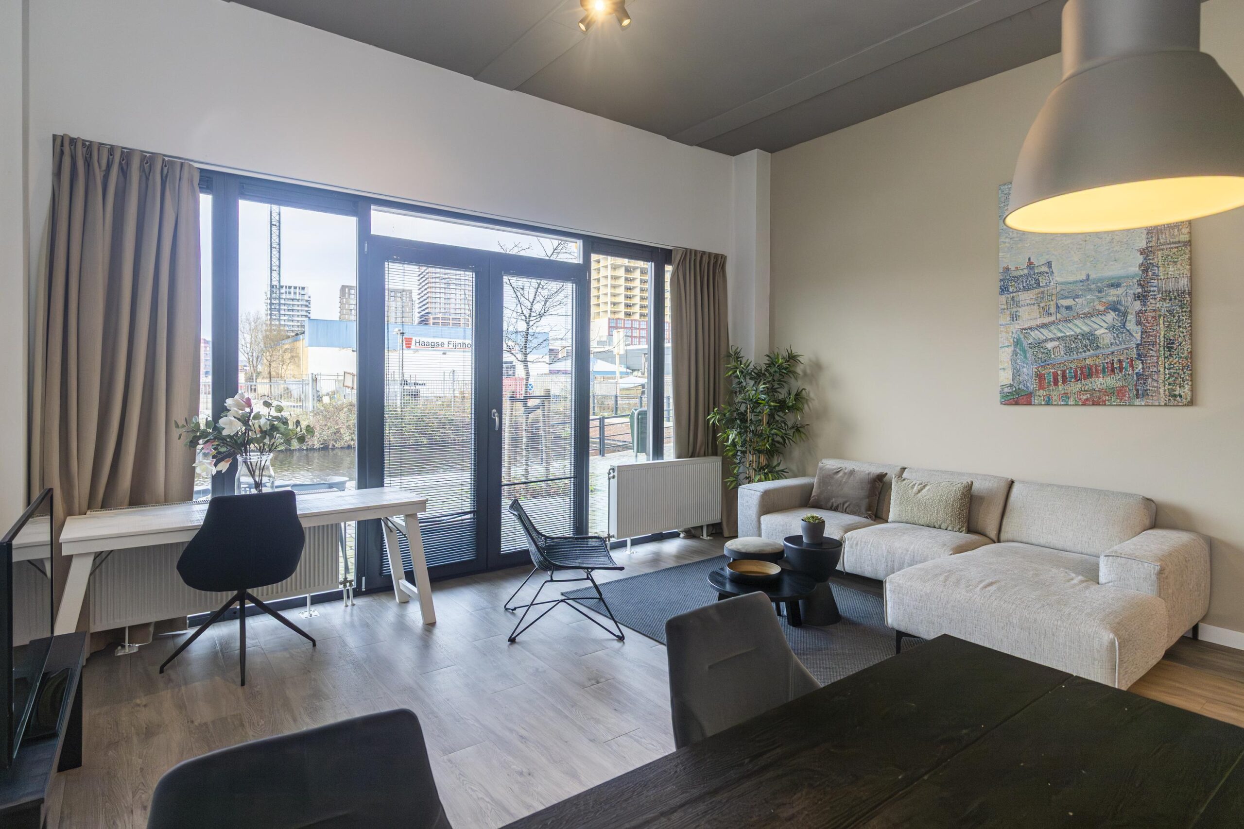 De modern afgewerkte badkamer is betegeld tot aan het plafond en uitgerust met een inloopdouche, wastafel en toilet. De lichte woonkamer biedt dankzij grote raampartijen veel daglicht en een prachtig uitzicht over de Trekvliet en de skyline van Den Haag. De keuken is voorzien van diverse inbouwapparatuur, waaronder een 4-pits inductiekookplaat, koelkast met vriesvak, combi oven en een recirculatie afzuigkap.