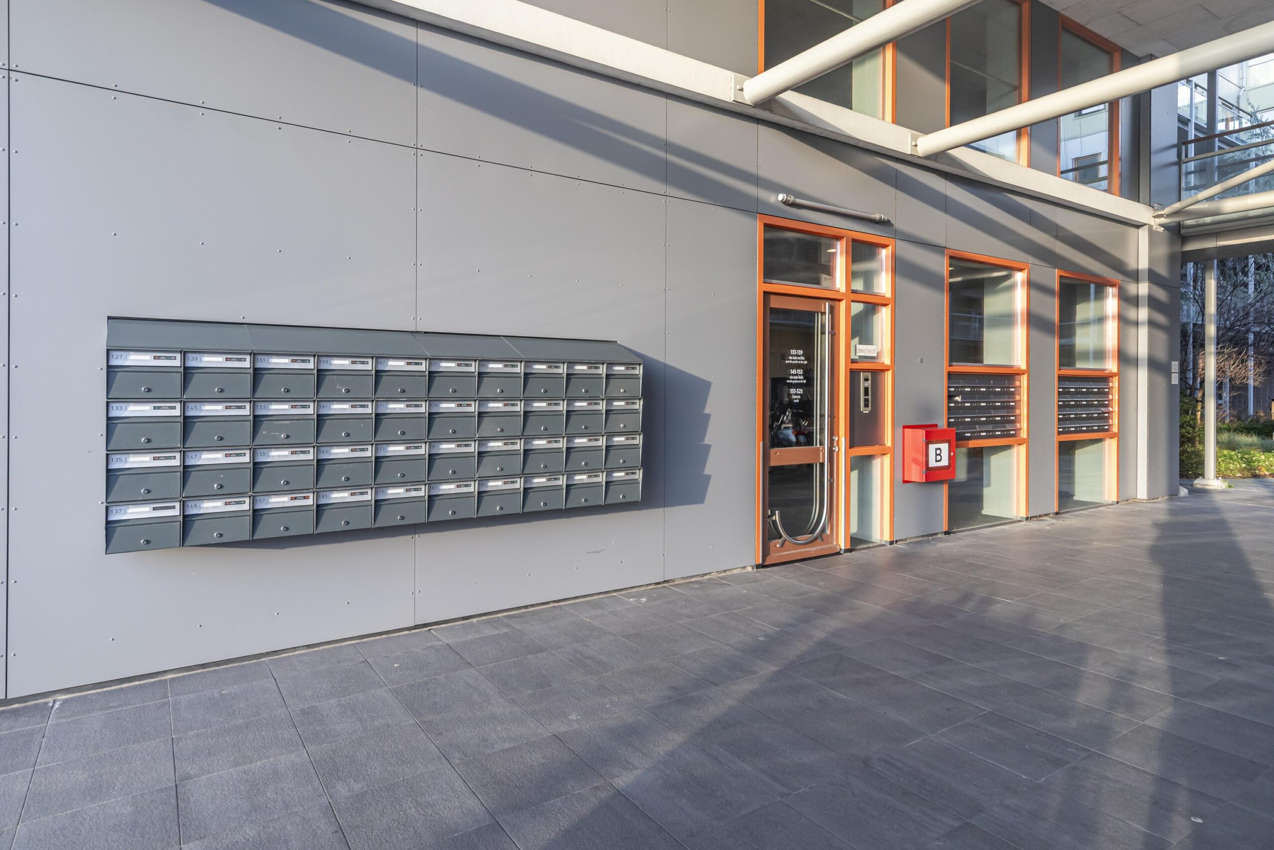 Je bereikt de entree van de woning via de gemeenschappelijke binnentuin. De hal biedt toegang tot alle vertrekken in het appartement. Aan de voorzijde bevindt zich een ruime slaapkamer met internetaansluiting. De inpandige berging herbergt de aansluitingen voor de wasmachine en de mechanische ventilatie unit. Daarnaast vind je hier ook de meterkast met stadsverwarming unit en groepenkast waar tevens nog voldoende ruimte is voor wat opslag.