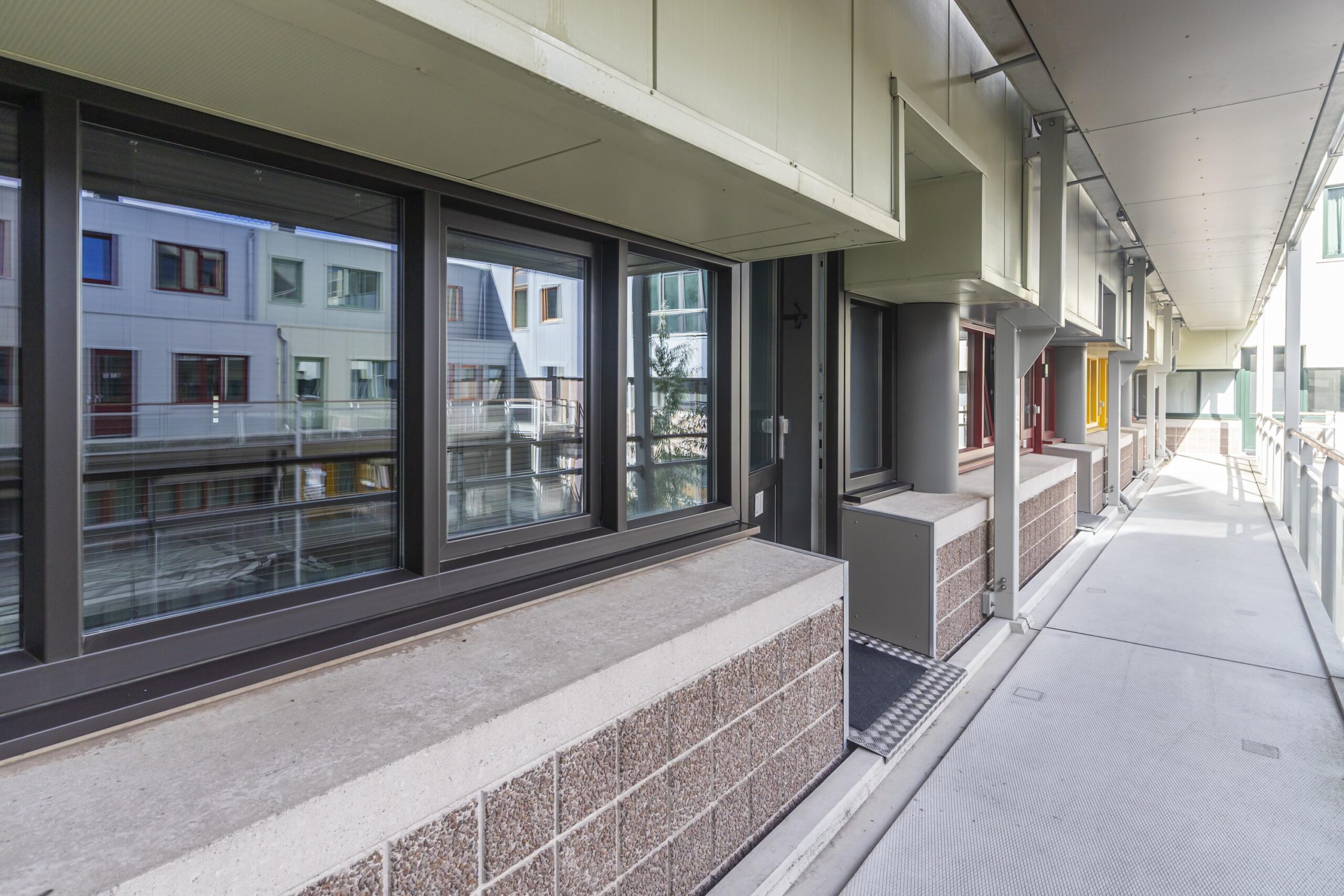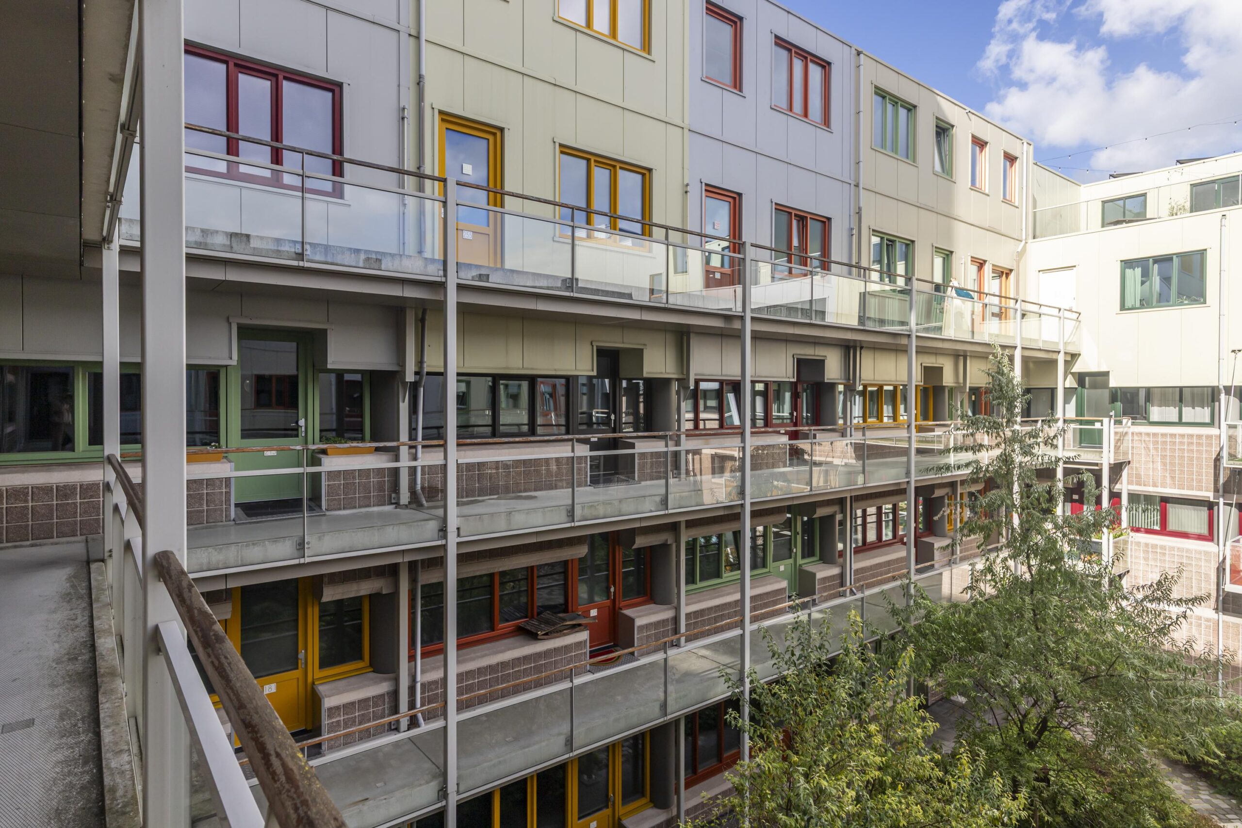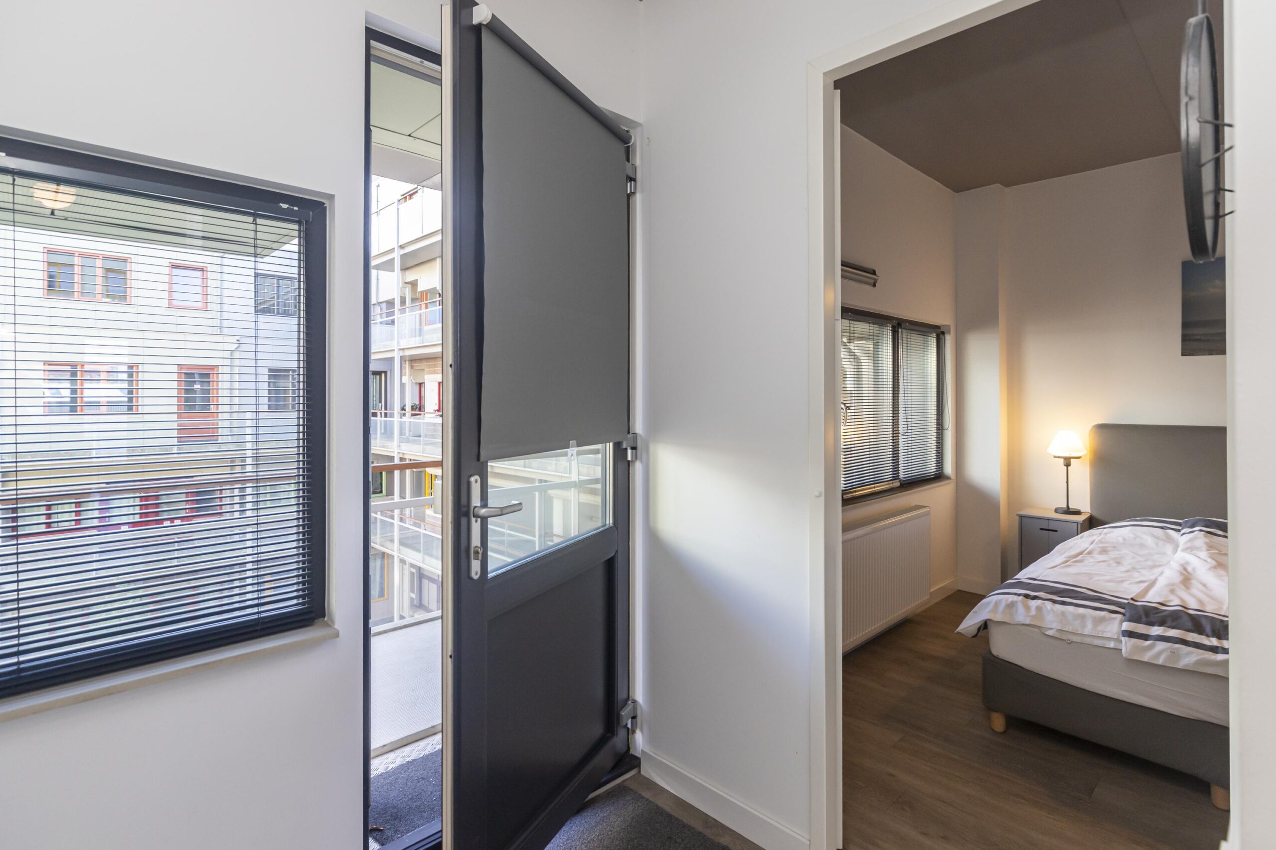Bij binnenkomst via de gezamenlijke, afgesloten entree bereik je de tweede verdieping met trap of lift. De galerij leidt je naar de voordeur van de woning, waar de hal toegang biedt tot alle vertrekken. Aan de voorzijde bevindt zich een ruime slaapkamer met internetaansluiting. De inpandige berging herbergt de aansluitingen voor de wasmachine en de mechanische ventilatie unit. Daarnaast vind je hier ook de meterkast met stadsverwarming unit en groepenkast.