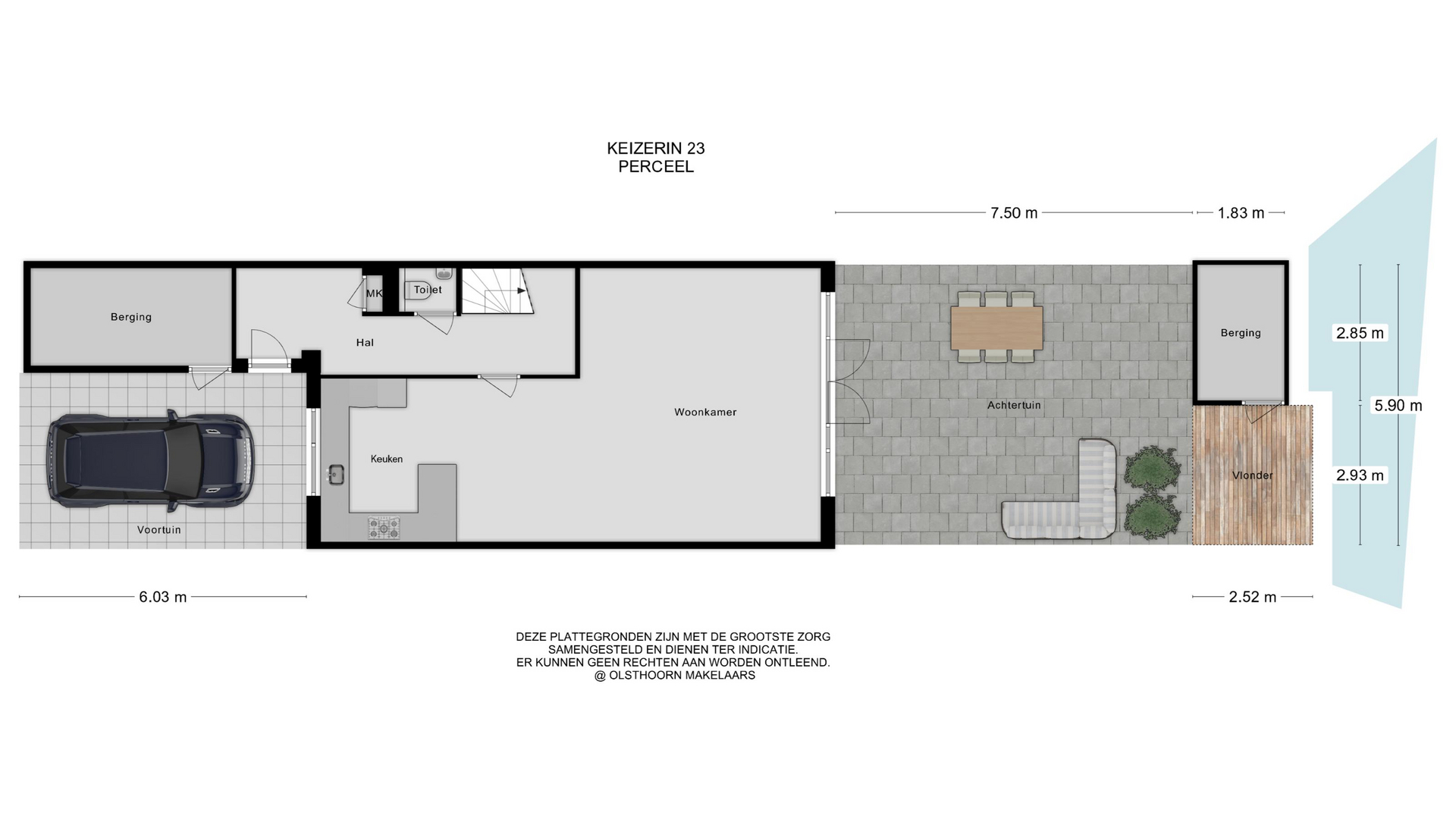 - Oppervlakte hoofdtuin 59 m2