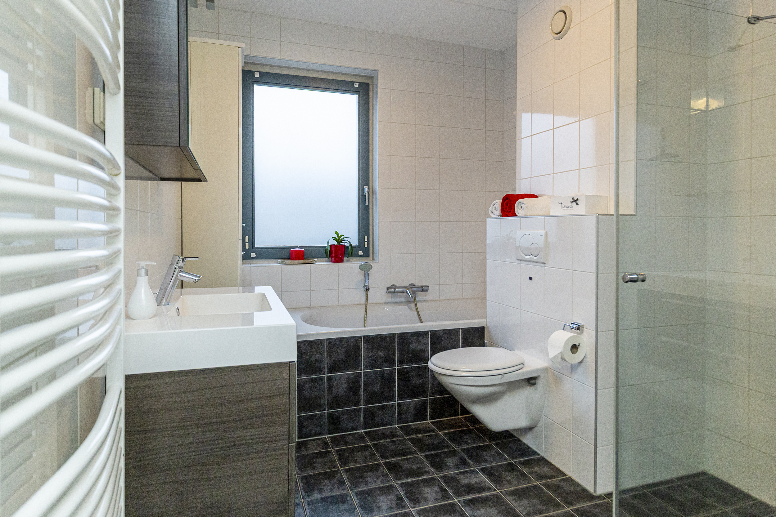 - Badkamervoorzieningen Toilet, wastafelmeubel, inloopdouche
