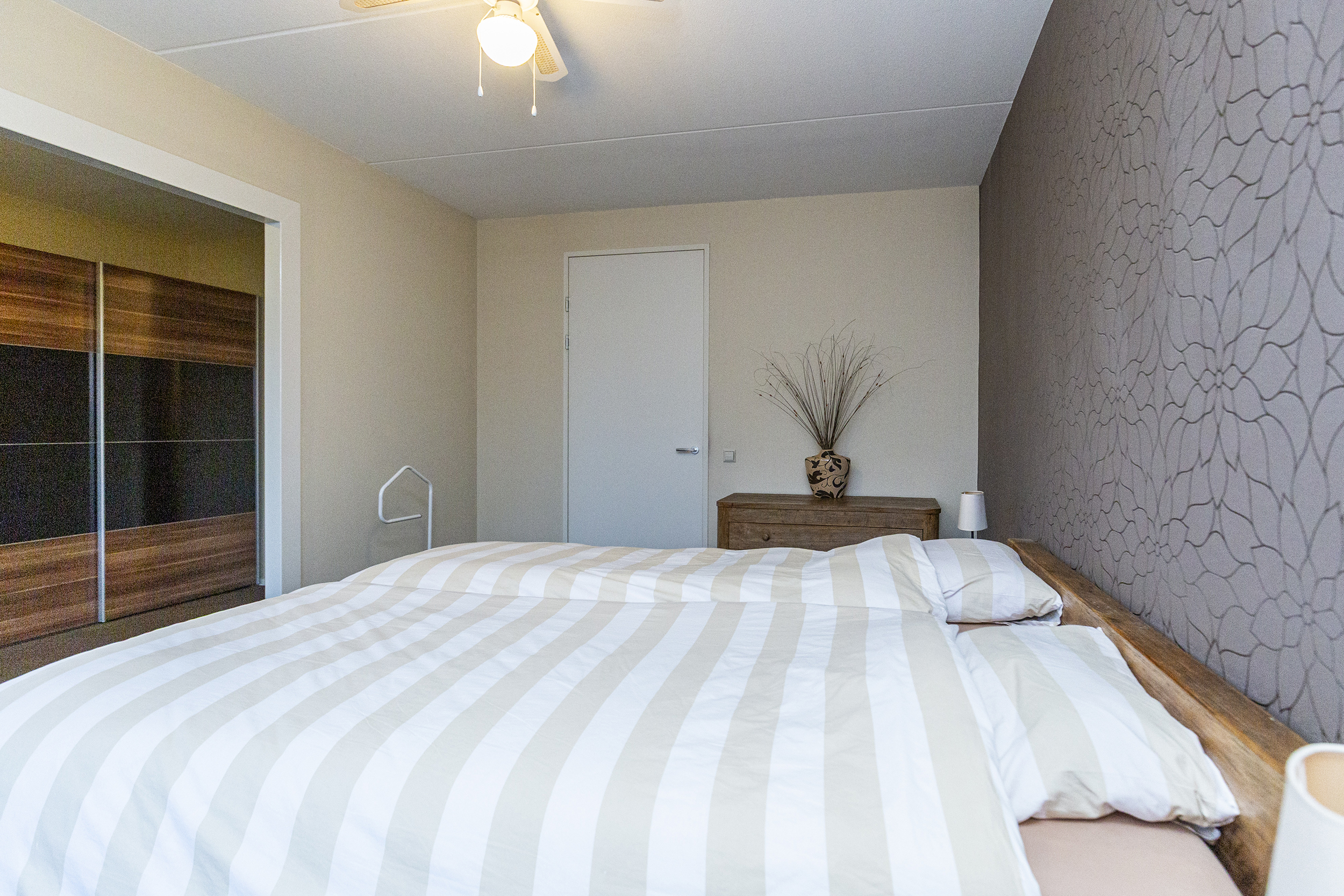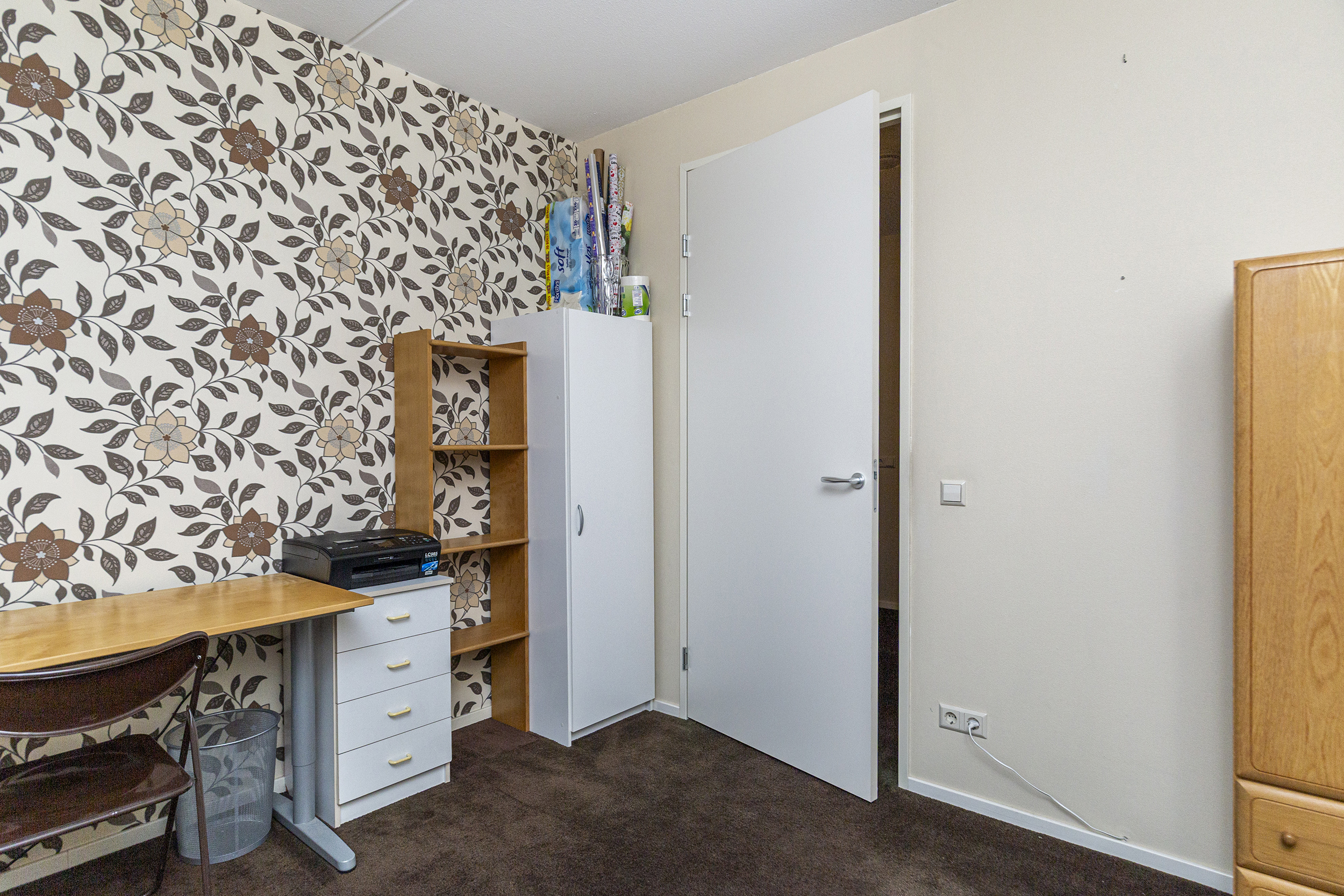 De ruime overloop met praktisch ingerichte trapkast, biedt toegang tot drie goed ingedeelde slaapkamers, waarvan 1 slaapkamer ingericht is als inloopkast, maar gemakkelijk weer als slaapkamer gemaakt kan worden. De nette, comfortabele badkamer is voorzien van een douche, bad, wastafelmeubel en een tweede toilet.