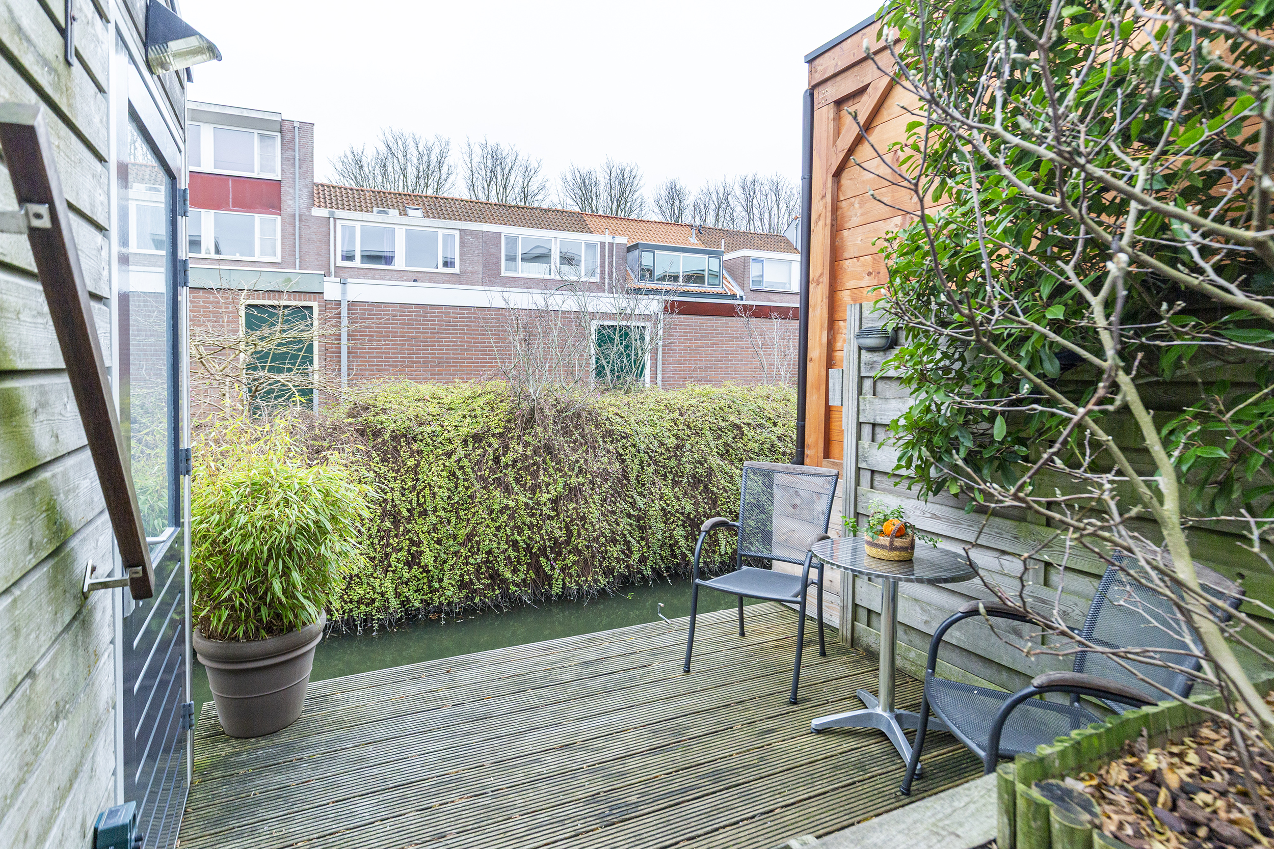 De mooi aangelegde tuin met een extra schuurtje en vlonder aan het water is op het zuiden gelegen.