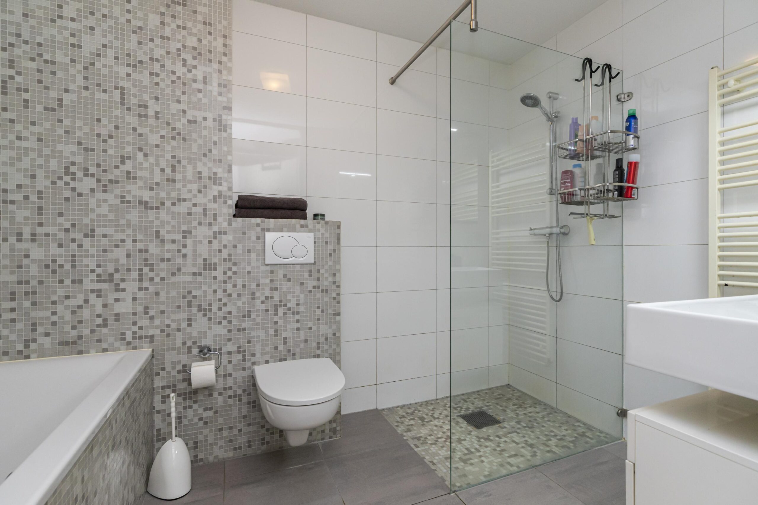 - Badkamervoorzieningen Ligbad, toilet, wastafelmeubel, inloopdouche