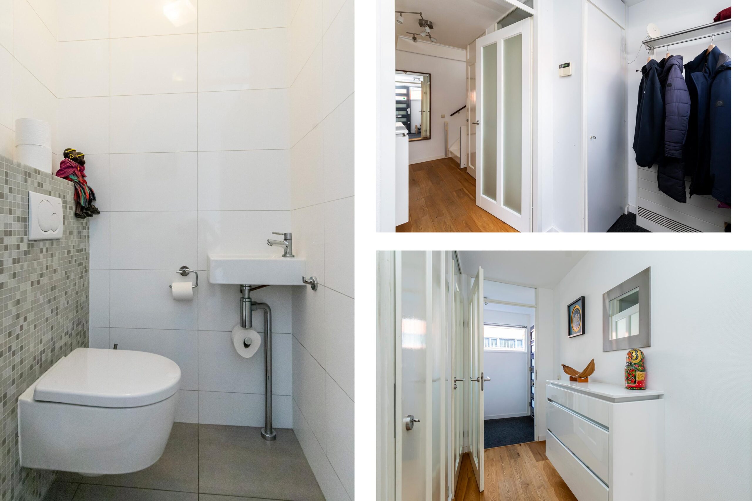 Parkeergelegenheid in de voortuin. Middels de overdekte entree bereik je de hal met meterkast, trapkast en een wandcloset met fontein. De begane grond is afgewerkt met een massief eiken vloer en glasvliesbehang, wat zorgt voor een verzorgde uitstraling.