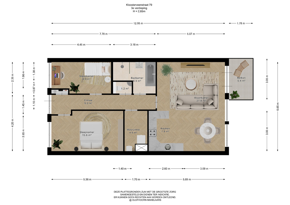 • 3 kamers (waarvan 2 slaapkamers),