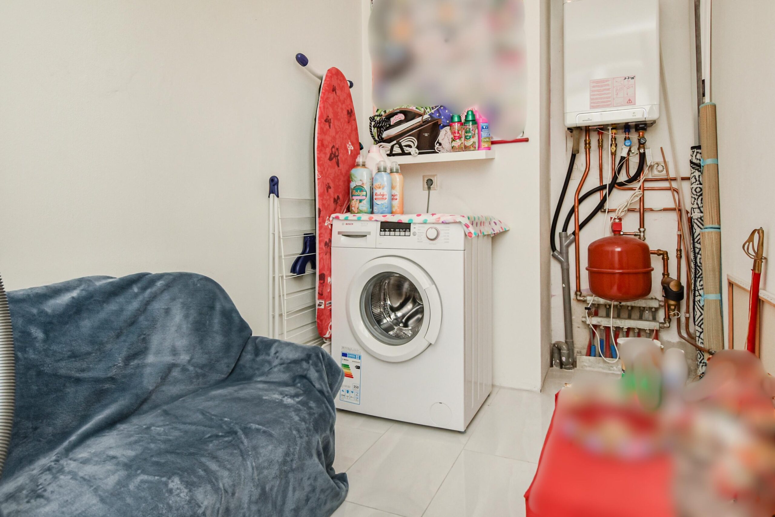 Vanuit de hal bereik je ook de ruime berging, waar zich de opstelplaats voor de wasmachine bevindt en waar je voldoende extra bergruimte hebt.