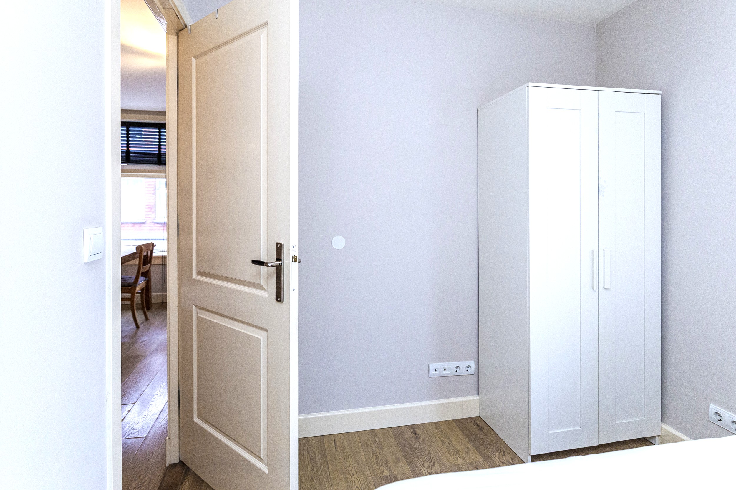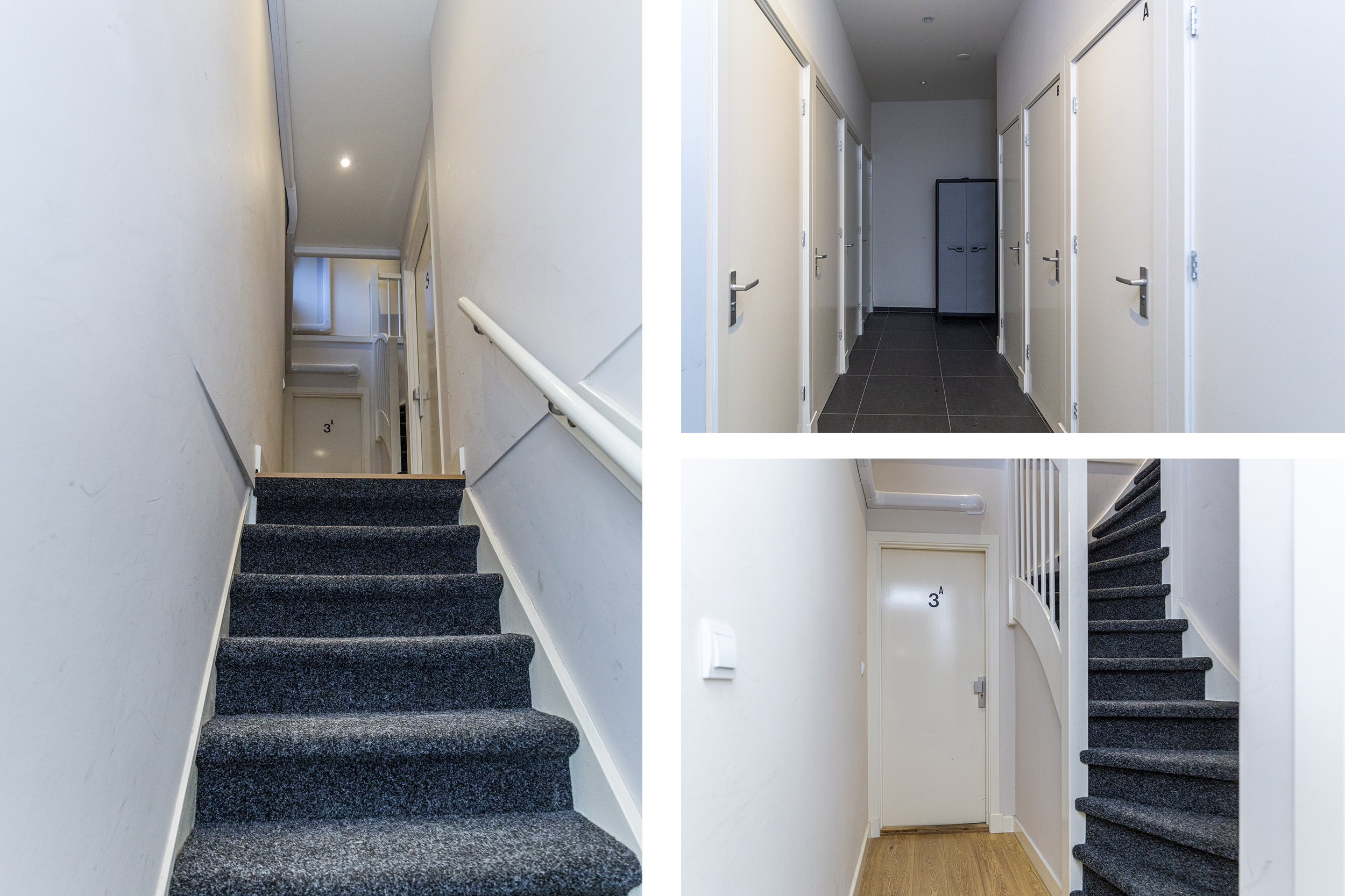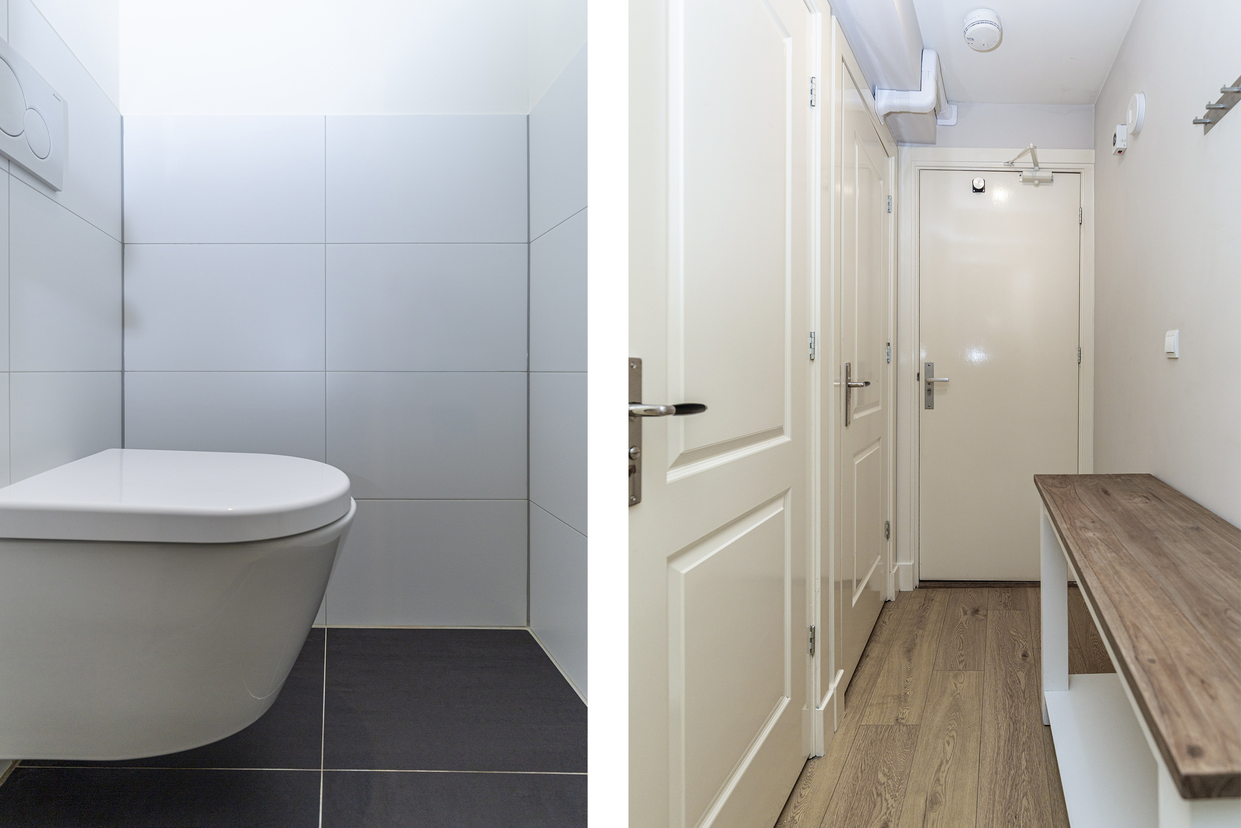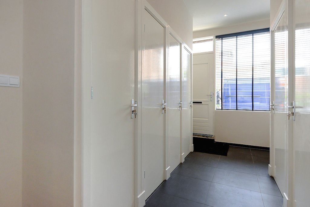 Via de gezamenlijke entree bereik je het appartement op de eerste verdieping. De hal vormt het centrale punt van de woning en biedt toegang tot alle vertrekken. Er is een separaat toilet en een praktische vaste kast met aansluitingen voor de wasmachine en extra bergruimte.
