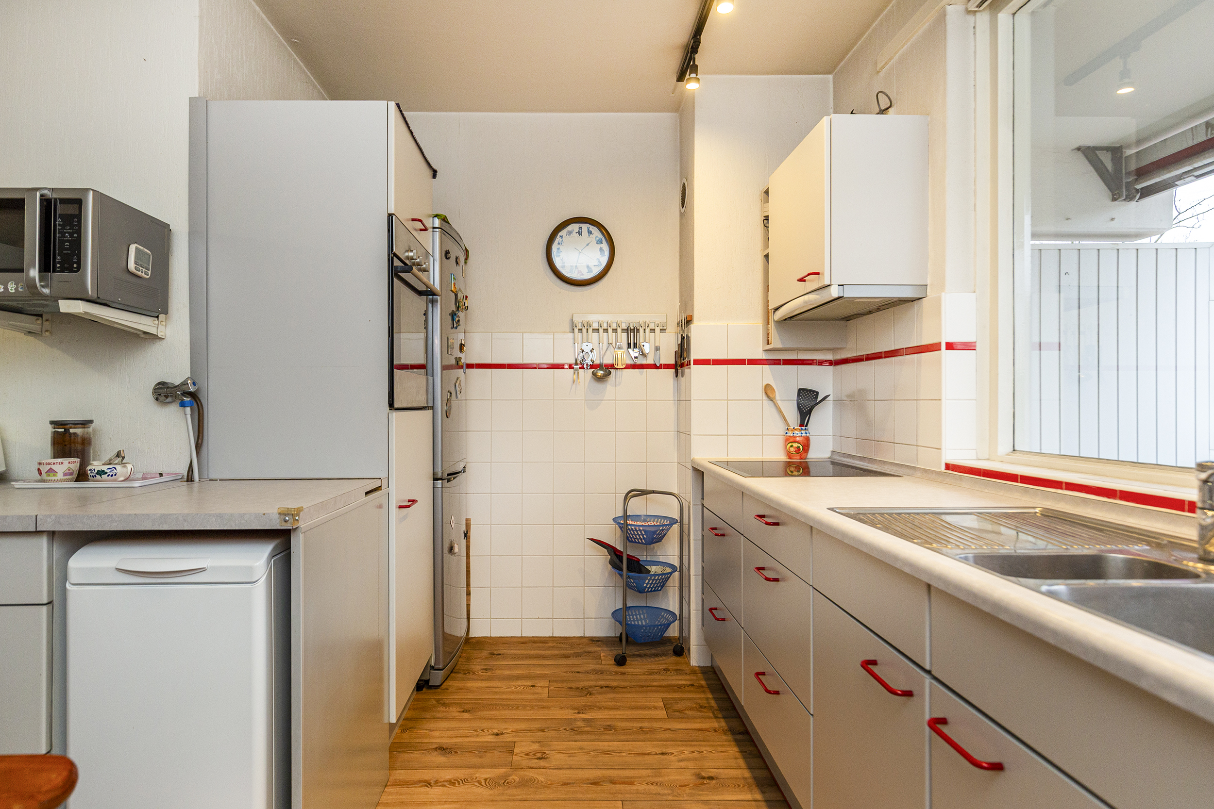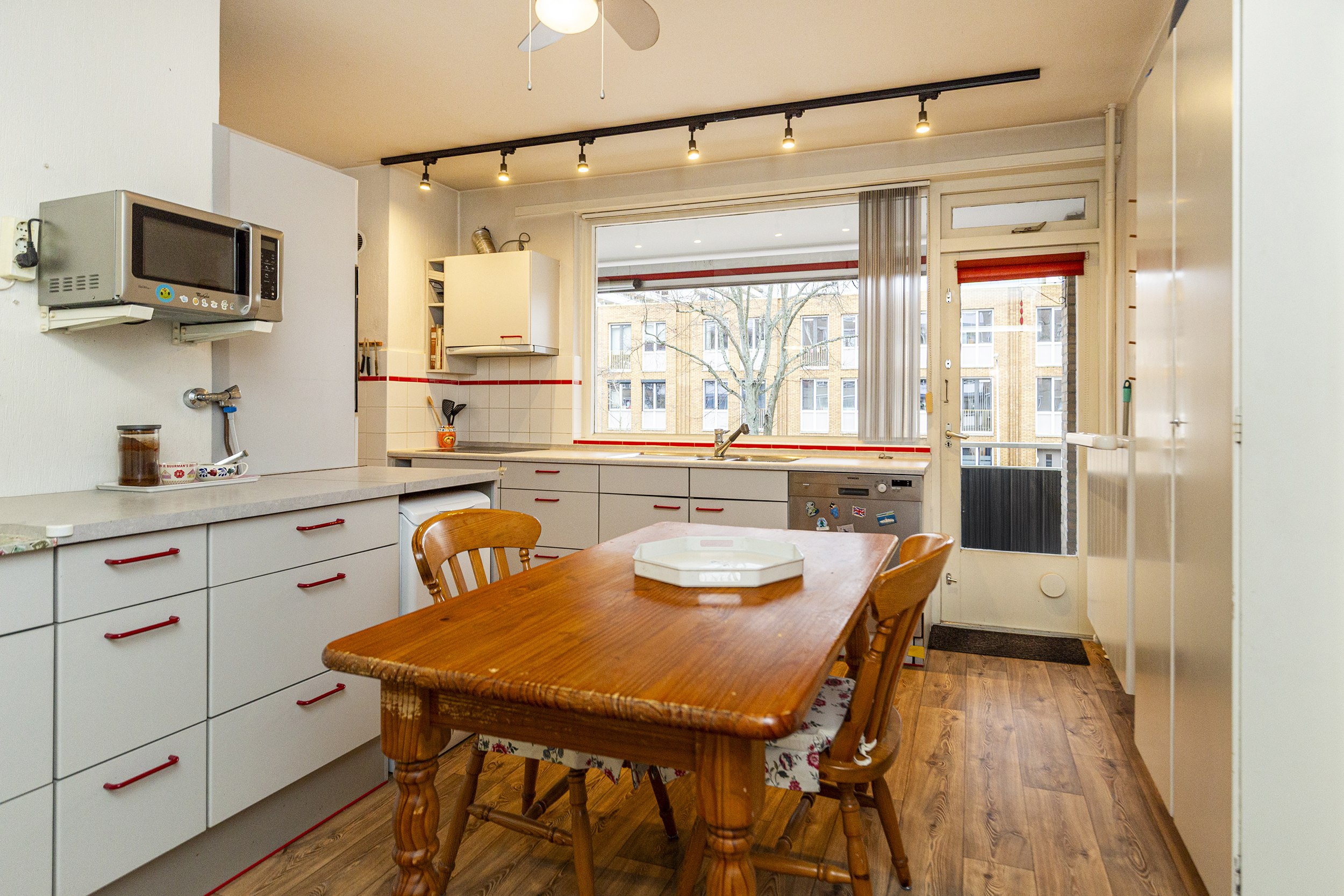 De keuen is voorzien van een vaatwasser, een elektrische kookplaat met 4 zones, een koel/vriescombi, een oven en de opstelplaats van de wasmachine. Vanuit de keuken is er ook toegang tot het zonnige balkon.
