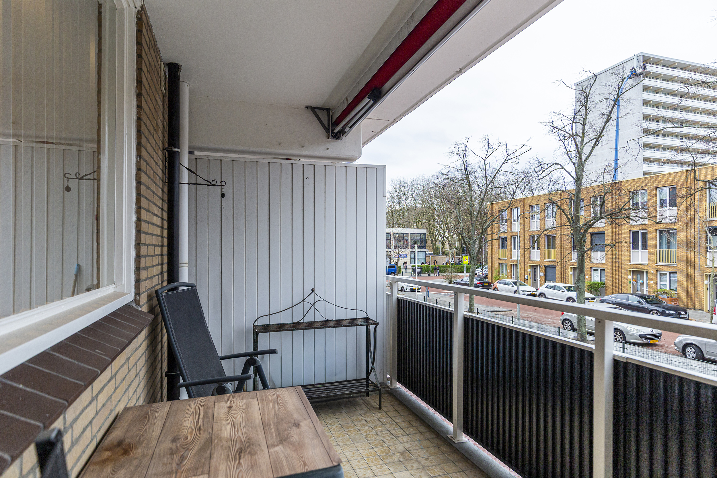 De woonkamer en het balkon hebben beiden de beschikking over een elektrisch zonnescherm.