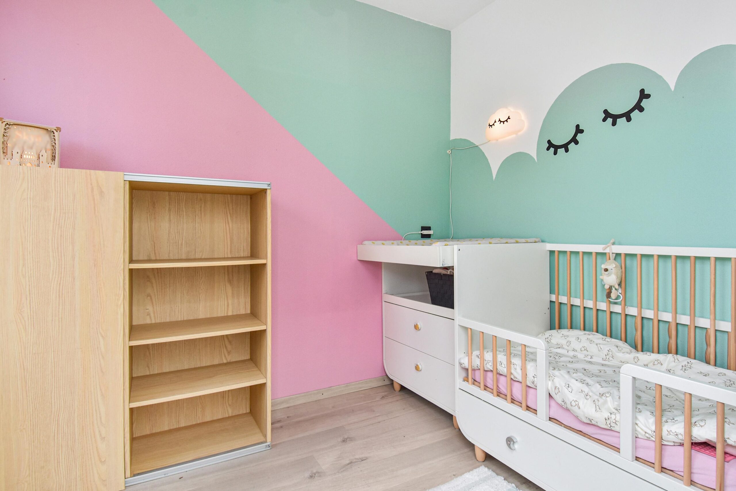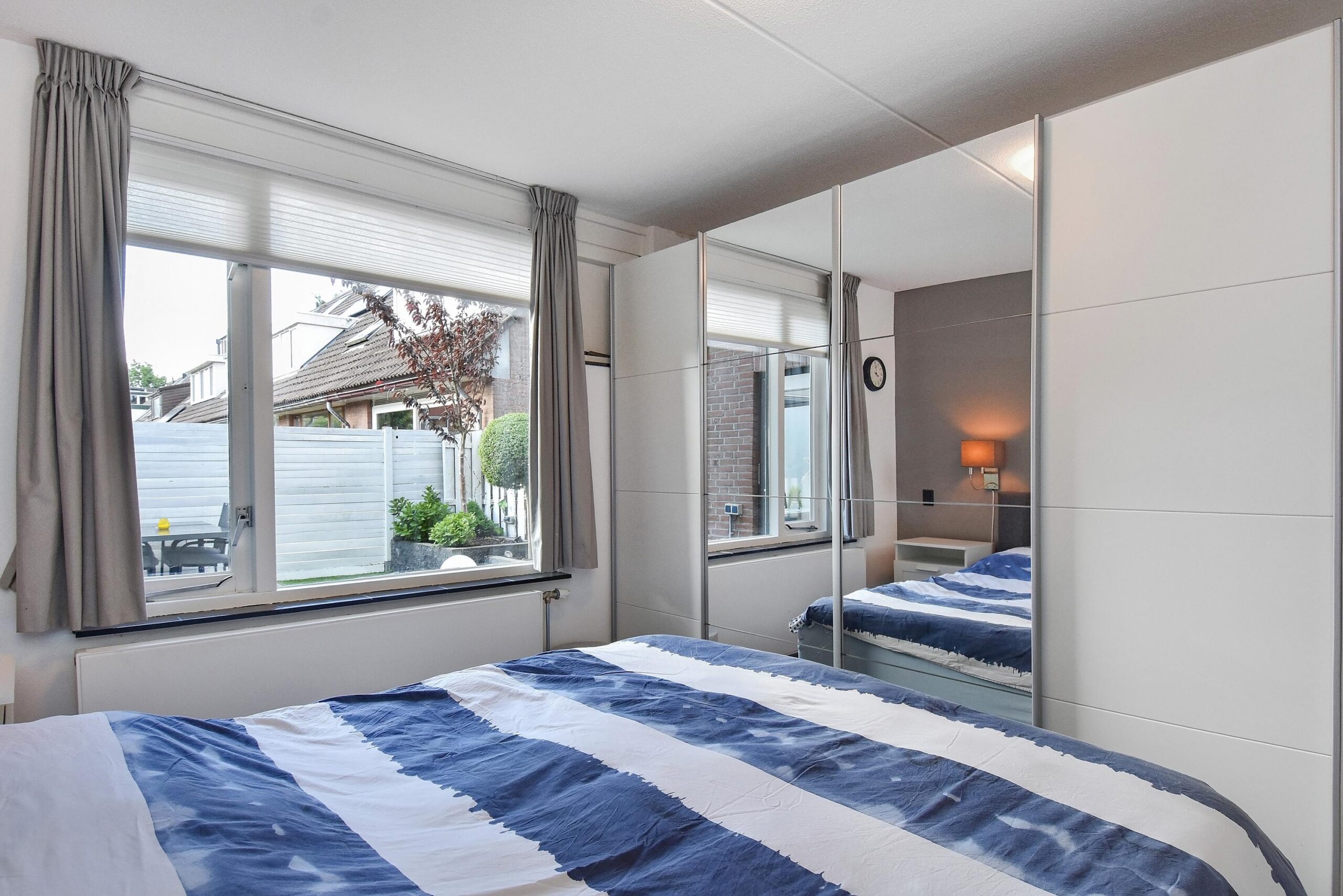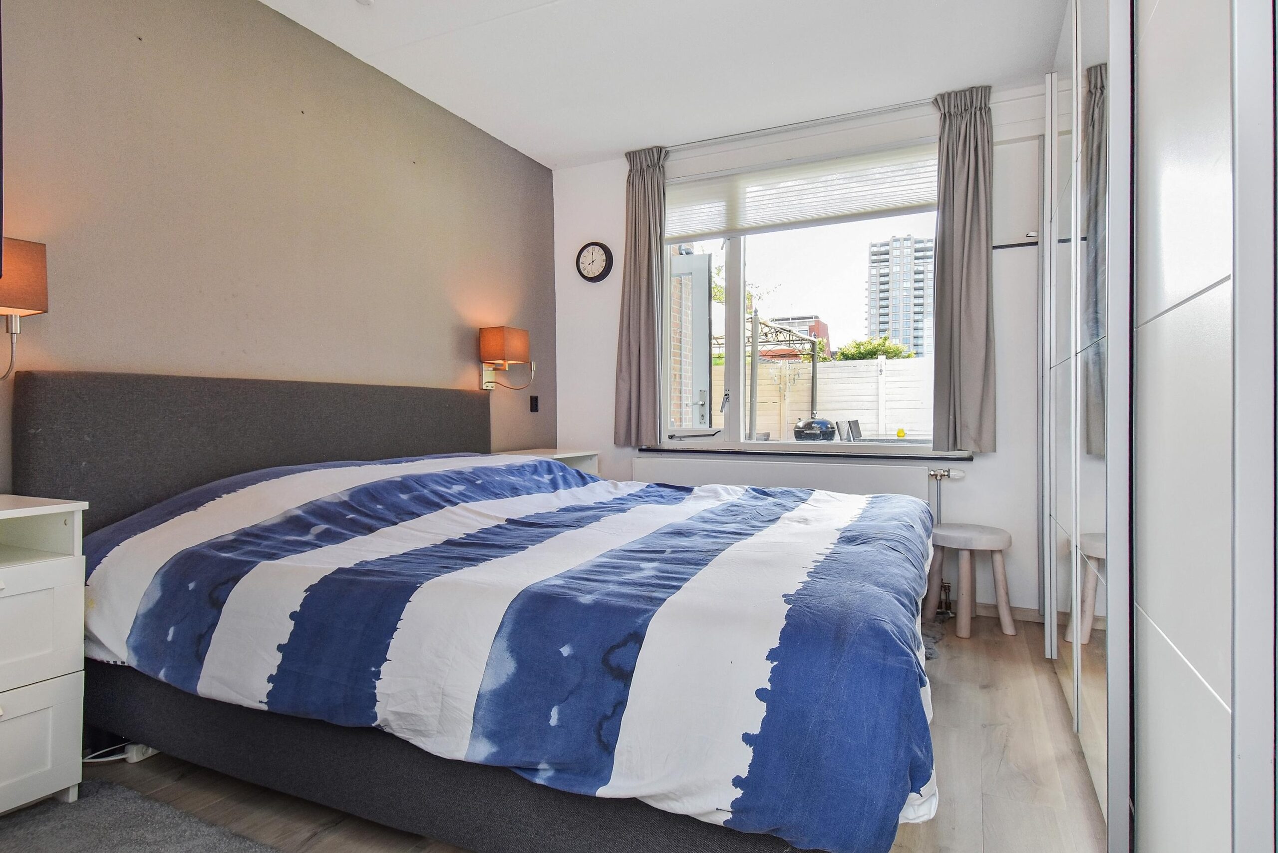 Achterin de woning ligt de royale masterbedroom. Hier is genoeg plek voor een groot tweepersoonsbed en een flinke kledingkast. Het raam biedt uitzicht op de achtertuin, wat zorgt voor een rustige sfeer.