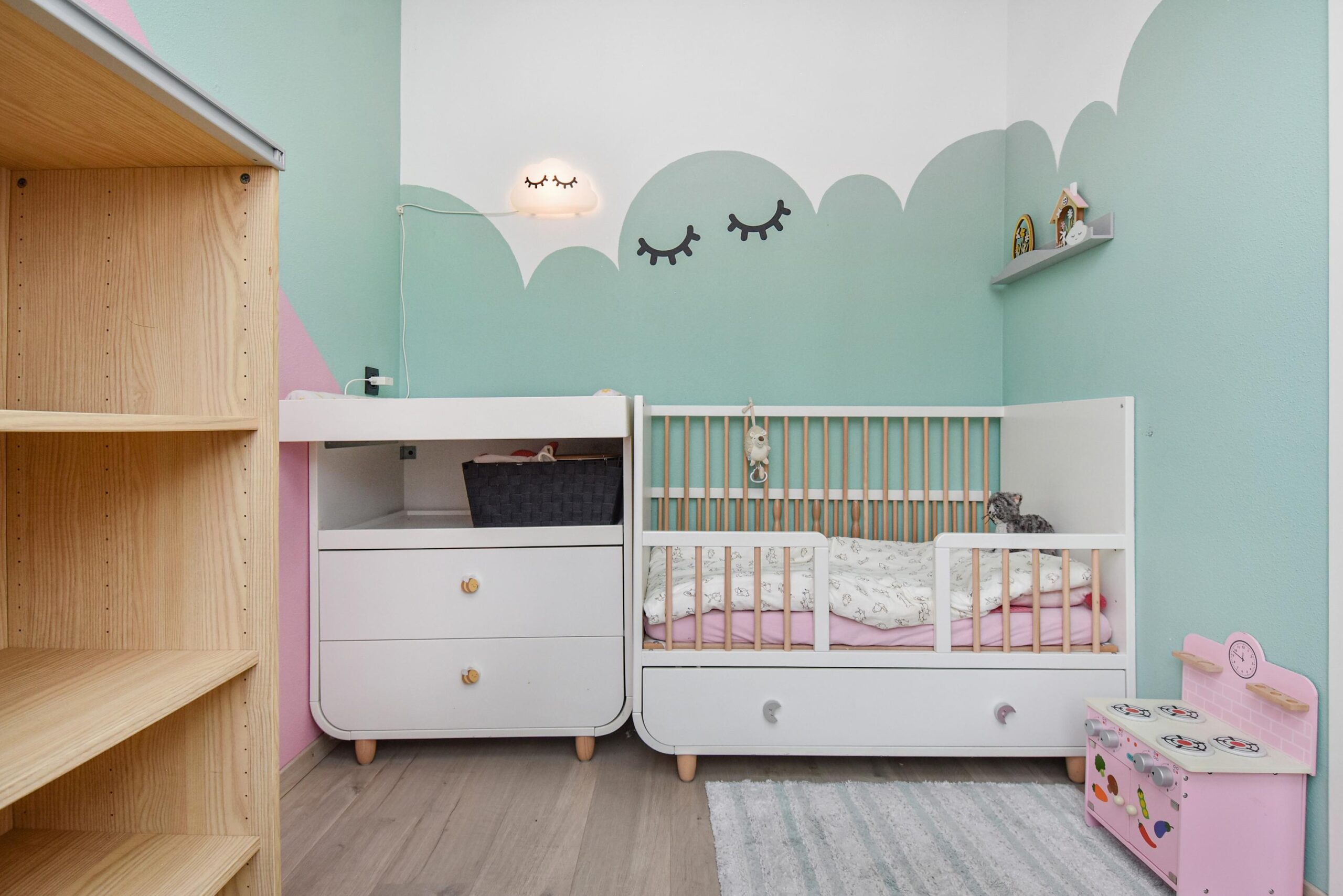 Via de voortuin en de entree stap je binnen in een centrale hal die meteen toegang biedt tot de verschillende vertrekken. Aan de linkerzijde vind je de 1e slaapkamer, ideaal als werkkamer, kinderkamer of logeerkamer. Ook de meterkast is netjes weggewerkt in de hal.