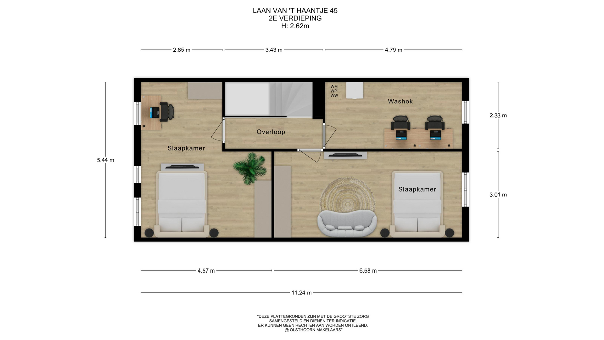Overloop met toegang tot alle ruimtes. 2 slaapkamers. Technische ruimte met o.a. de w.t.w en de warmtepomp en de opstelplaats voor de wasmachine aansluiting en droger. De gehele verdieping is voorzien van een pvc vloer met vloerverwarming en koeling.