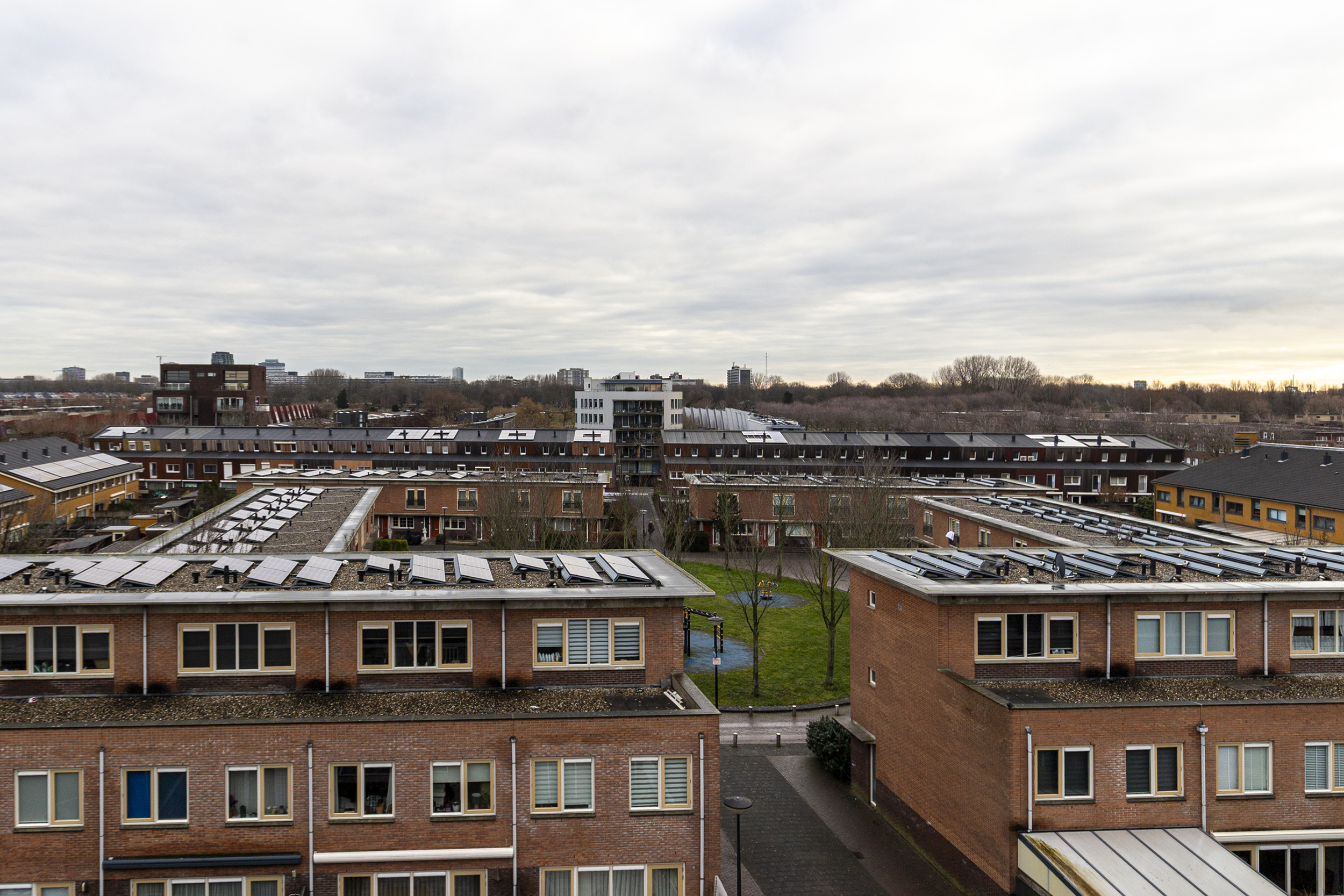Hier woon je op de vierde verdieping, helemaal aan het einde van de galerij. Rustig gelegen, maar met alle dagelijkse voorzieningen dichtbij. Wateringse Veld is ruim en groen opgezet, met singels, brede groenstroken en fijne wandelroutes. Supermarkten, scholen en kinderopvang bereik je in een paar minuten. Tram en bus liggen om de hoek, zodat je snel richting het centrum en het station reist. Op de fiets sta je zo in Rijswijk en in de parken rondom de wijk. Ook met de auto zit je zo op de A4, A12 of A13.