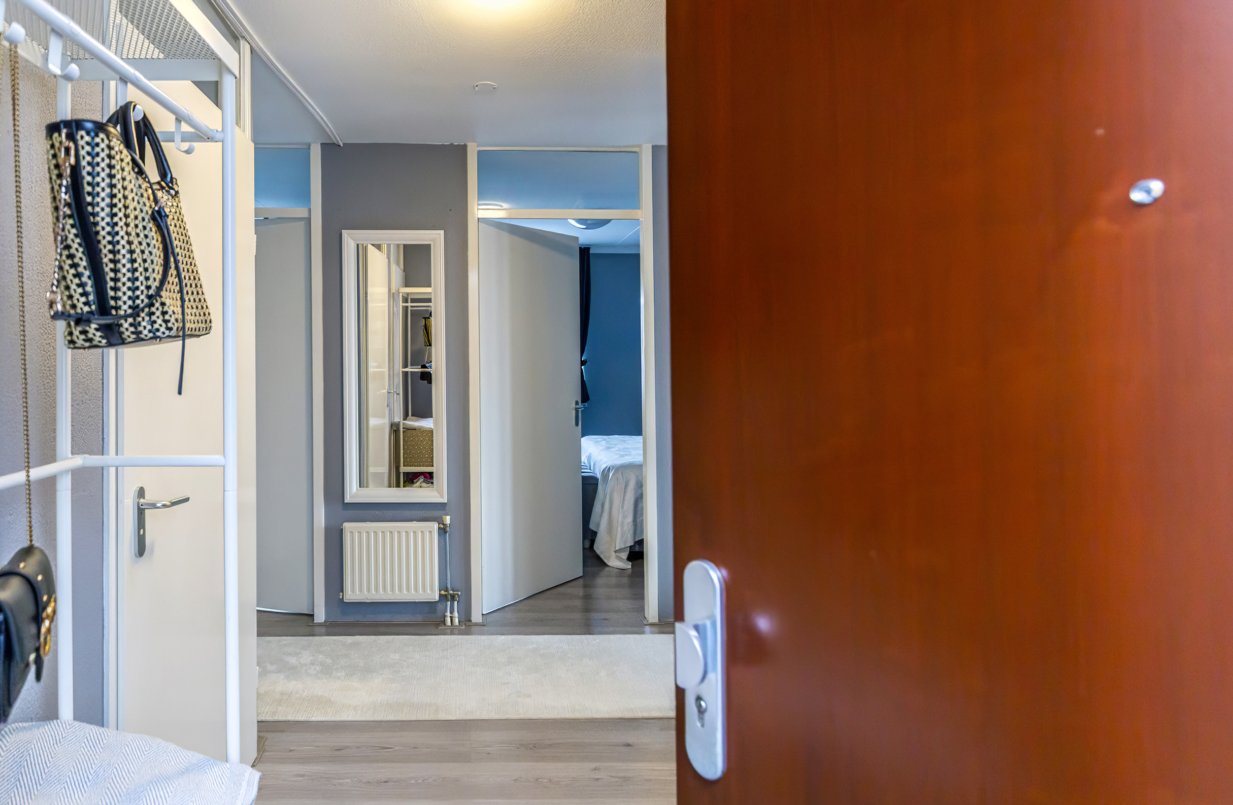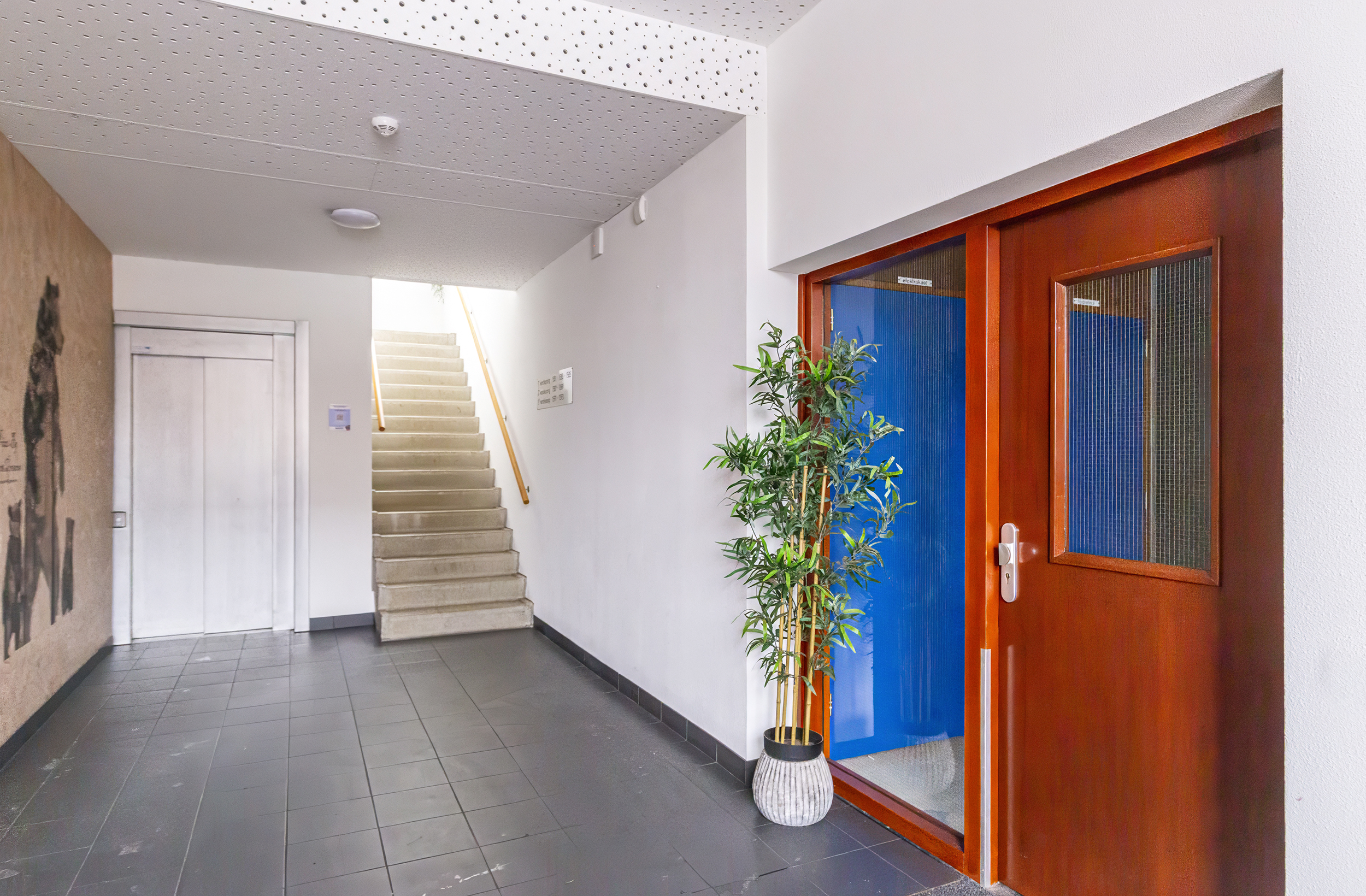Via de centrale entree met bellentableau en brievenbussen bereik je met de trap of de lift de derde verdieping.