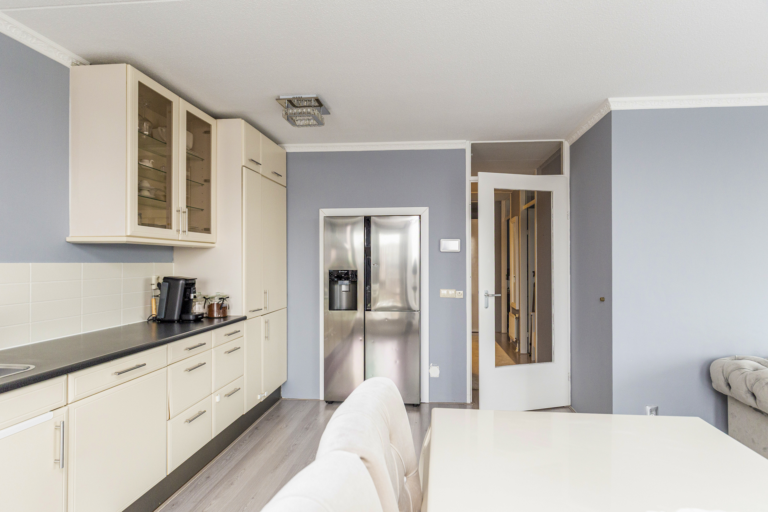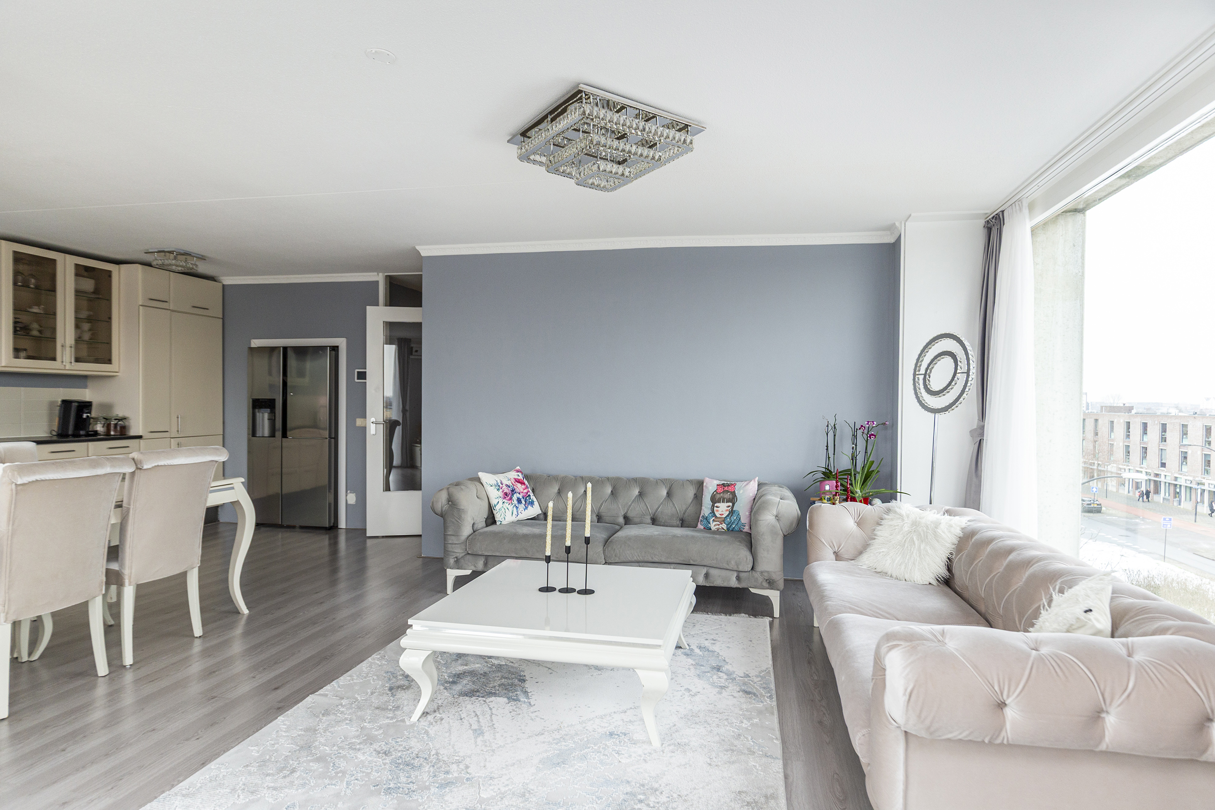 De ruime woonkamer is voorzien van grote ramen die voor veel daglicht zorgen. Vanuit zowel de keuken als de woonkamer stap je zo op het zonnige balkon (zuidoosten) waar je kunt genieten van het weidse, vrije uitzicht.