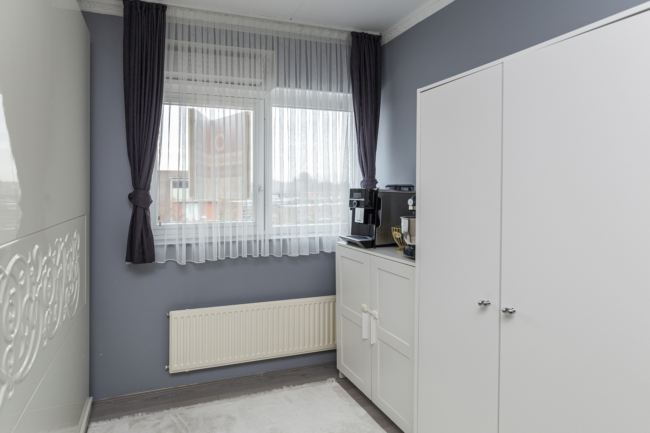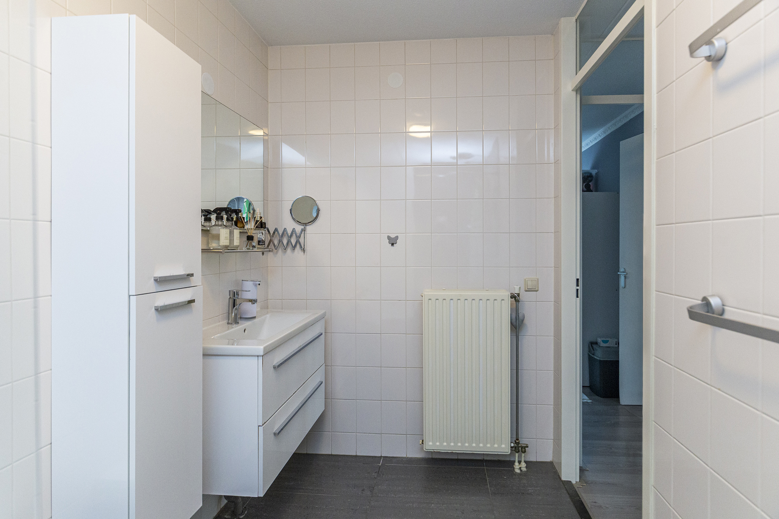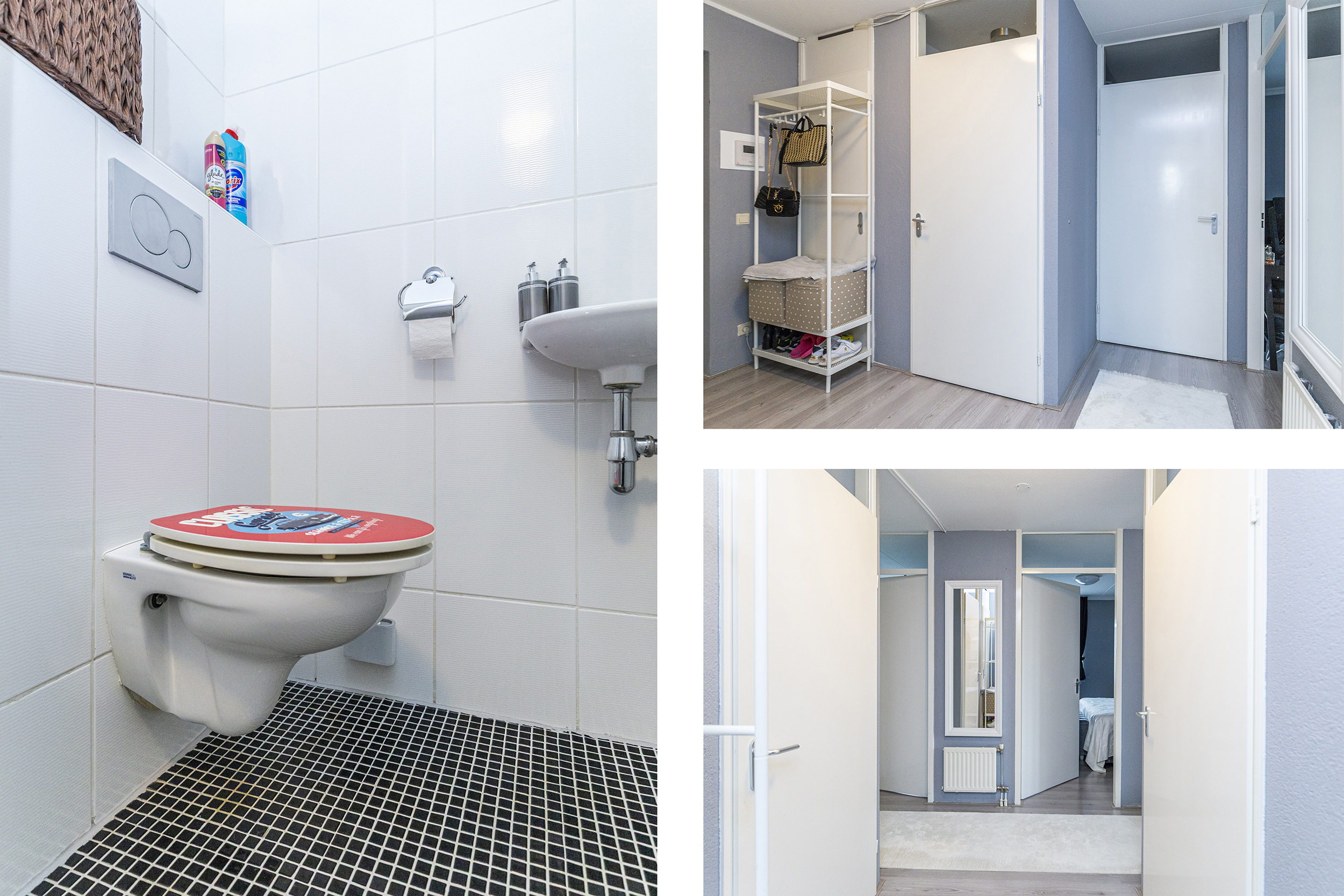 In de hal van de woning bevindt zich een hangend toilet inclusief een fonteintje. In de kast vind je de aansluitingen voor de wasmachine, de CV-ketel en de mechanische ventilatie. De open keuken is modern uitgerust met een 4-pits gaskookplaat, RVS afzuigkap, oven, koel-/vriescombinatie en vaatwasser.