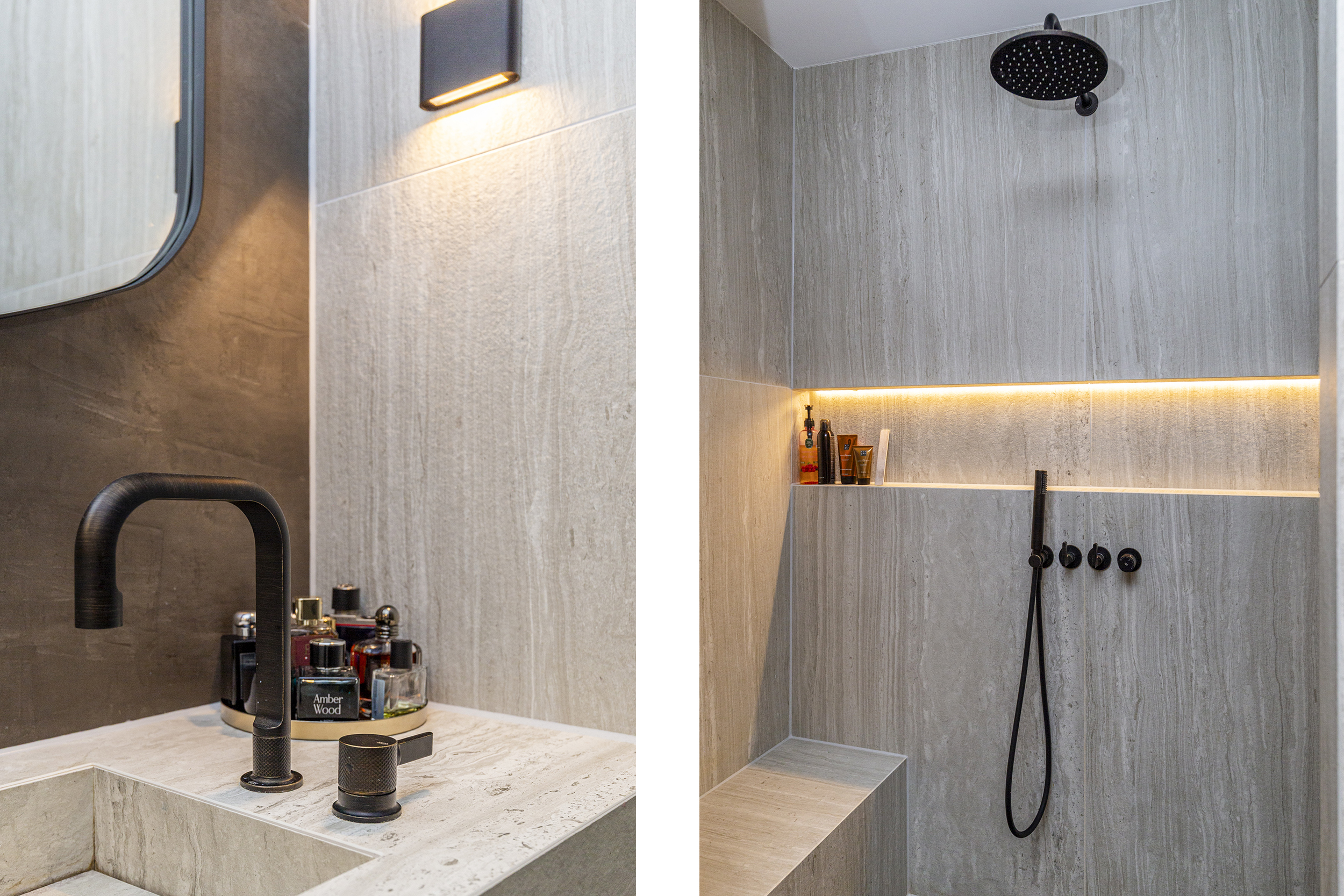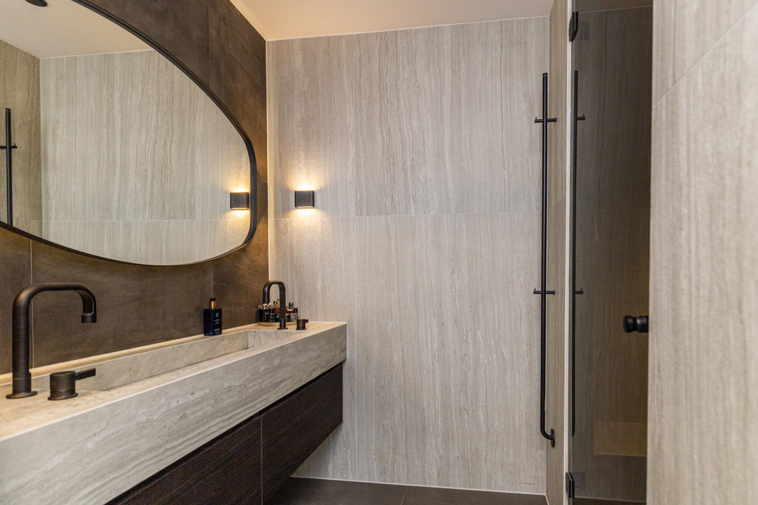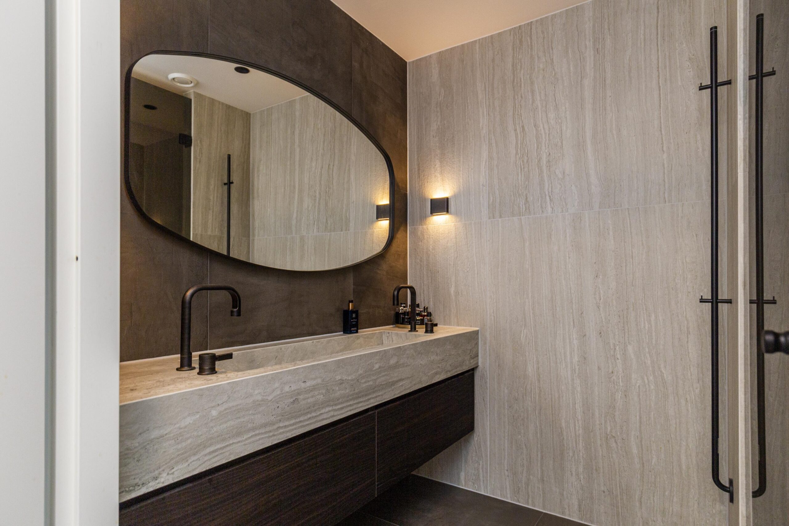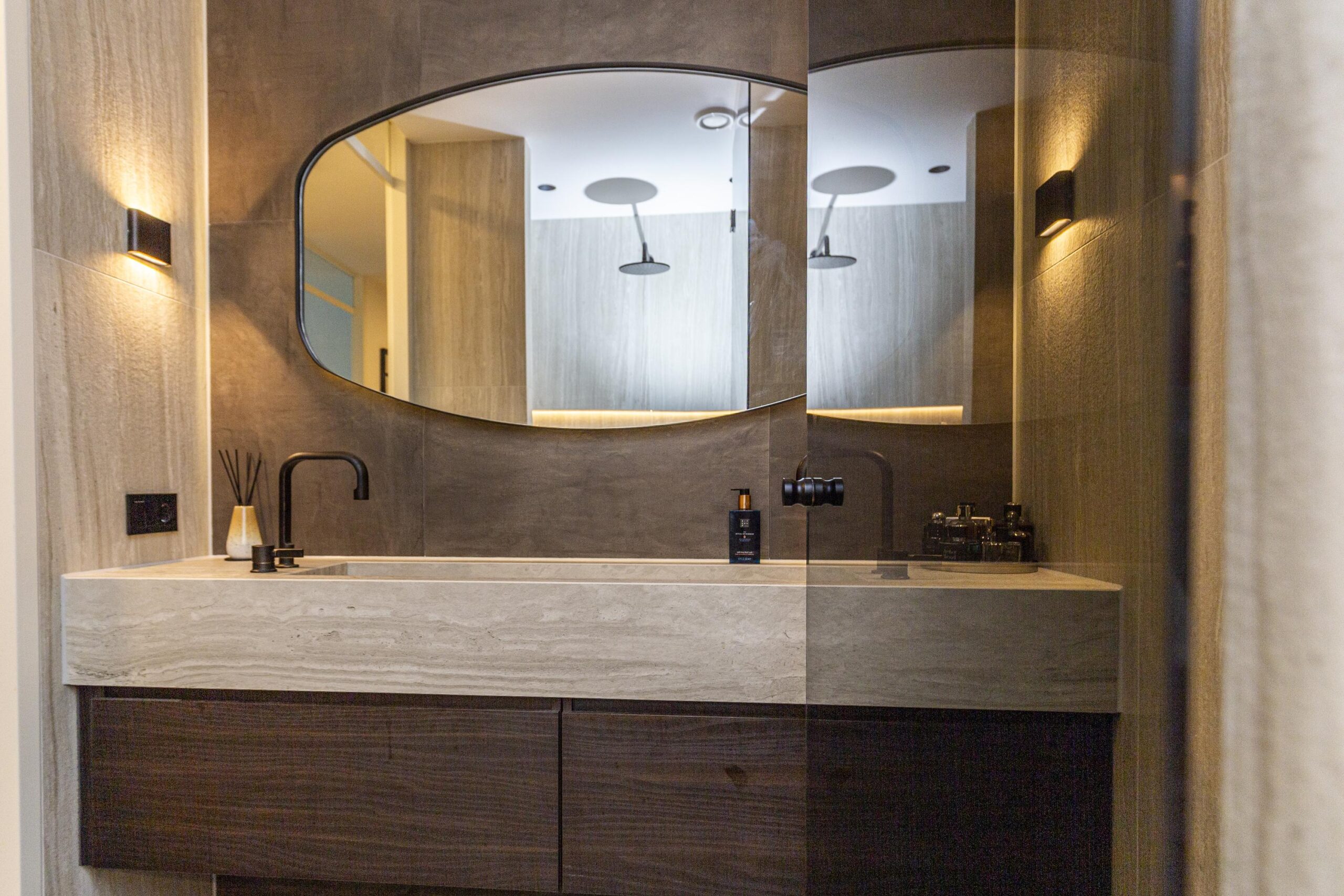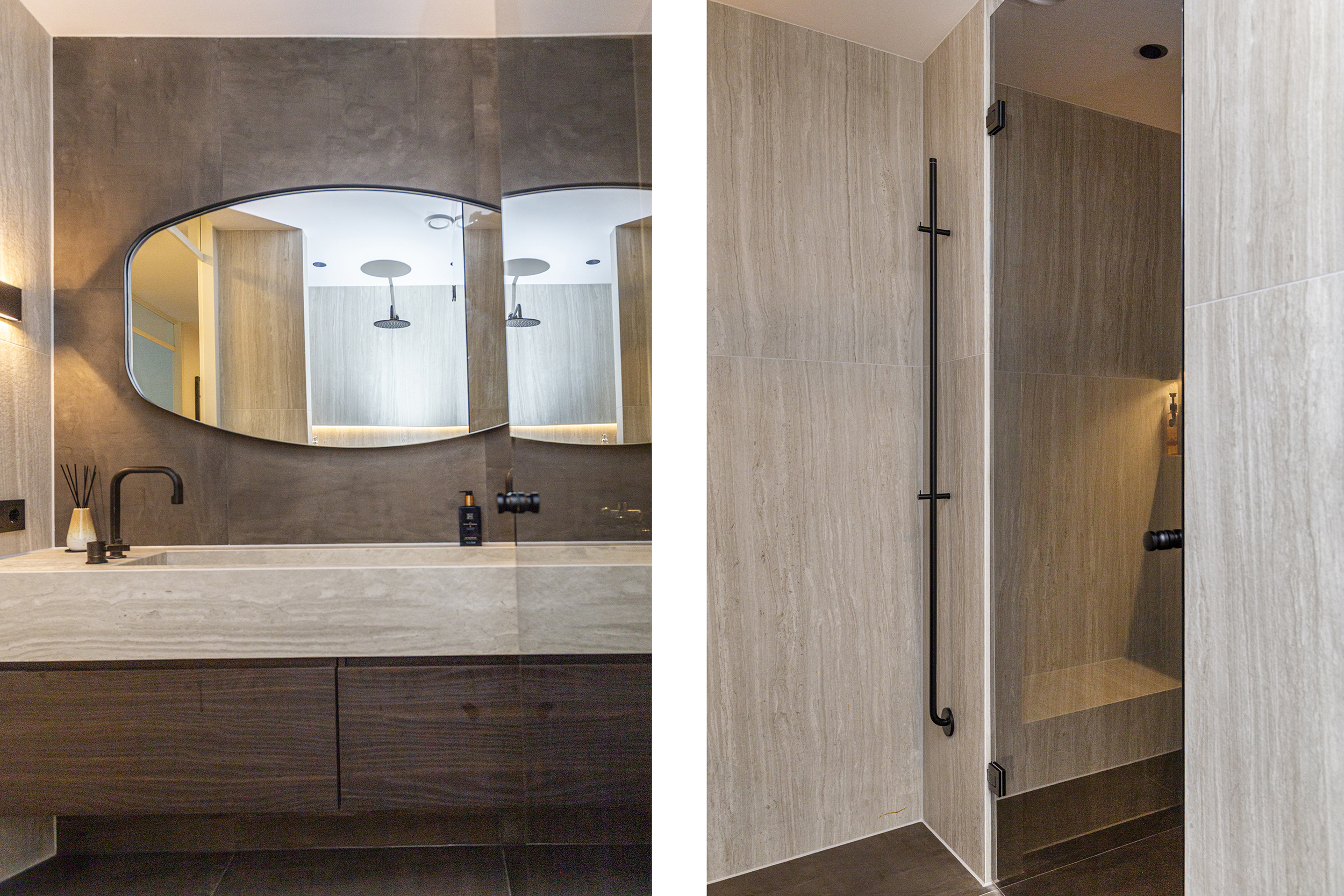 - Badkamervoorzieningen Dubbele wastafel, wastafelmeubel, inloopdouche