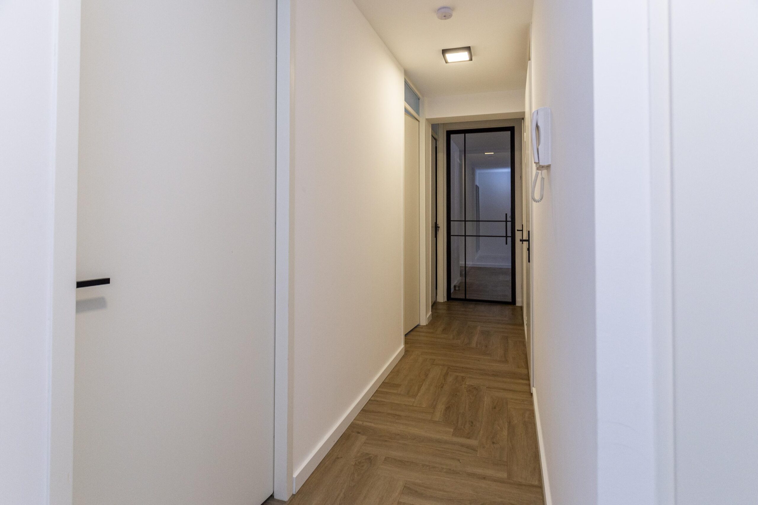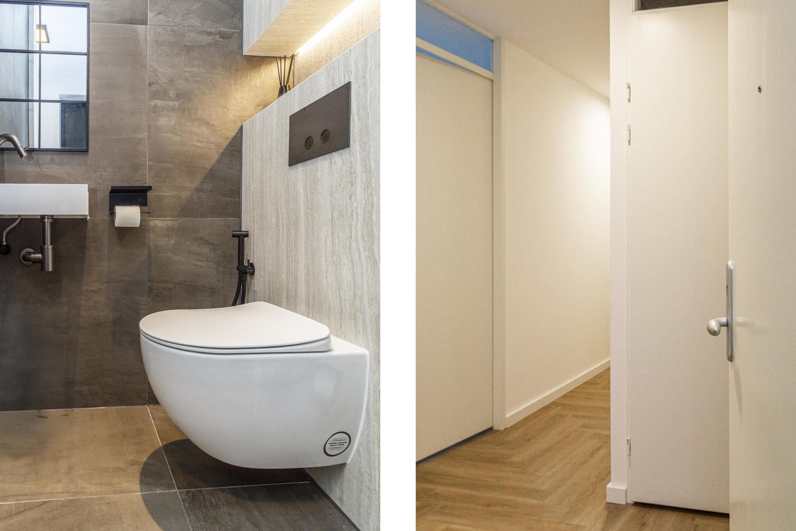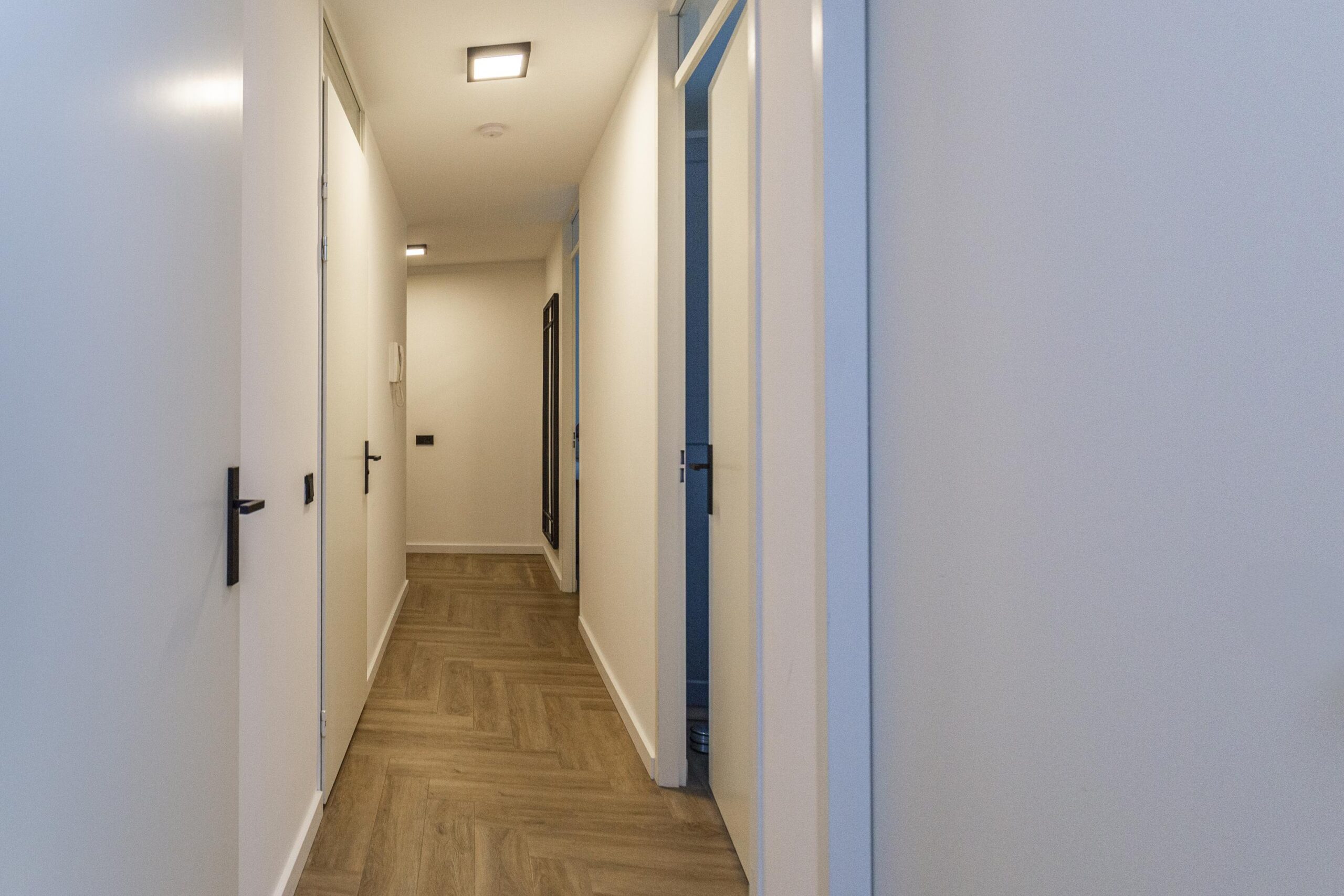 Vanuit de hal betreedt u de woning, waar direct aan de rechterzijde de meterkast is. De toiletruimte is stijlvol afgewerkt en beschikt over een fonteintje. De woning is voorzien van maar liefst drie slaapkamers, waardoor er genoeg ruimte is voor het gezin of een thuiswerkplek. Alle slaapkamers zijn voorzien van UTP-netwerkaansluitingen. De luxe badkamer is een waar pronkstuk, met een wastafelmeubel, hoogwaardige designerkranen van het merk Gessi, een inloopdouche en een designerhanddoekradiator. Dit geeft de badkamer een chique uitstraling. De technische ruimte biedt ruimte voor de wasmachine en het mechanische ventilatiesysteem.
