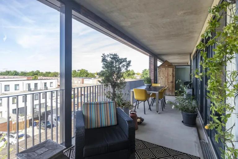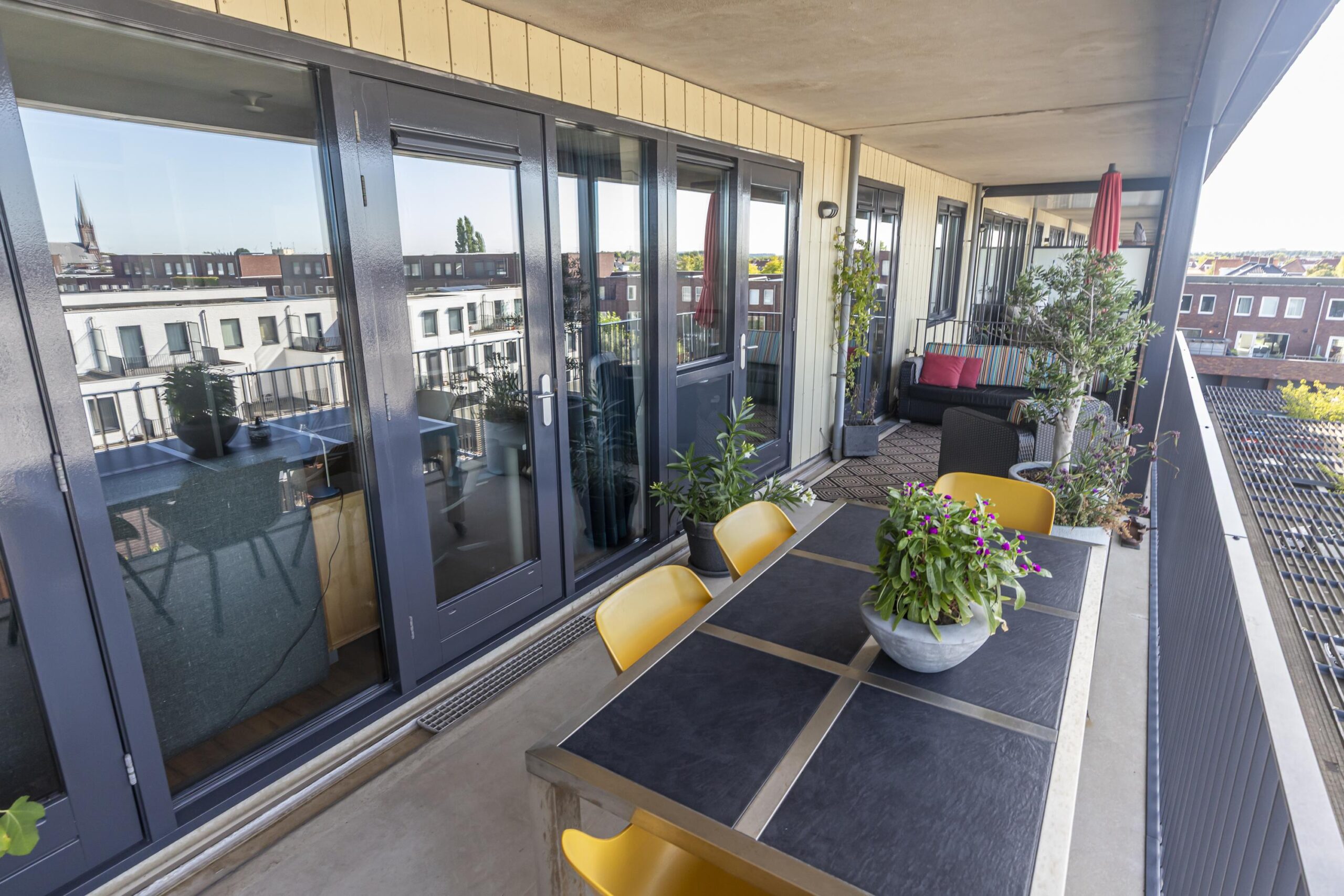 Het balkon op het zuidwesten gelegen is de absolute eyecatcher: ruim, breed en direct bereikbaar vanuit zowel de woonkamer, keuken als slaapkamer. Hier heb je plaats voor een eettafel én een loungeset, zodat je volop kunt genieten van het buitenleven. Dankzij de gunstige ligging zit je hier beschut en rustig. Dit voelt als een verlengstuk van je woning waar je elk seizoen plezier van hebt.