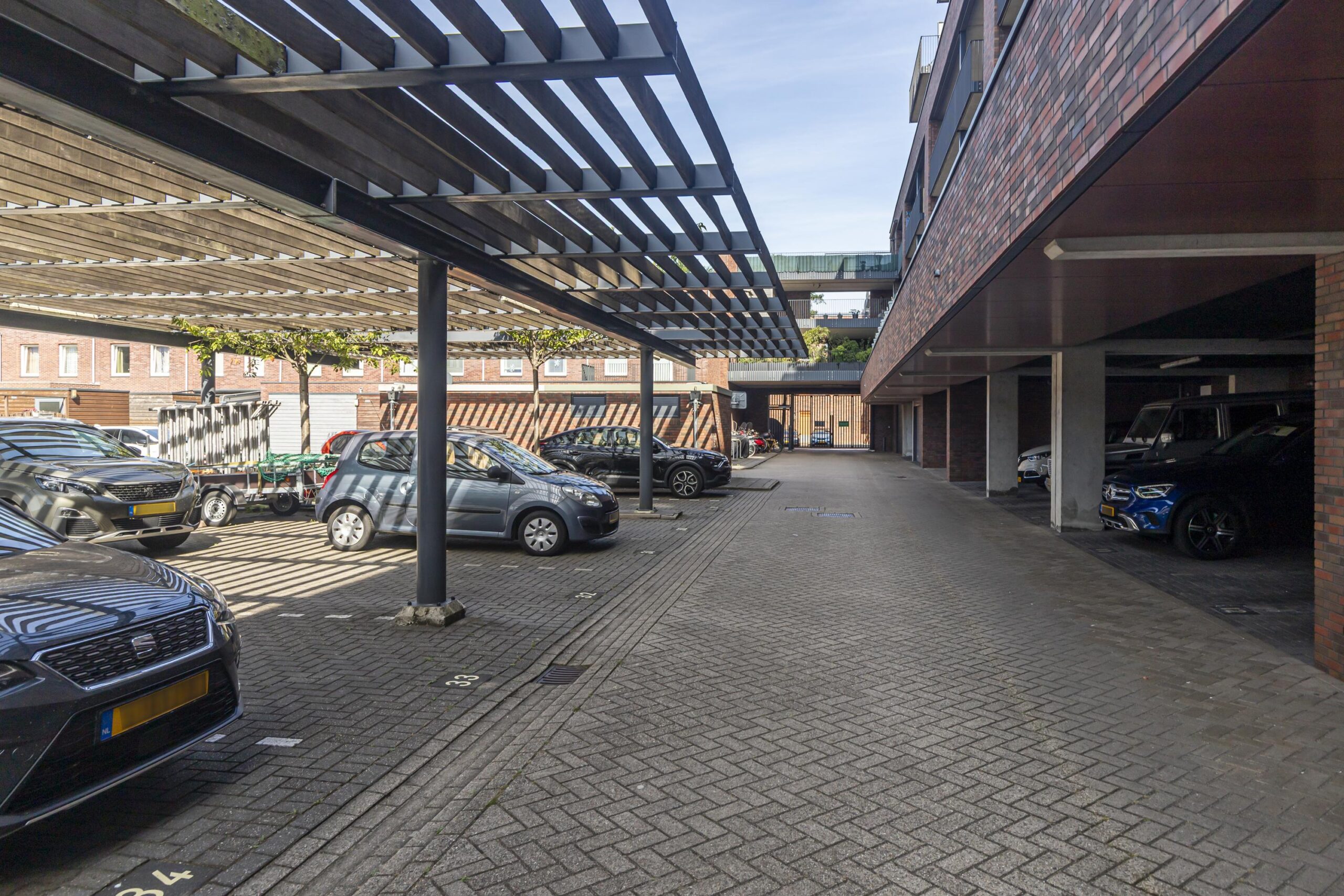 Bij het appartement hoort een eigen parkeerplaats op het afgesloten terrein met een elektrische poort. Daarnaast is er een gezamenlijke fietsenberging.
