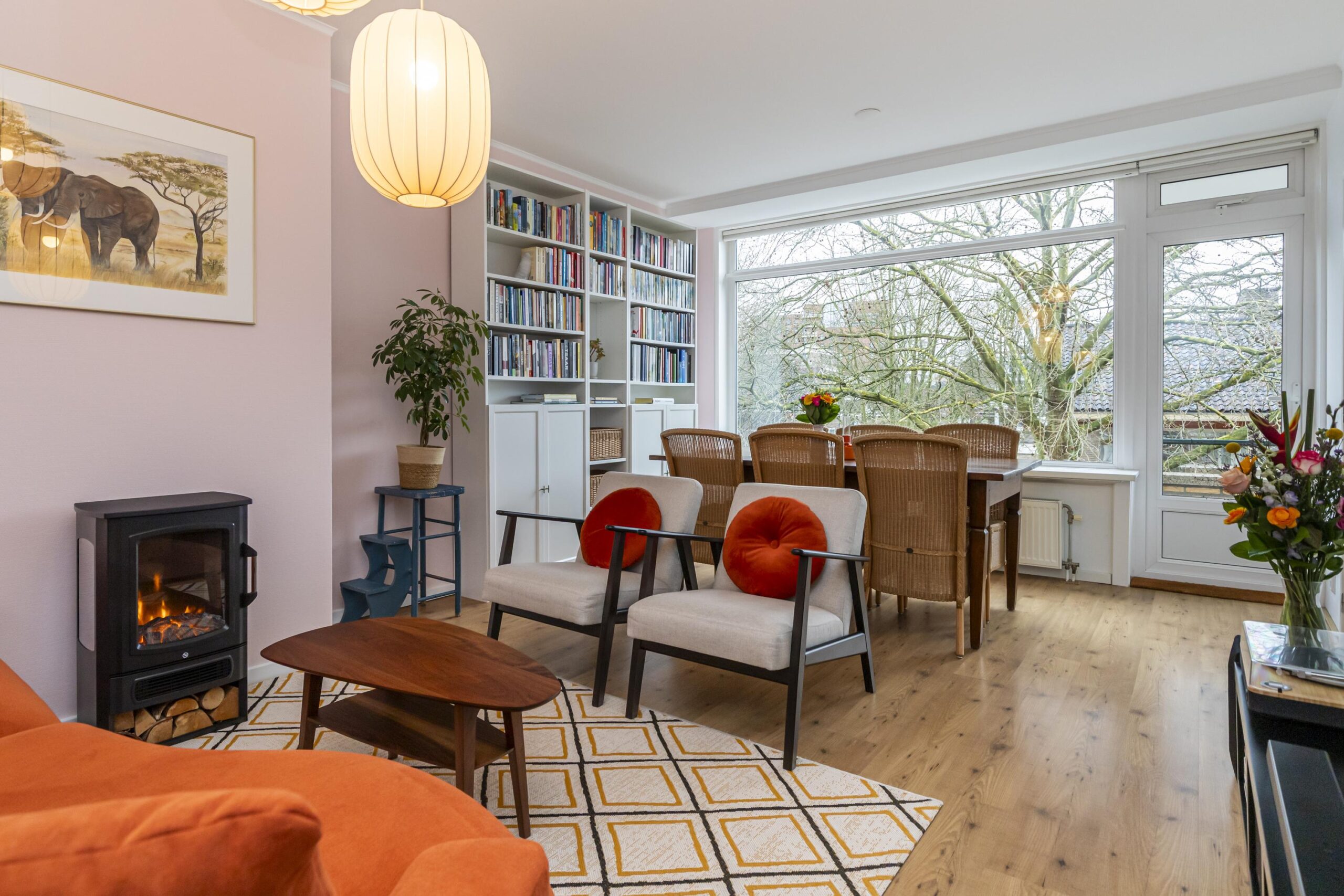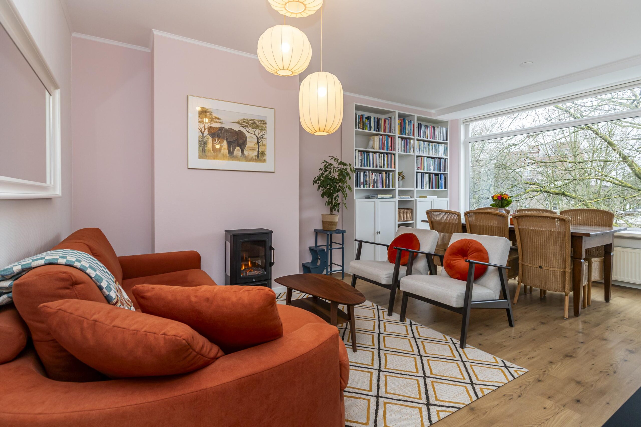 -The property has wooden window frames with Hr++glazing (2025) at the back