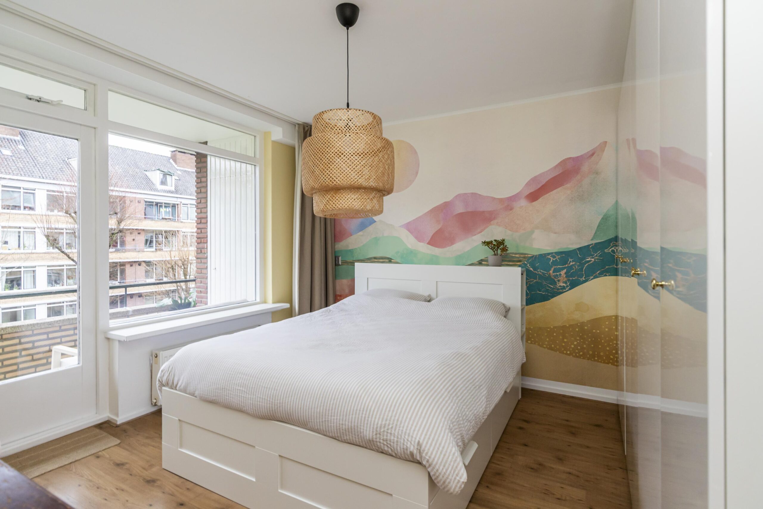 At the back of the house, you will find the master bedroom with access to the balcony at the back of the house, just like from the kitchen. The balcony is where the central heating boiler (2019) is located in the balcony cupboard.